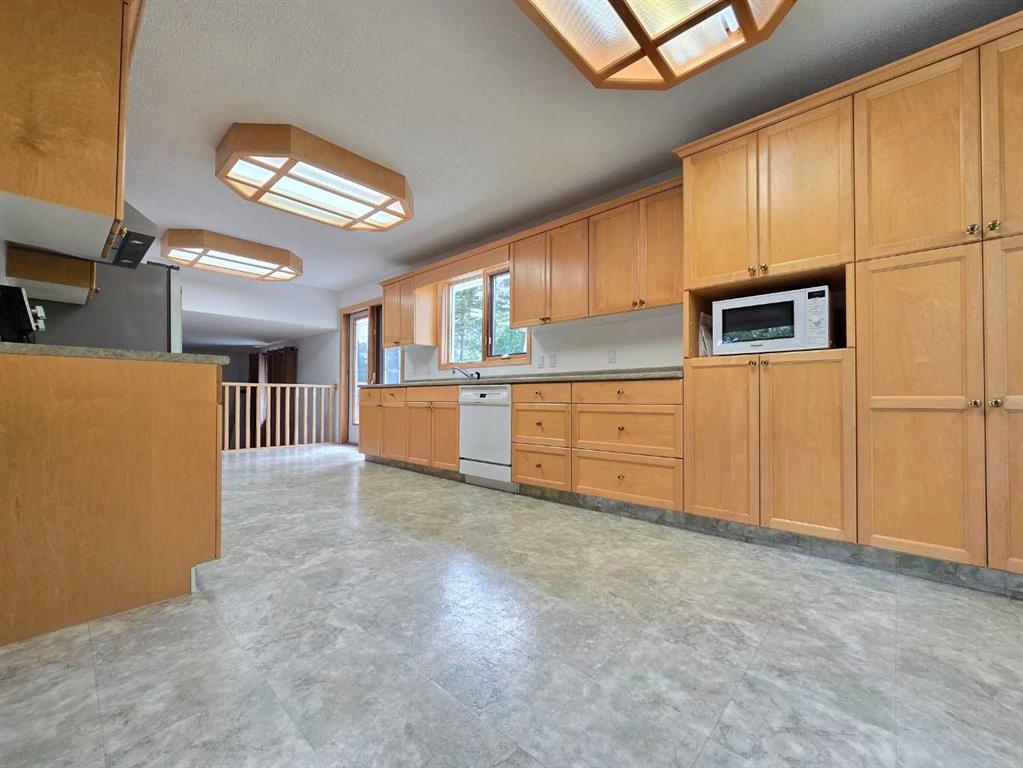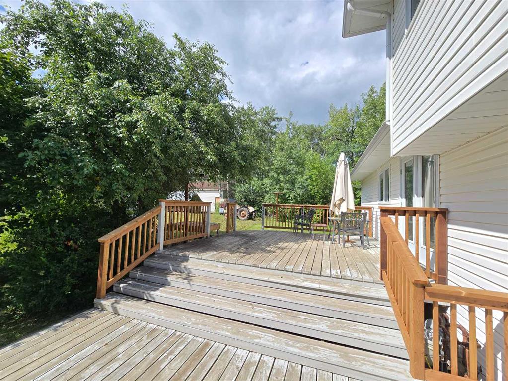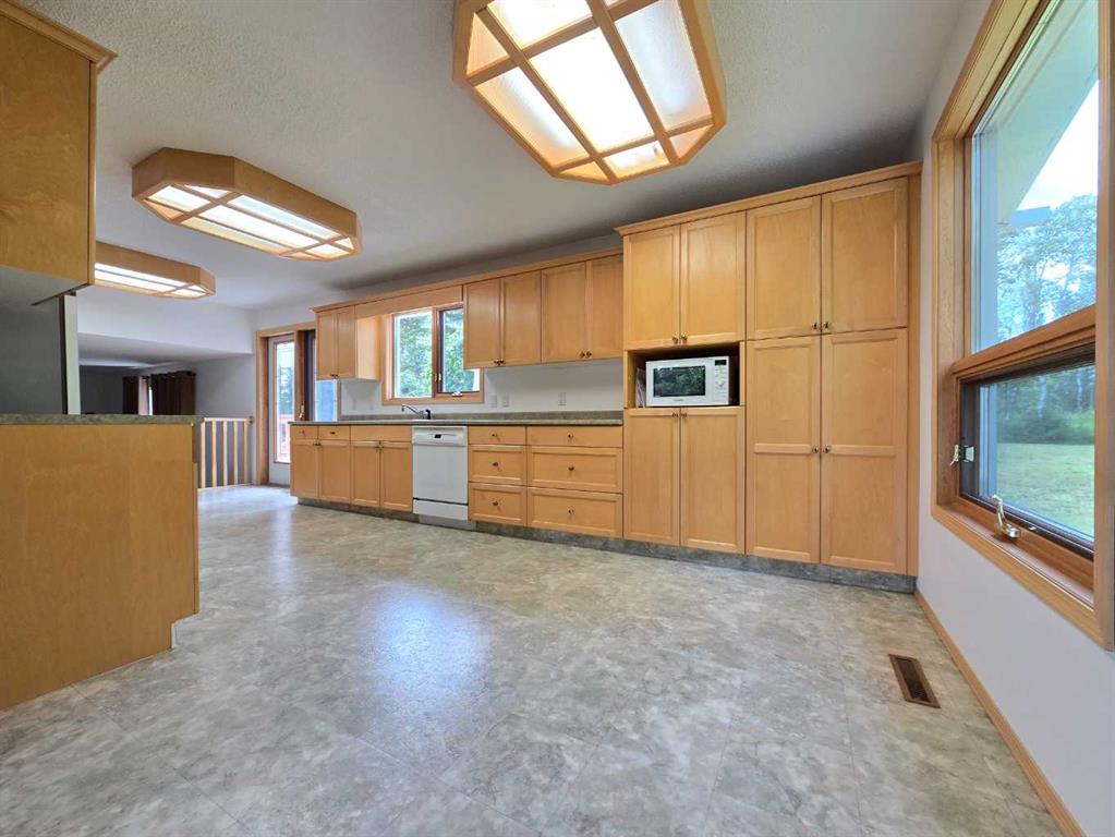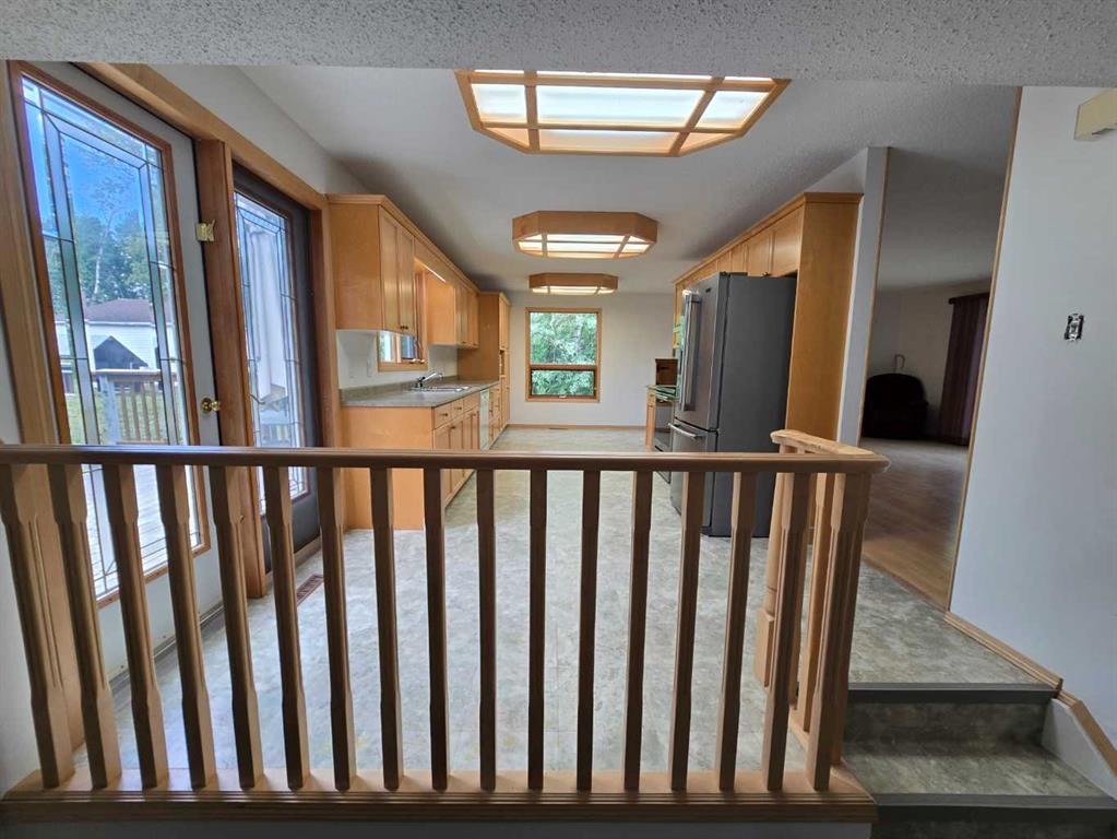 A Rare In-Town Oasis with Space, Privacy, and Endless Possibilities! Discover a truly unique property that blends the comfort of a well-kept family home with the rare bonus of 1.38 treed and private acres — all within town limits and connected to municipal services. The 1,610 sq. ft. home offers 4 bedrooms and 1.5 bathrooms, with main living areas that are light, bright, and welcoming. The expansive kitchen is a cook’s dream, offering abundant cupboards, generous counter space, and room to gather. The spacious living room features a cozy wood-burning fireplace — perfect for chilly evenings. Step outside and enjoy the park-like setting. There’s a large garden for growing your own produce, a private outdoor firepit area for relaxing or entertaining, and plenty of mature trees for privacy. What truly sets this property apart are the three separate garages: Garage 1: 32' x 28' with high ceilings and oversized doors — ideal for RVs, large equipment, or workshop space. Garage 2: 24' x 24', heated, with a concrete floor — perfect for year-round use. Garage 3: 26' x 30', heated, adjacent to the house, with a bonus second level ideal for a craft room, hobby space, or storage. There is almost 800 sq ft of space up here. Whether you’re a hobbyist, car enthusiast, or simply someone who needs extra space, this property offers unmatched flexibility. With its private acreage feel, abundant storage, and prime in-town location, this is a once-in-a-lifetime opportunity you won’t want to miss.
