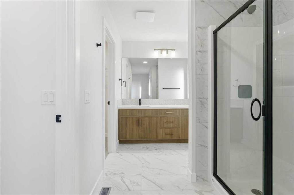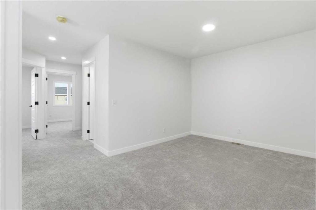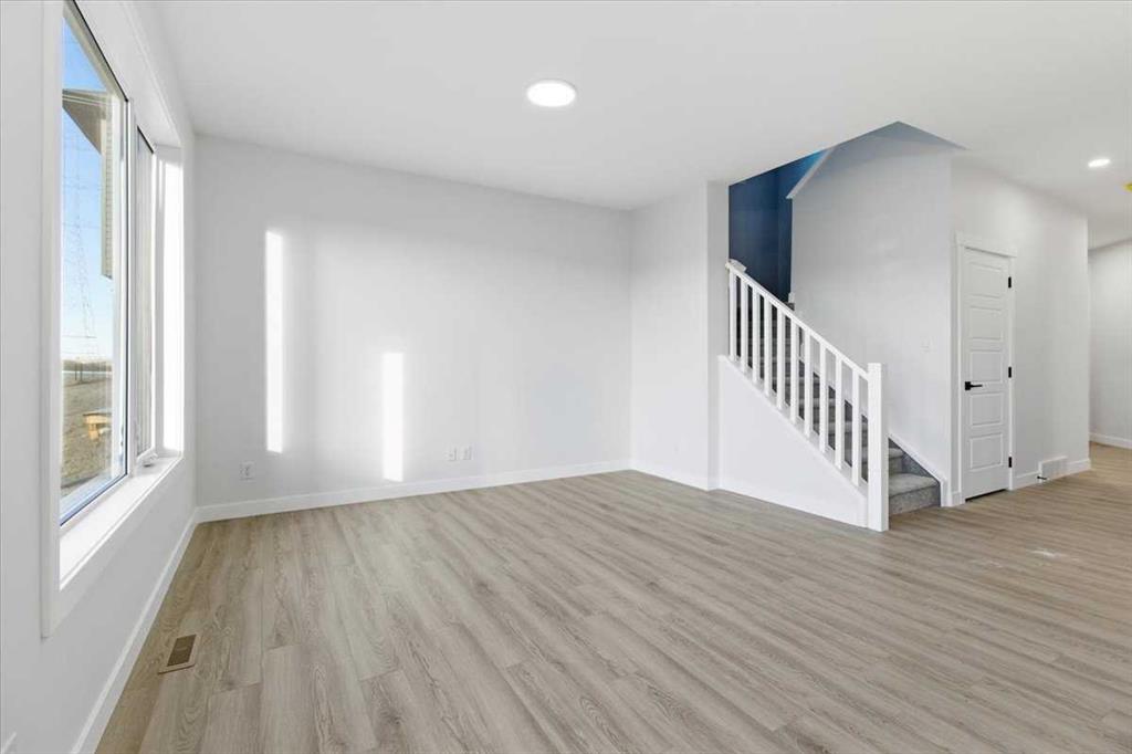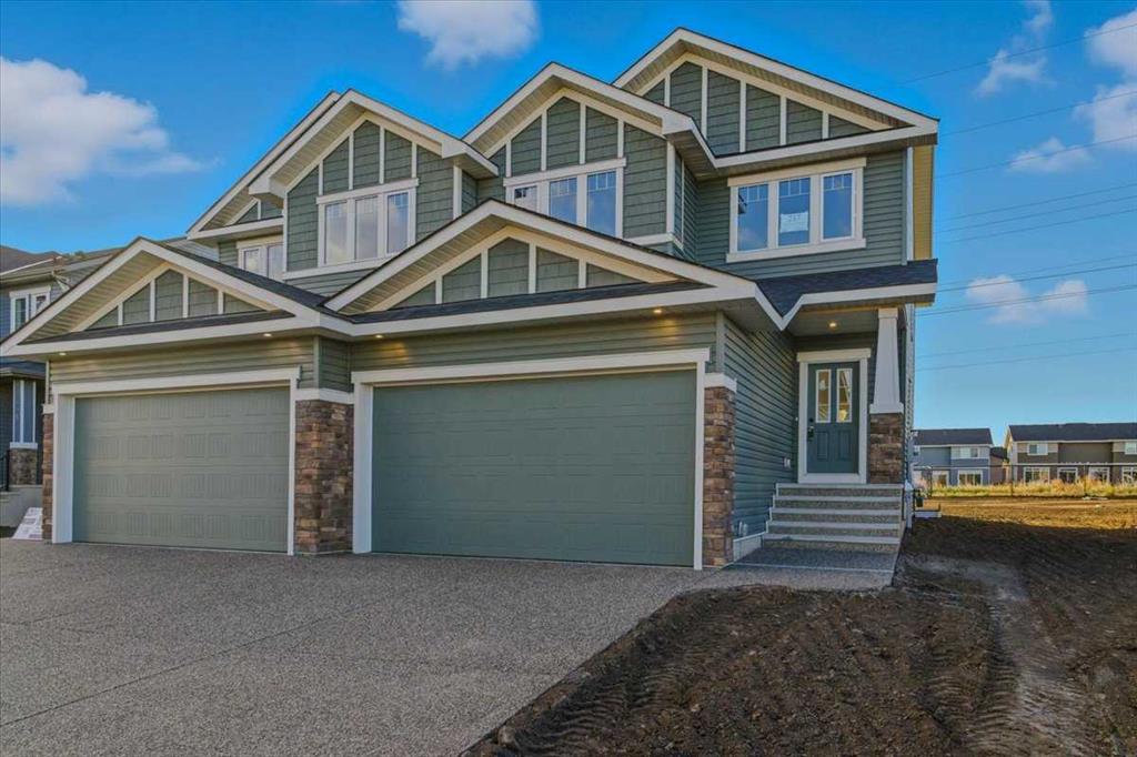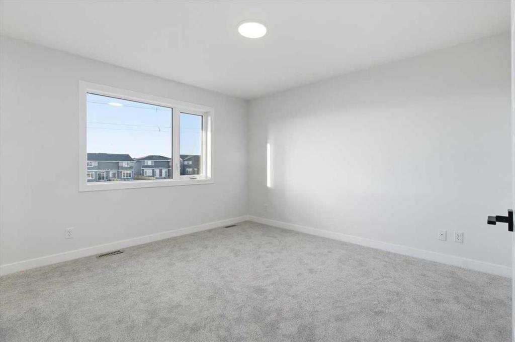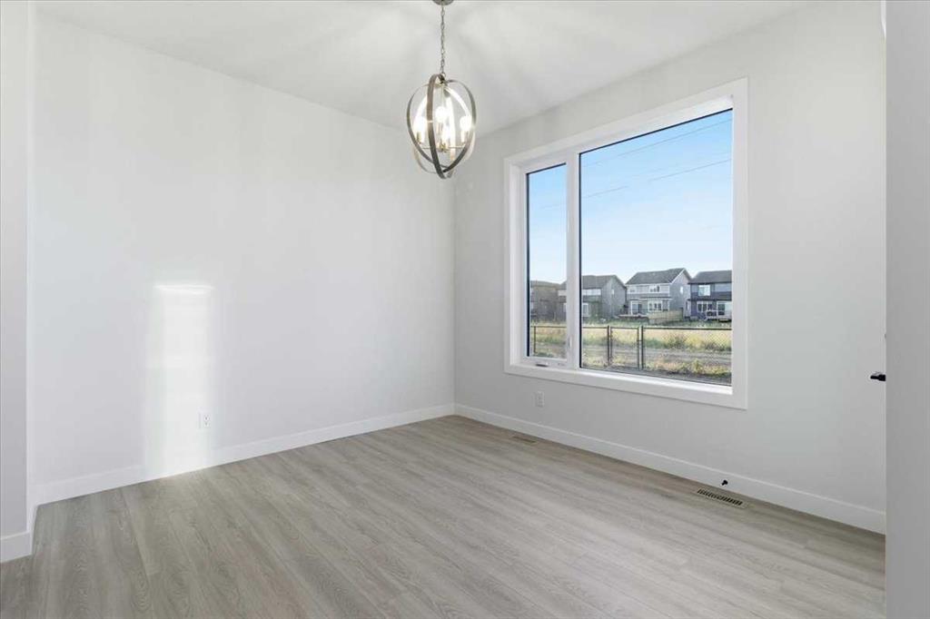 Welcome to this three bedroom semi-detached home in Dawson’s Landing, Chestermere. Featuring an open floor plan with 9 ft ceilings and Luxury Vinyl Plank flooring throughout the main level, this home features a trendy kitchen with quartz countertops, upgraded gas range and walk through pantry. The main floor includes a flex room and SEPARATE SIDE ENTRANCE for many future basement development options. Upstairs, there is a central bonus room between the primary suite and two additional bedrooms, all with walk in closets. The primary bedroom offers an ensuite with a large shower and double vanity. Nestled in a community surrounded by 30 acres of future protected wetlands, enjoy walking trails, scenic pathways, a boardwalk and viewing areas. This home is within WALKING DISTANCE TO EAST LAKE ELEMENTARY SCHOOL, and less than 30 minutes to Calgary Airport. Embrace a blend of living in the relaxing natural setting in Dawson's Landing and the PEACE OF MIND that comes with owning a quality built home by NuVista Homes.