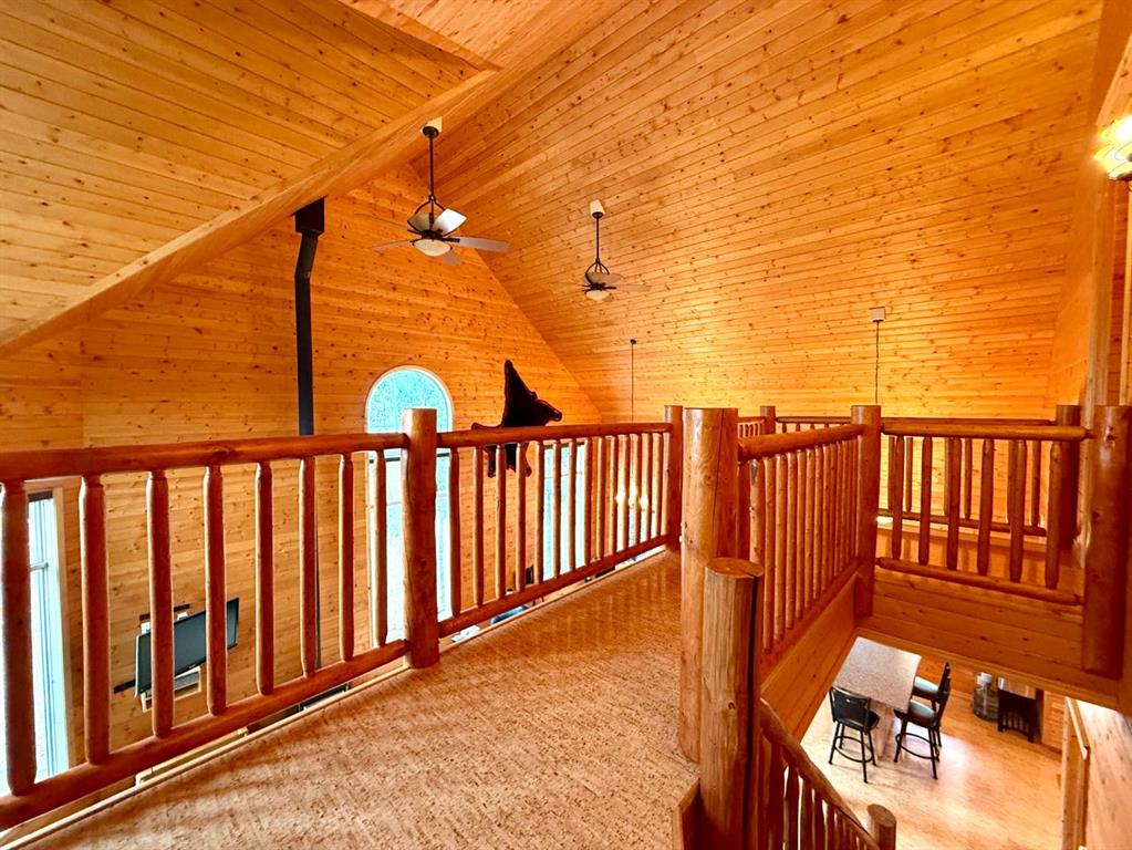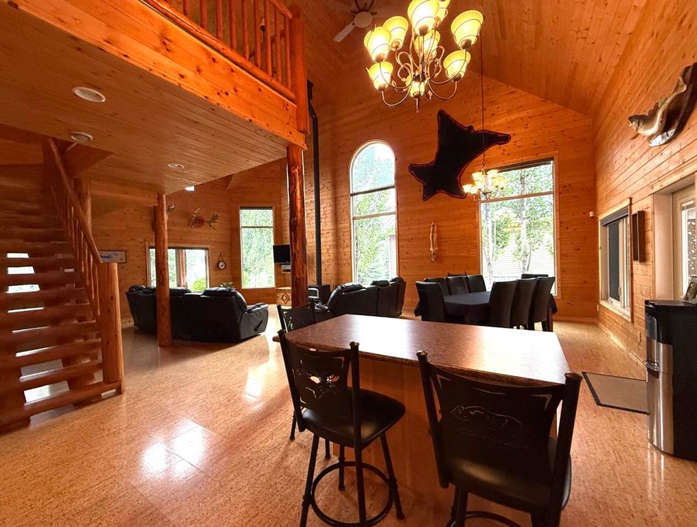 Hello from 115 Deerland Road! This stunning 2 storey home on Lac Des is a whole lot of executive lake living. Whether you're dreaming of hot summer days at the lake or cozy winter scenes, this four season Park Place home will be top of mind. Sitting on 2 lots (115-116) , the next owner will appreciate the space and parking available for vehicles and RVs. Natural wood throughout, including the custom pine kitchen and oversize pantry, cork flooring throughout. All appliances included with this sale, as is all the gorgeous furnishings. All five bedrooms come with wood frame beds and storage. A bathroom on each level. Four of the bedrooms are on the 2nd floor. This is a great feature for families with children on the same level as you! There's a massive great room with tall ceilings, a wood stove, formal dining taking you on to the back deck for outdoor eating or entertainment. So much to offer that it's hard to encompass the extras without seeing this home. On demand hot water, Water softener, rust removal system all for the property's own well. Heating sources are a forced air gas furnace, in-floor heat and the wood stove. The single tandem attached garage has in floor heat as well. Have a soak in the hot tub included with your purchase! For extra security and safety, the builder put in additional anchors into the foundation along with storm windows for extreme weather, should there be any. Central Vac and Central Air are more nice extras! Additional bonus… 2 slips in the dock system included!! Just a few steps away from the cabin! Turn key and ready for it's next family to make new memories and traditions!