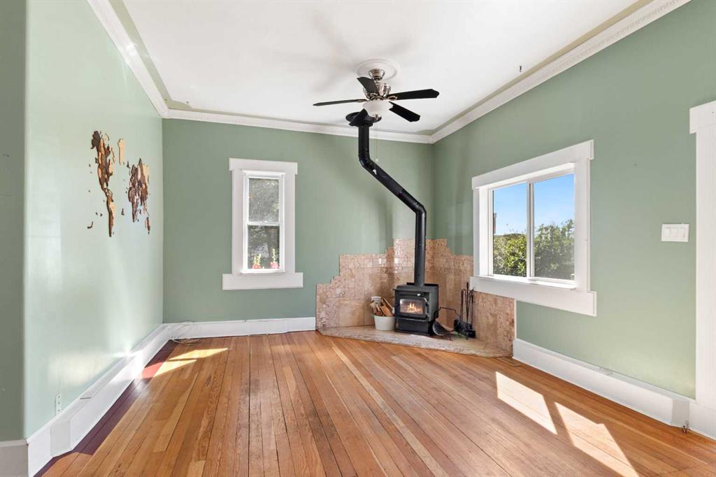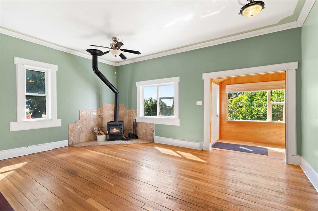 Full of charm and thoughtful updates, this extensively renovated home sits on a rare triple lot in the friendly community of Penhold. From the moment you step inside, you'll appreciate the soaring high ceilings, character-rich original hardwood floors, and the cozy warmth of the wood-burning stove with stylish tile firewall—features that combine to create a space both spacious and inviting. The home maintains its original character while benefiting from numerous modern upgrades. Ideal for green thumbs and outdoor enthusiasts, the property includes a huge garden plot, its own private irrigation well, mature raspberry bushes, and a variety of apple and other fruit trees. Additional features such as a bright sunroom, a practical greenhouse, and a 13'-10" x 19'-8" detached garage provide ample space for hobbies, relaxation, or extra storage. Some updates & renovations include: electrical wiring and an upgraded panel, newer insulation in both the walls and attic, updated Vinyl windows, and refresh paint throughout. A high-efficiency furnace and hot water tank ensure year-round comfort, while the convenience of main-floor laundry adds to the home’s functional appeal. The bathroom is impressively large, featuring an oversized soaker tub and a dual-head walk-in shower—perfect for unwinding in spa-like comfort. Just 10 minutes from Red Deer, this location offers a peaceful small-town feel with quick access to city amenities. Penhold itself boasts a wide range of conveniences, including a modern recreation center w/ gym, arena, library, campground, parks, scenic walking paths, a grocery store, pubs & restaurants, and a variety of local businesses. Whether you're looking to put down roots, enjoy more space, or invest in a home full of character and comfort, this unique Penhold property delivers it all.