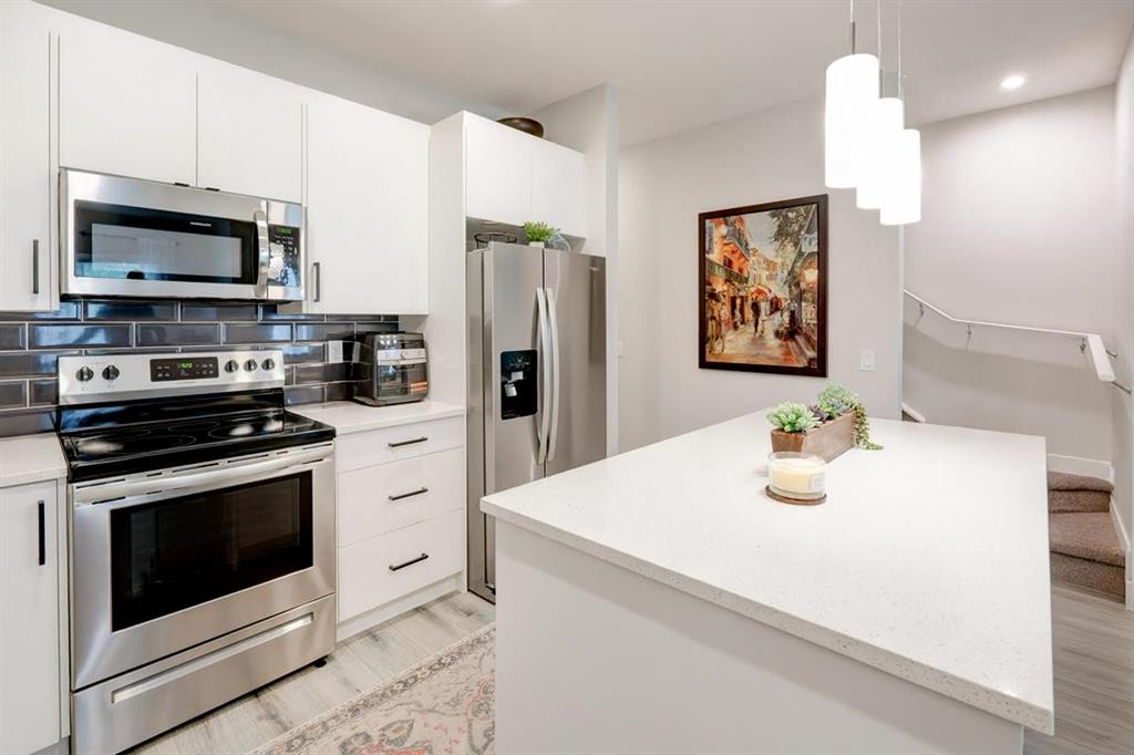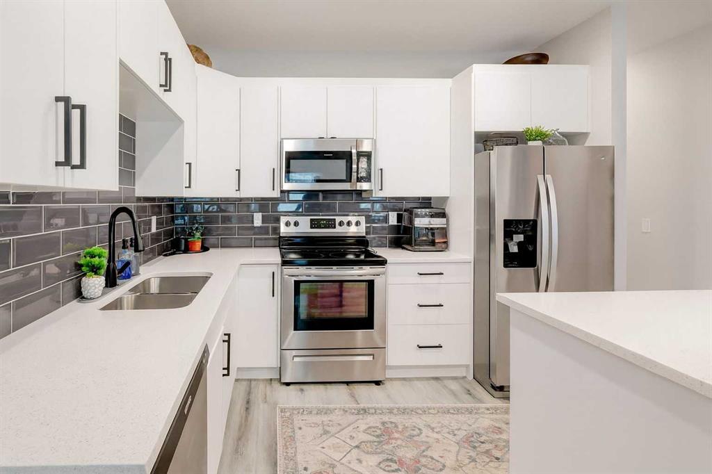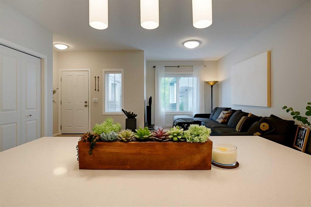 If you’ve been waiting for a townhouse that feels like home from the moment you step inside, this is it. Immaculate, upgraded, and styled to perfection, this 1,170 sq. ft. 2-bedroom, 2.5-bath home stands out from the rest. The main floor’s open concept layout is bright and airy, anchored by a designer kitchen with quartz counters, a large island, and quality finishes. Even the flooring and tile have been upgraded, adding style and durability throughout. A welcoming front porch, custom feature walls, and a rear mud room leading to the attached garage add both function and flair. Upstairs, two spacious bedrooms each have direct access to a full bathroom. The primary suite boasts a walk-through closet and private ensuite with an oversized stand-up shower. Convenient upper laundry and thoughtful storage make everyday life easier. The basement is ready for your future plans, while low condo fees and remaining builder’s warranty give you peace of mind. Outside, you’re steps to walking paths, parks, playgrounds, and the canal, with schools, shopping, and dining nearby. Every detail is done, all that’s left is for you to move in and enjoy.