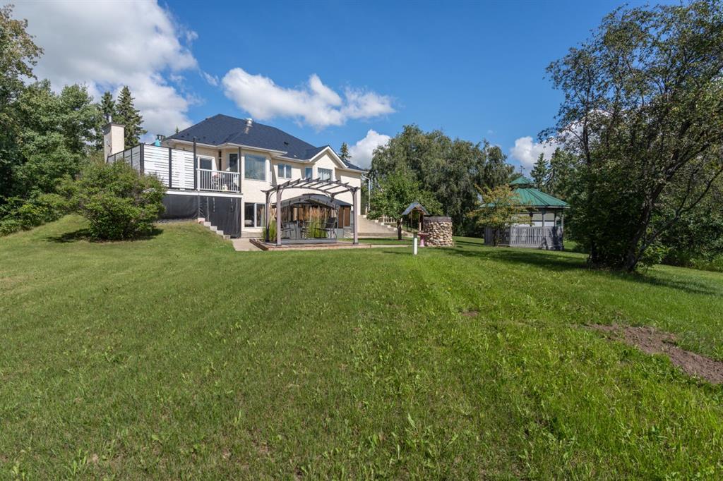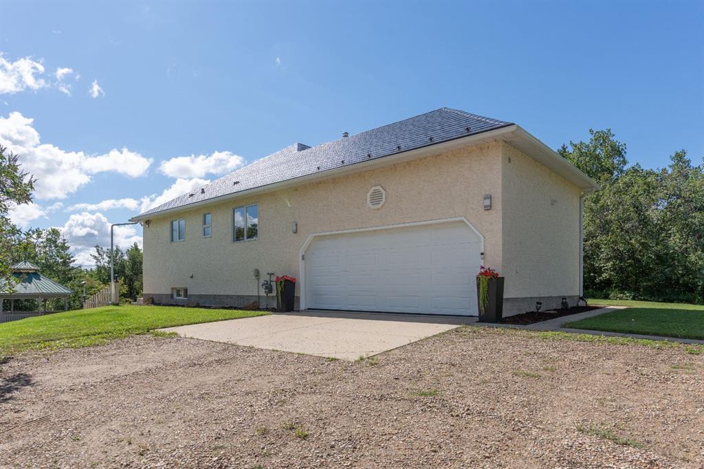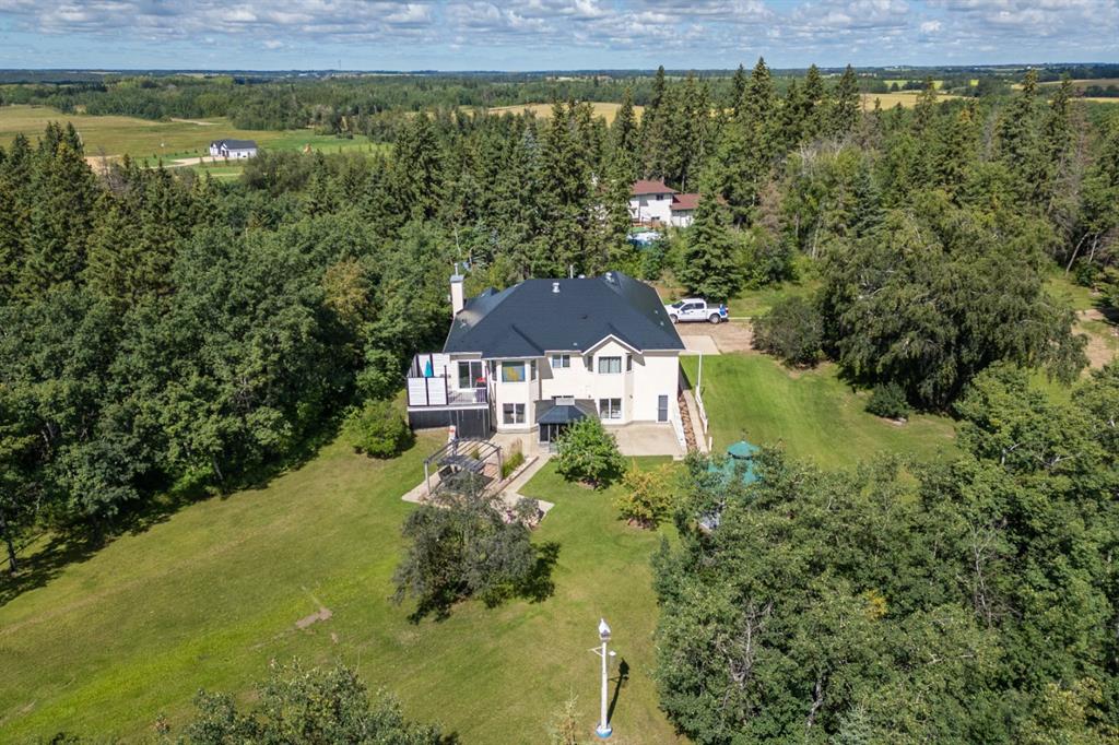 Picturesque Acreage - All on Pavement - Just outside of Millet and very commutable to the Greater Edmonton Area. Sitting high upon the hill on just over 3 acres sits a fully finished 1680 sqft Walkout Bungalow with attached garage, 40x26 detached heated garage and 30x32 Pole Shed with concrete floors. Wonderfully kept and cared for home with lots of perks - stucco exterior, new eaves, metal shingles, newer refinished deck and much more. Step inside and take in the traditional layout with beautiful laminate floorings in the front living room that sees a gas fireplace with stone surround, bright bay window and vaulted ceilings that carry over into a large dining area - a perfect space for that table you've always wanted. Catch a glimpse of the fully updated kitchen with quality white cabinetry (lots of lower pullouts for excellent storage), tile backsplash, stainless appliances, under cabinet lighting, granite sink and a handy upright pantry. From here you'll enjoy the option of a breakfast nook and down a few steps to a flex room that could act for additional dining, storage or maybe a home office. Lovely Primary Bedroom is private with beautiful views of the yard, double closet and 2pc ensuite. Fully updated 3pc main bathroom with large tile shower, a 2nd bedroom and a previous 3rd bedroom converted to a full on Laundry Room with storage - excellent use for main floor living but if you need a 3rd bedroom on this level there is a laundry hook up in the basement as well. Walkout Basement comes fully complete and updated with tons of space - 3 family rooms, a 3rd bedroom, 4pc bath, an office, a cozy nook and a kitchenette area. Heading outside you'll appreciate the entertaining space - a refinished raised deck with privacy screen, a 14'6x45 concrete pad with negotiable hot tub/gazebo, a 12x12 wood patio with raised fire feature and a cute little permanent Gazebo with power. Attached Garage is a super single and provides extra storage in the attic. Detached 40x26 Heated Garage is a dream with 2 separate doors, vaulted ceiling and skylights, 50 amp power and it even has Water! 30x32 Pole Shed is a just a shell but comes with full concrete floors! Balance of the yard is treed and sloping - partially fenced in chain link. Updated home on a manageable amount of acres with great buildings - you'll love it
