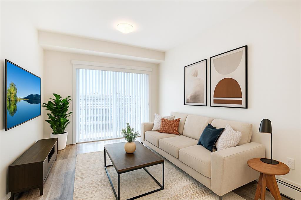 Click brochure link for more details** Welcome to this nearly new top-floor condominium with no neighbours above! It features a west facing orientation that bathes the home in natural light and treats you to spectacular sunsets. Perfect for those who value the ease of condo living with premium finishes and a quiet, serene setting, this home delivers both comfort and style in equal measure. Step inside to discover a bright and thoughtfully designed 2 bedroom, 2 bathroom layout. The open concept living and dining area flows effortlessly across luxury vinyl plank flooring, complemented by plush carpet in the bedrooms and low-maintenance lino tiles in the bathrooms. Knock-down ceilings and large windows enhance the airy, modern feel. The chef inspired kitchen impresses with full height cabinetry, quartz countertops, stainless steel appliances, a pantry, and soft close drawers blending functionality with high end style. The primary suite is a true retreat, featuring a walk-through closet leading directly to a spa worthy 5 piece ensuite with dual sinks, a quartz vanity, and a glass walk-in shower. The second bedroom is perfect as a guest room or home office enhanced by a transom window that brings in extra light. A second full bathroom is conveniently located nearby, ideal for visitors or shared living. Your private west facing balcony includes a natural gas hookup, making summer barbecues or relaxing evening sunsets a part of daily life. For great convenience, enjoy in-suite laundry with a stacked washer/dryer, secure underground parking, and a private storage locker. The professionally managed condo board ensures a maintenance free lifestyle with snow removal and exterior upkeep handled for you. Beyond your door, the condo complex sits beside a scenic nature reserve with ponds, green space, and walking paths offering a peaceful setting just minutes from modern conveniences. You’ll be within walking distance of a future school site, close to Sage Hill Crossing, Evanston Towne Centre, and have quick access to Stoney Trail for easy commuting anywhere in the city. This top floor gem in Sage Hill Park blends modern comfort, thoughtful design, and unbeatable location! Don’t miss the opportunity to make this bright, stylish condo yours.