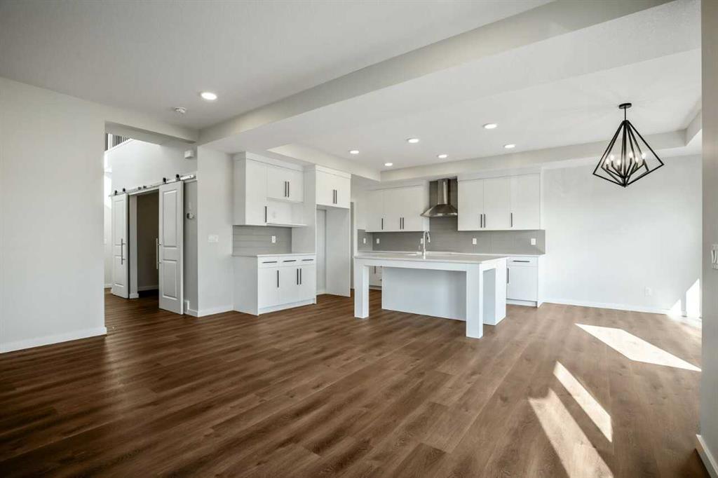 This Remi Model by Bedrock homes is situated on a beautiful corner lot with Mountain views! This model features a welcoming front foyer with open to above, a central flex room on the main floor, and a walk-through mudroom and pantry leading straight to the designer kitchen. The kitchen features coffered ceilings for an elegant feeling with a large island that opens up to the dining area and great room, great for a gathering space! The open to above staircase will lead you upstairs to find two secondary bedrooms with a full bathroom at the front of the home, a central bonus room, laundry, and a large primary suite. Last but not least primary bedroom features a spacious four-piece ensuite with a water closet, dual vanities, and a soaker tub, and conveniently leads straight to the large walk-in closet. Photos are representative.