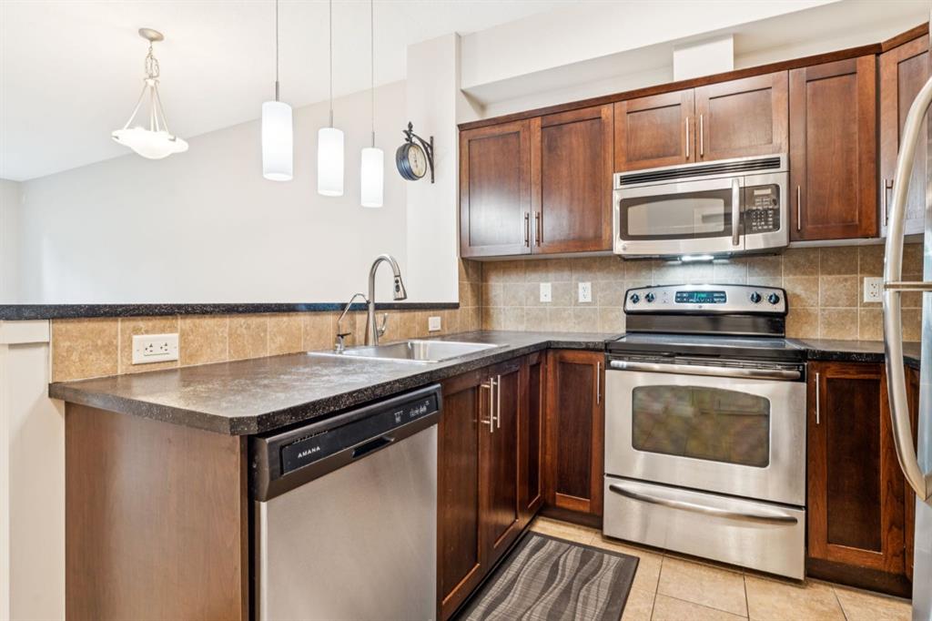 Welcome to this beautifully maintained two-bedroom residence in the highly desirable community of Alora at Sunset Ridge. Offering a refined blend of style, comfort, and practicality, this home is ideal for first-time buyers, downsizers, or investors seeking a turnkey property in an exceptional location. Freshly painted and featuring newer flooring throughout, the open-concept layout is bright and inviting, complemented by a dedicated office nook that’s perfect for remote work or study. The well-appointed kitchen flows seamlessly into the living area, while the covered patio with a gas barbecue hookup invites year-round outdoor enjoyment and entertaining. This thoughtfully designed home also offers in-suite storage, along with a secure storage locker in the titled underground heated parkade and an additional titled outdoor parking stall. Residents can enjoy exclusive access to a fully equipped fitness centre, a welcoming guest suite, and ample visitor parking. Set within a vibrant, amenity-rich neighbourhood, this property offers scenic views, nearby walking paths, and convenient access to shopping, dining, and commuter routes. With its tasteful finishes and unbeatable location, this Sunset Ridge gem is ready to welcome its next proud owner. Book your showing today!