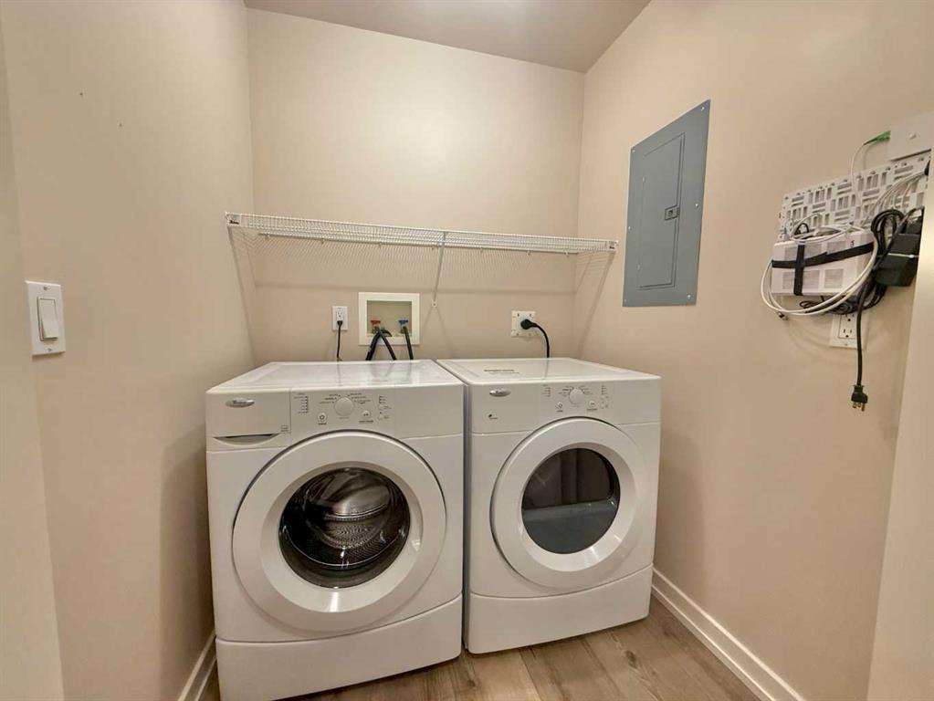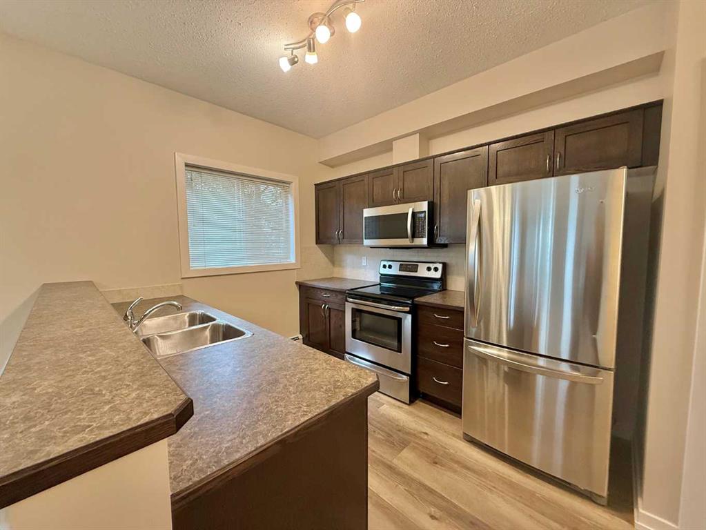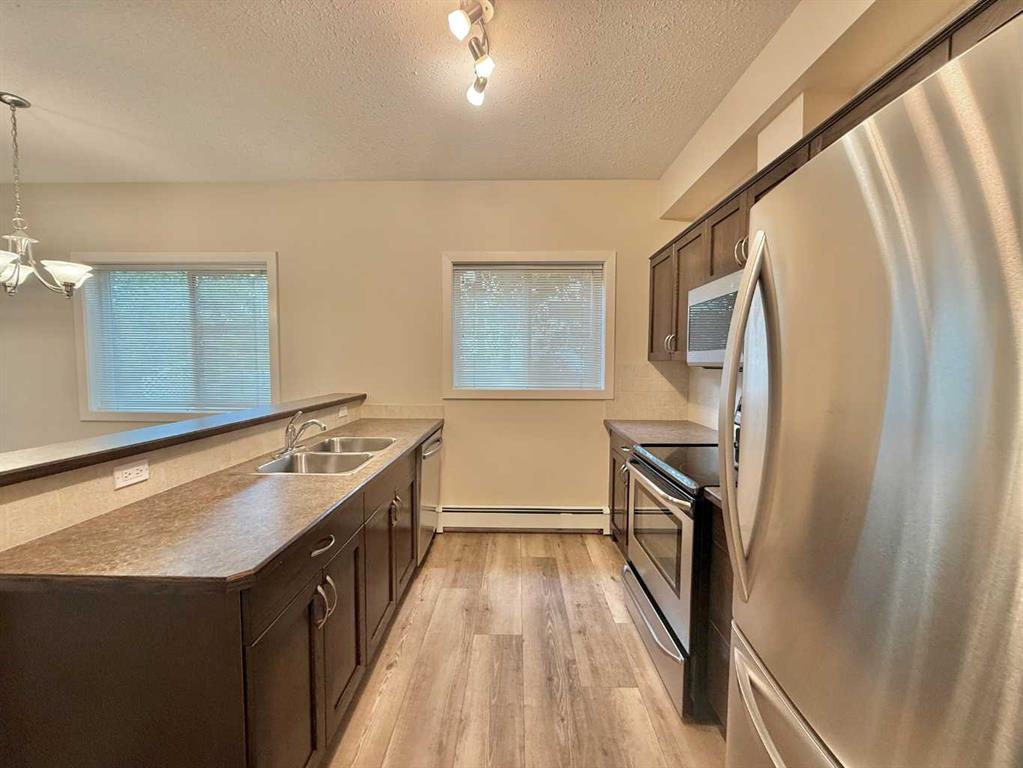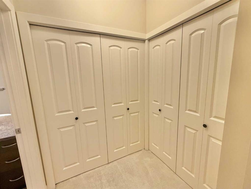 Perfection is Carlyle Estates in Hintons its the finest apartment condominium. This building features tall and wide pressurized, air conditioned hallways with motion detection lighting. Elevator access to all floors including the secure heated underground parkade where your titled stall will be located. Another powered titled parking stall is located outside in the parking lot. Plus a titled storage unit. This is a large second floor corner unit, west facing away from busy Mountain street traffic. Garnering a fair amount of sunlight during the day while offering privacy. This unit features dark cabinets and brand new acoustic luxury vinyl plank flooring and nearly new all stainless steel appliances! Carlyle Estates is maintained to the highest degree. The condo association is active and well managed. Once inside this building and unit you will find that it is in nearly perfect condition. This is what makes this unit perfect for turn key, worry free living in the foothills of the rocky mountains.