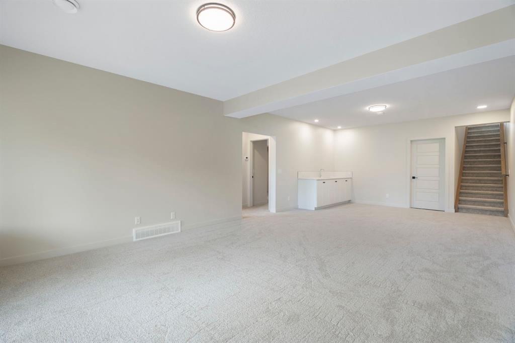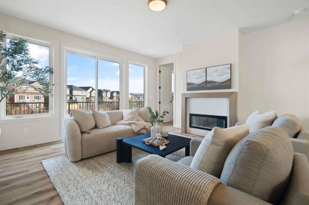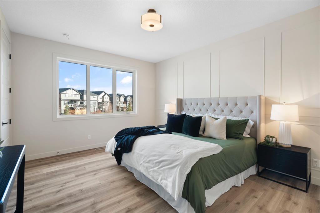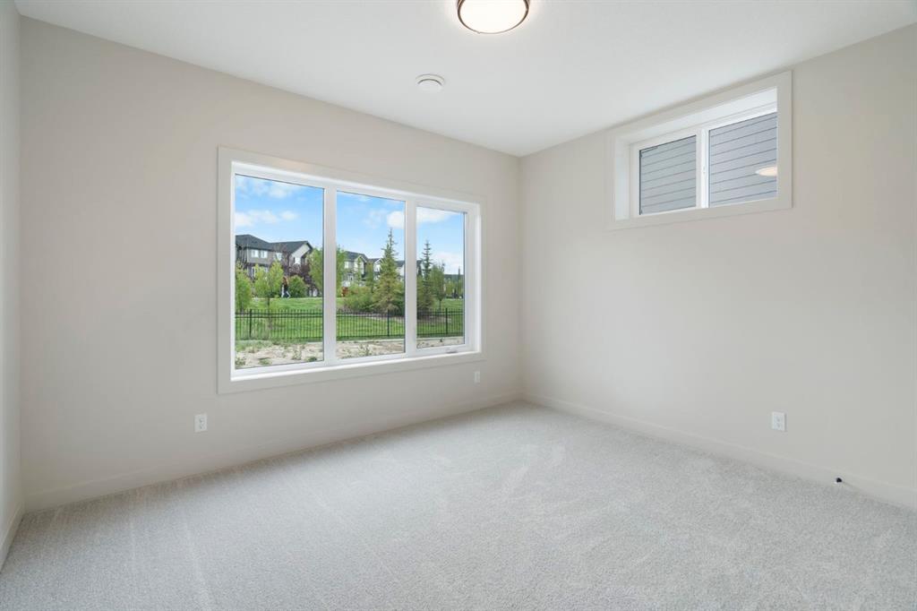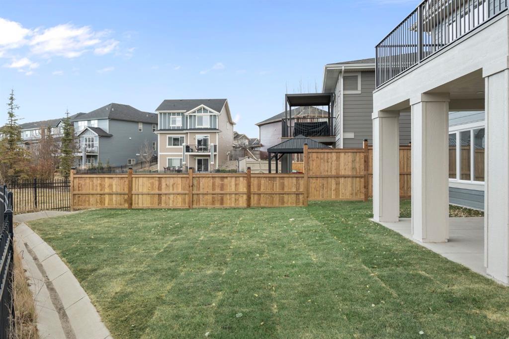Step into the perfect blend of location, luxury, and lifestyle in this fully developed walkout bungalow in Sunset Ridge, one of Cochrane’s most sought-after family-friendly communities. Nestled on a pie-shaped lot backing a green-space pathway and playground, this home is ready for you to move in. Award-winning Aspen Creek Designer Homes presents the Ethan model, showcasing quality craftsmanship and thoughtful design at every turn. The open-concept main floor is anchored by a stunning kitchen featuring quartz countertops, a large island, custom cabinetry, and stainless steel appliances. The adjoining living room, complete with a cozy fireplace, opens onto a 17x10 deck, ideal for your morning coffee! The primary suite is a true retreat. Detailed with elegant wainscotting, it features a stand-alone soaking tub, spacious walk-in shower, dual vanities, and a custom walk-in closet with built-in shelving that conveniently connects to the walk-through laundry room. Neutral tones throughout create a timeless, sophisticated atmosphere. The walkout lower level offers room for everyone with a family/games area, a stylish wet bar, two additional bedrooms with a 4-piece bath in between, with plenty of storage and utility space. Outside is your east-facing backyard, perfect for soaking in the morning sun or enjoying the evening air. The yard has been completely sodded and ready for your personalized touches. Sunset Ridge is known for its family-first amenities, including RancheView School (K-8) and St. Timothy’s High School, multiple playgrounds, and an extensive network of walking paths that make weekend strolls and bike rides a breeze. With downtown Cochrane and the Bow River just minutes away, you can have both a peaceful neighbourhood lifestyle and easy access to everything the town offers. Book your showing today!