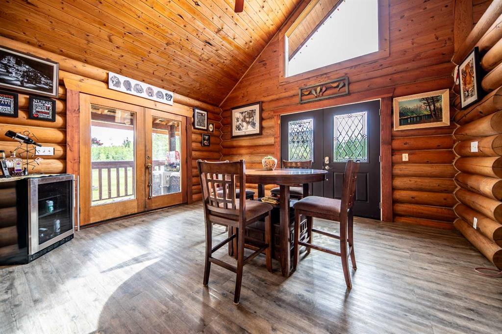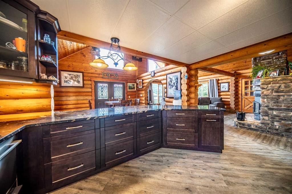 Imagine waking up each morning surrounded by 111+ acres of pristine natural beauty, with towering trees, and endless skies—yet still within easy reach of city convenience. Perfectly positioned between Grande Prairie and Grande Cache, this stunning log chalet home is your gateway to a life that balances serenity with opportunity. Just 26 minutes from Grande Prairie and 37 minutes to the tranquil Musreau Lake, this 5-bedroom, 3.5-bathroom retreat is designed for those who want more from life—more space, more peace, and more time at home. Step inside to a warm, inviting interior featuring a fully renovated kitchen with high-end stainless steel appl's, an 6-burner gas stove, two-drawer dishwasher, and expansive granite countertops. Whether you’re preparing a quiet dinner or hosting family and friends, this kitchen is ready for it all. Enjoy cozy winters with heated floors and a new wood-burning fireplace. Upstairs, a 2-storey loft offers private bedrooms and a full bath, while a finished basement includes a wet bar, games room, and additional bedroom—plenty of space to relax or entertain. Outside, unwind on your south-facing deck, complete with gazebo and hot tub, or take advantage of the 35x40 heated shop built in 2020 with radiant heat, concrete floors, drains and two 10ft overhead doors. For the entrepreneurial spirit, this property offers a turnkey opportunity. A fully operational and well-established kennel business (18 years strong) is included, with everything in place—from grooming facilities to private dog and cat runs, client-ready office space, and a loyal customer base. Ideal for pet lovers ready to work from home while living in harmony with nature. Additional features include: 2 chicken coops, 16x20 greenhouse, wood shed, 24x35 woodworking building. Cleared 40-acres —ideal for pasture, RV/boat storage, or other commercial use. Highway access for visibility and convenience. Whether you're dreaming of a slower pace, space to grow a business, or just a more meaningful way of living, this rare property delivers. Nature, comfort, and potential—all in one place.