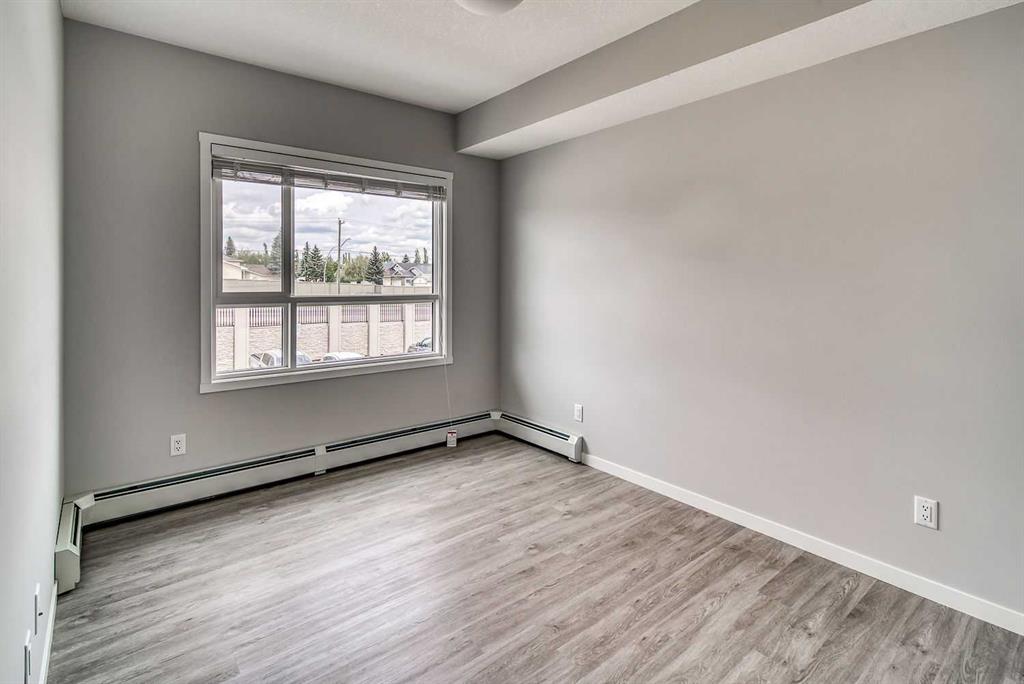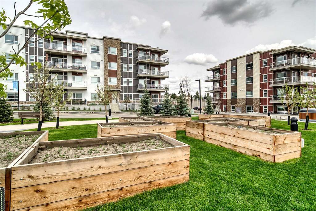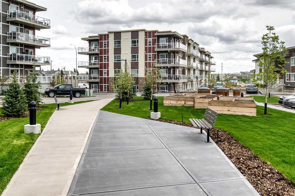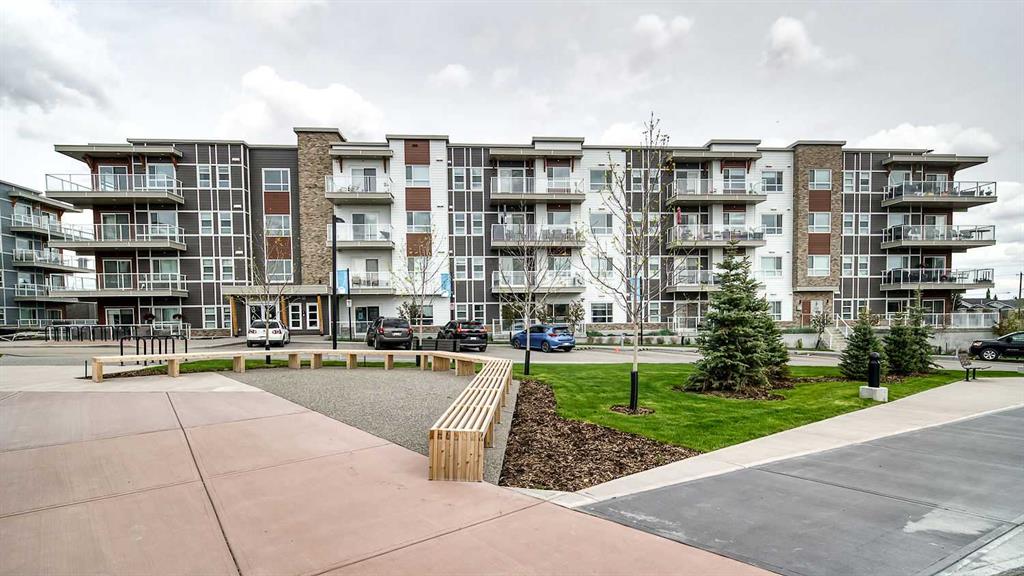 Step into this stylish 2-bedroom, 1-bath condo in the sought-after community of Harvest Hills, where a bright open-concept layout and thoughtful design maximize both comfort and function. The modern kitchen is a highlight, featuring stainless steel appliances, granite countertops, chic subway tile backsplash, and a kitchen island with breakfast bar - for both entertaining and casual dining. The spacious living area is filled with natural light and extends onto a large private balcony - perfect for relaxing or entertaining. The primary bedroom offers an inviting retreat with abundant windows, complemented by a versatile second bedroom that works equally well as a home office, guest room, or family space. Complete with in-suite laundry, a titled outdoor parking stall, and unbeatable proximity to transit, shopping, dining, and every convenience, this home delivers incredible value in a prime location.