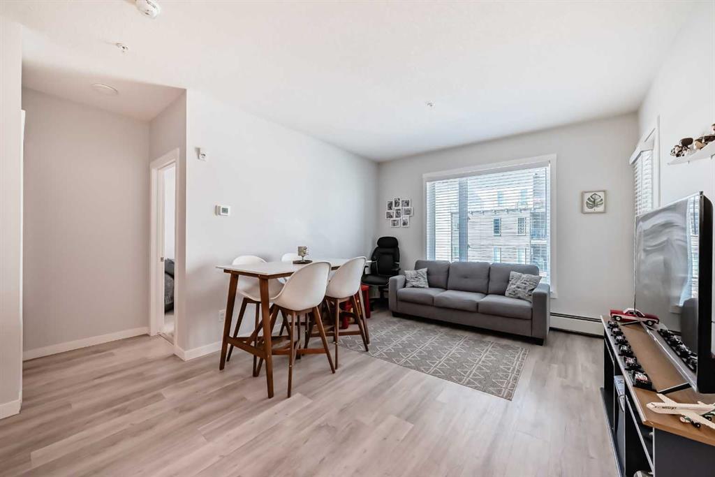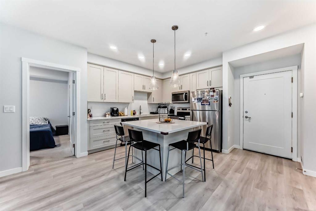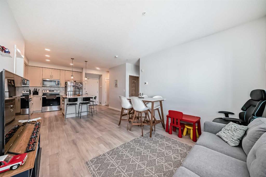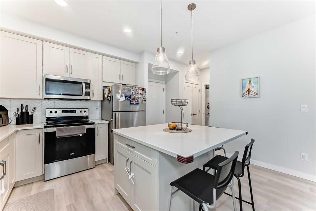 Sought after Shawnee Slopes has a listing just for you! This gorgeous 3rd floor, 2 beds, 2 bath 788 sq. ft. home, features 9' high ceilings and an open floor plan that encompasses the living room and gourmet kitchen. Here you will find a center island with storage, stainless steel appliances, granite countertops and chevron tiled backsplash. This 3rd floor unit has a light-coloured palette, luxury vinyl plank flooring throughout. The balcony has a gas hookup for your BBQing convenience. The primary bedroom offers a large walk-through closet and the second bedroom has a good-sized closet as well. The main bath boasts of a deep tub and tall counter and the laundry machines are full-sized. You'll have access to a titled underground parking stall and storage unit. The condo is close to Fish Creek Provincial Park, C-train station, playgrounds, St. Mary's University, and Shawnessy Shopping Centre. Macleod Trail is easily accessible. It's the perfect place to call home! This is a great first home purchase or a reliable investment property. Currently tenanted until March/26 but this is negotiable. Tenant rights apply.