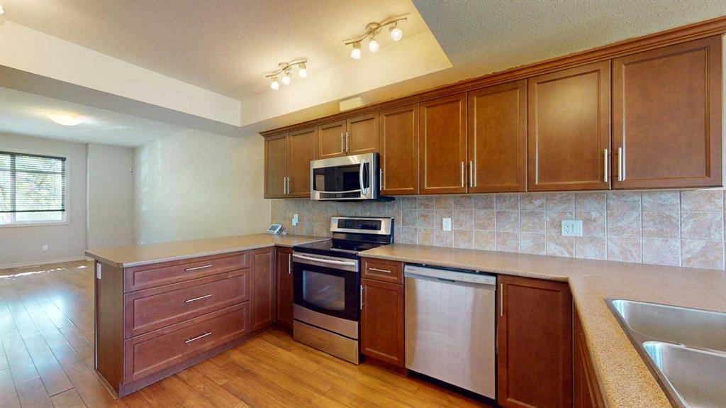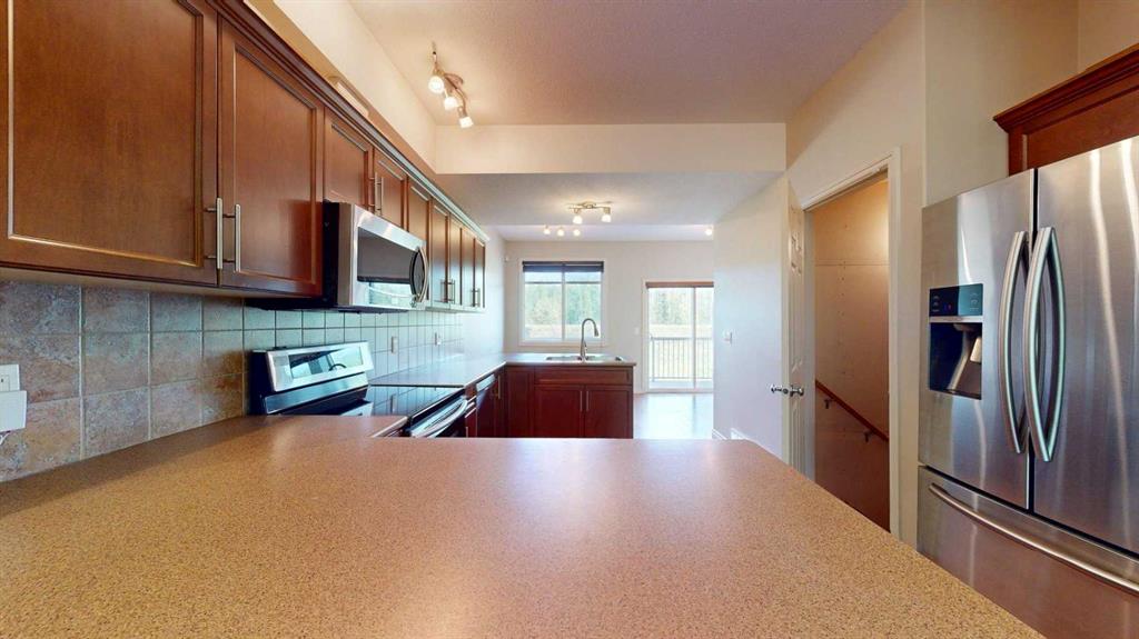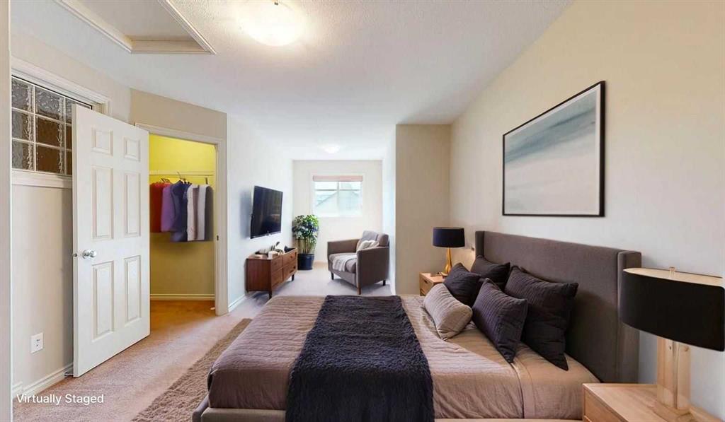 Welcome to this beautifully designed townhouse that combines style, functionality, and comfort. Featuring soaring ceilings and a bright, spacious layout, this home offers an inviting atmosphere from the moment you walk in. Throughout the home, oversized closets provide generous storage space, making organization a breeze. With three well-appointed bedrooms, including a private top-floor retreat complete with its own ensuite and breathtaking views, this property offers both privacy and luxury. A cozy reading nook or versatile den adds charm and flexibility to the floor plan. The main level features a well-equipped kitchen with a convenient pantry, a stylish powder room, and access to your private balcony—complete with a gas line for summer BBQs. For those who need extra space, the oversized single garage (14’5” x 40’2”) offers plenty of room for parking and additional storage.