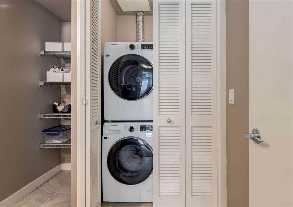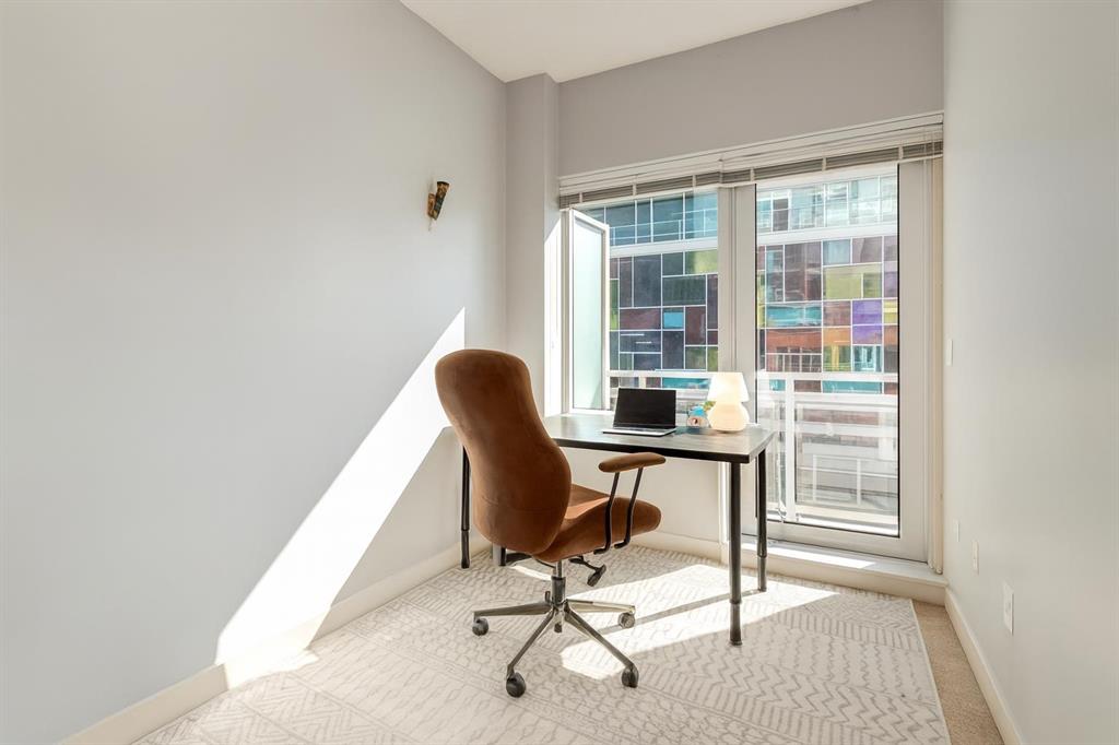 NEW PRICE (January 27) - this unit last sold for $367,700 in 2012, take advantage of this tremendous real estate opportunity! Stylish Urban Condo in Union Square where contemporary design meets an unbeatable location in this executive CONCRETE building. This exceptional one-bedroom plus den condo offers over 830 square feet of well-planned living space in a unique and functional layout. The open-concept layout showcases an inviting kitchen, dining area, and great room that flow seamlessly together, while the spacious primary bedroom with walk-in closet and versatile den—ideal as a home office or guest room—offer comfort and flexibility. Modern finishes include granite countertops, maple cabinetry, and stainless steel appliances. Additional conveniences include air conditioning, in-suite laundry (machines replaced in 2024), a balcony that expands your living space, a separate storage unit down the hall, and OVERSIZED underground TITLED parking steps from the elevator. The monthly condo fees include gas, water, insurance, window cleaning, heat, bike storage, and more. Located in the heart of Calgary’s Beltline, you’re just steps from First Street Market, cafes, restaurants, and shops, with Stampede Park, Haultain Park, and the Saddledome all within easy walking distance. Commuting is effortless—walk to downtown, gyms, hop on the LRT, or explore nearby pathways and green spaces. Floor plans and a 3D tour are readily available, providing a glimpse into this chic condo!