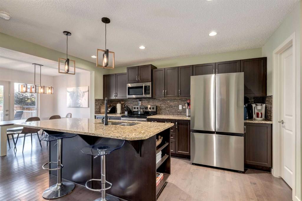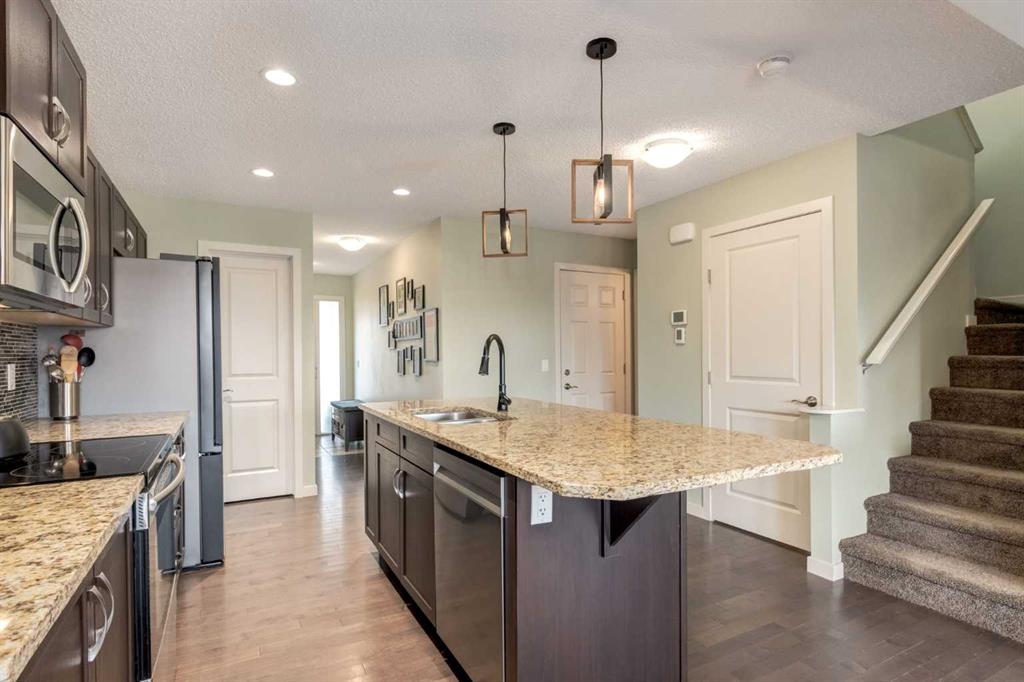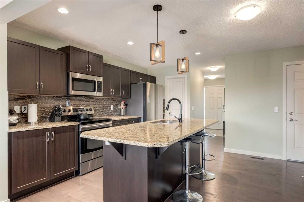 Beautiful semi-detached home situated in the sought after community of River Heights offering 1,896 SF of developed living space with 3+2 bedrooms, 2.5 bathrooms plus a bonus room. The bright and open main floor greets you into a large tiled foyer with seamless transition into the main living area with hardwood flooring throughout and a well equipped kitchen featuring quartz countertops, center island with eating bar, stainless steel appliances and a walk-in pantry. The dining area gives access to the SOUTH facing deck and living room enjoys backyard views. A powder room completes this level. Upstairs you will find a generously scaled bonus room, primary suite with a walk-in closet and 4 piece bathroom and 2 additional guest rooms which share a 4 piece bathroom. The basement expands your living space with 2 more bedrooms (or home office), laundry room and an abundance of storage. Don't overlook the OVER-SIZED attached single garage (24'x13') and spacious, fully fenced backyard. Ideally located within walking distance to parks, schools and minutes to an array of amenities. Nothing to do but move in!