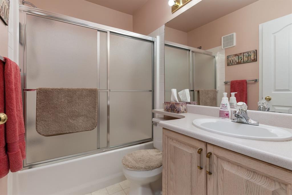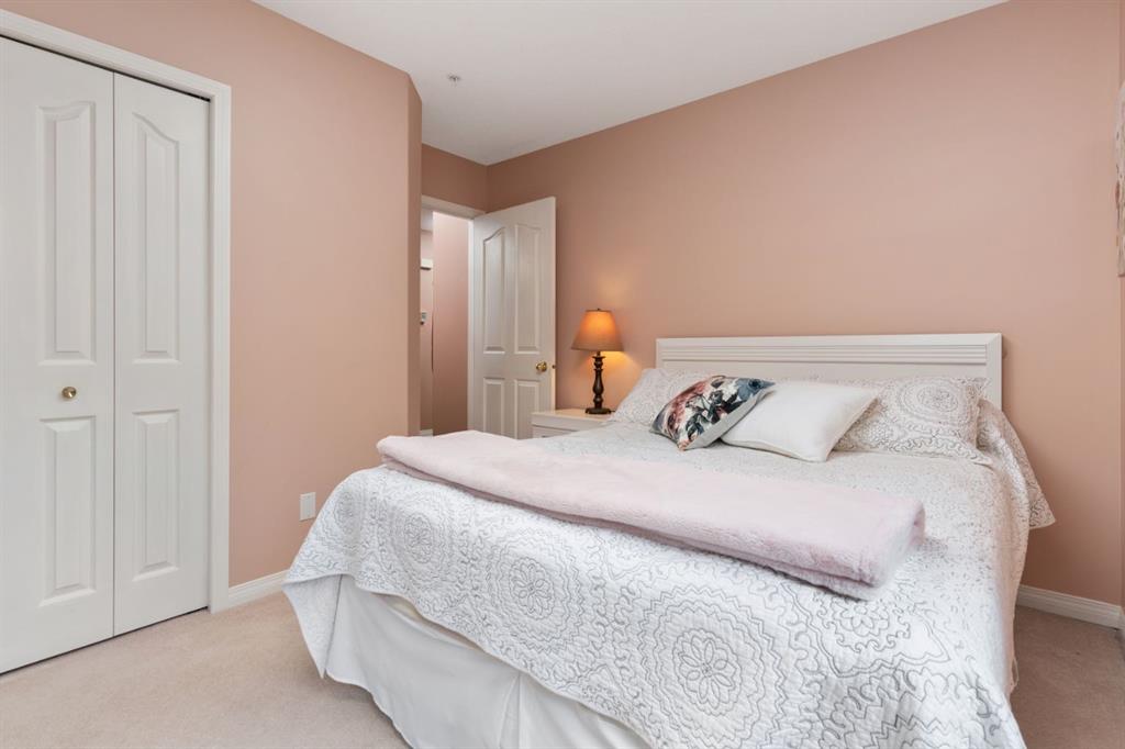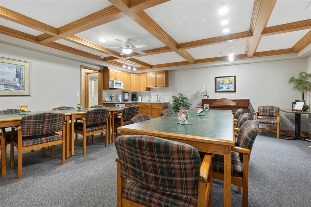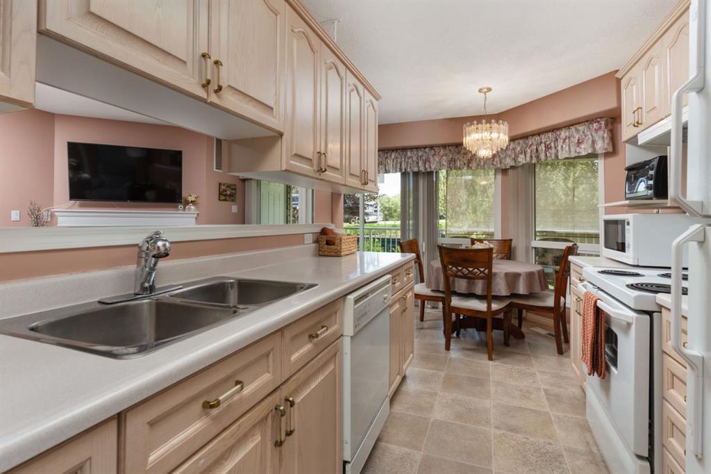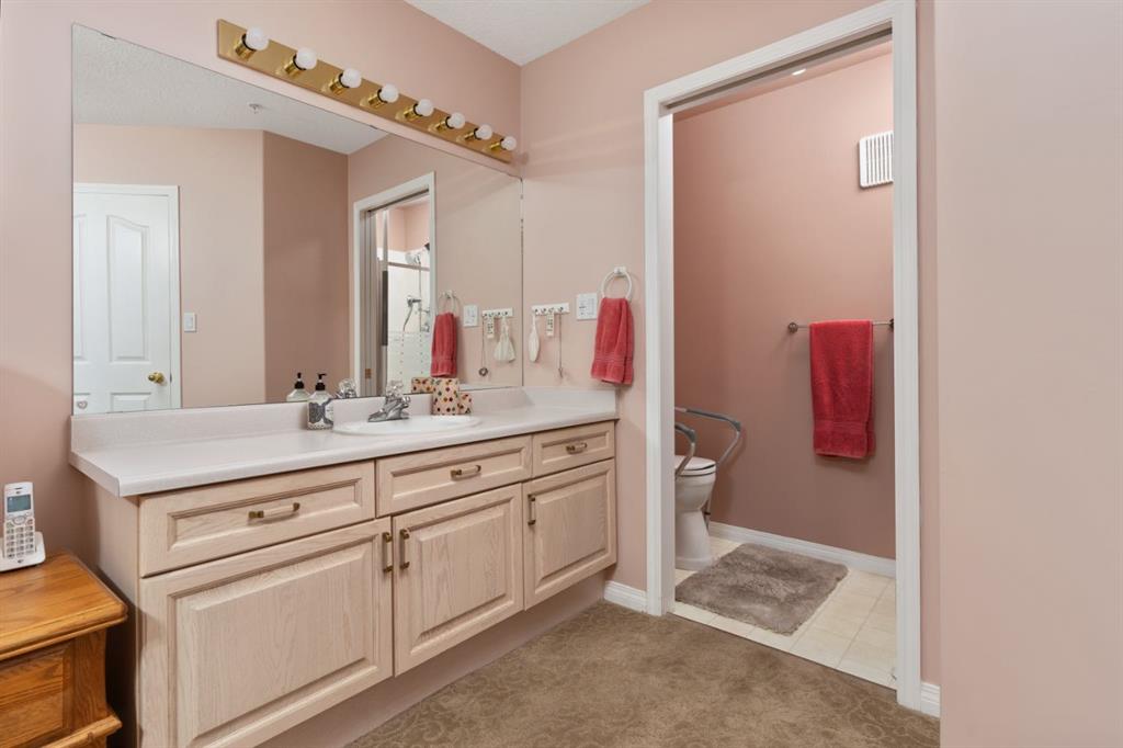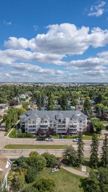 Welcome to this bright and inviting 2-bedroom, 2-bathroom main floor end unit condo, ideally located just across from scenic parks and miles of walking trails, and only steps away from the vibrant heart of downtown Camrose. This unit feels more like a private retreat than a condo, thanks to its lush, garden-like setting. Step through sliding deck doors from the cozy living room-complete with a gas fireplace and classic mantle-onto your covered, private deck. Surrounded by mature shrubs, trees, and an optional privacy screen, this outdoor space feels like your very own secret garden. The kitchen is well laid out with plenty of cabinets and counter space, perfect for baking, cooking, and entertaining. The open dining area offers flexible space whether you're hosting a dinner party or enjoying a quiet evening at home. Down the hall, you'll find a spacious primary bedroom with a large window, walk-in closet, and its own 3-piece ensuite. The second bedroom, perfect for guests or a home office, features corner windows with views of greenery, offering a calm, peaceful ambiance. A full 4-piece main bathroom and in-suite laundry with additional storage complete the interior. An added bonus: this unit is just steps from the titled attached garage, making it incredibly convenient and accessible. The building is professionally managed and features a strong, welcoming community. Take part in social events like music nights, coffee mornings, dinners, and games in the party room, or enjoy the quiet privacy of your own space. The choice is yours. Whether you're downsizing, looking for a peaceful home base, or a low-maintenance lifestyle close to everything, this condo offers a rare blend of comfort, nature, community, and convenience.