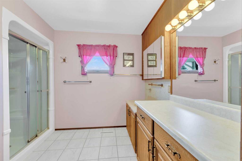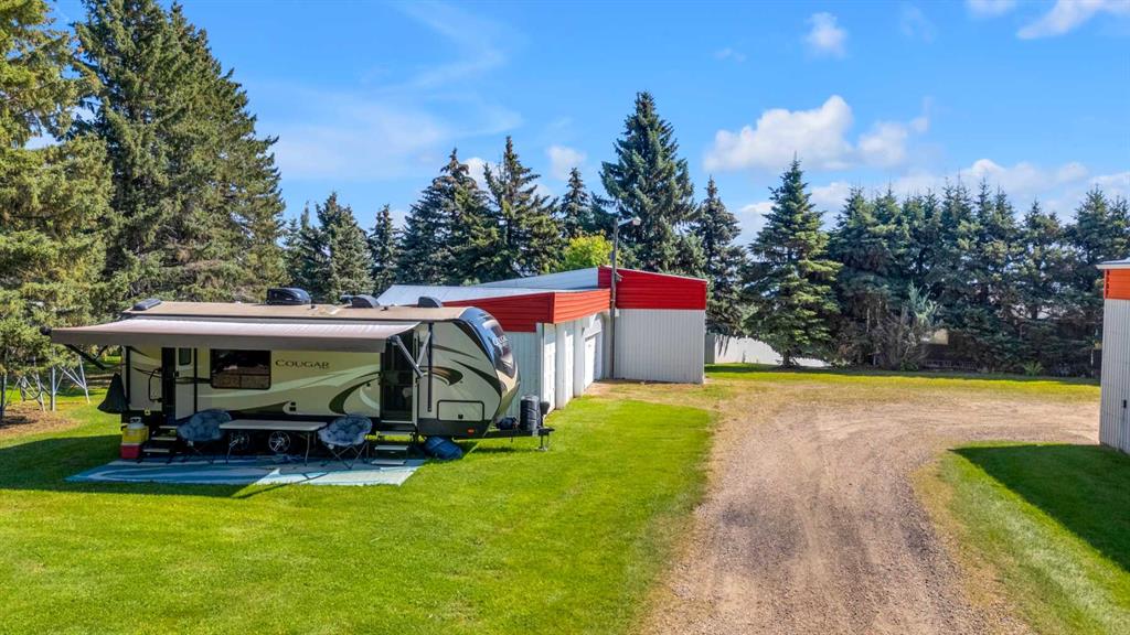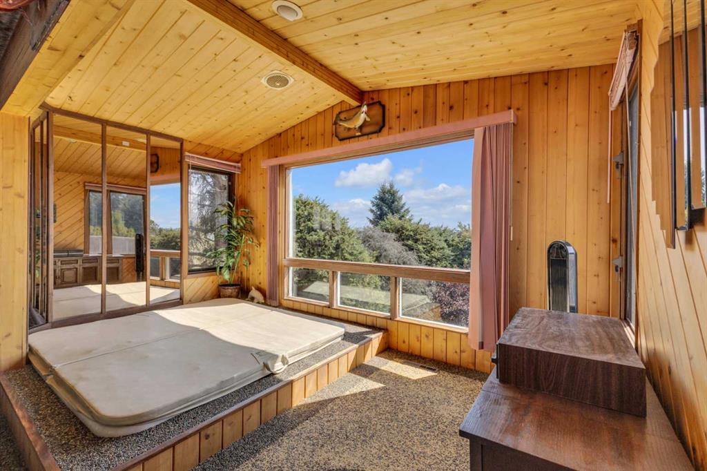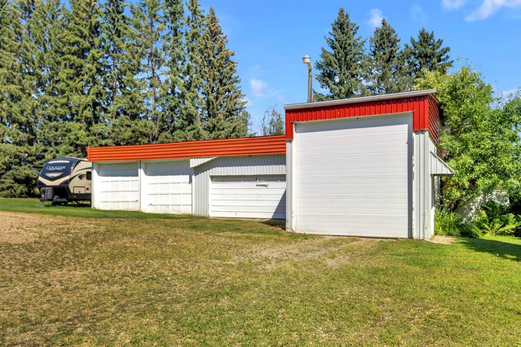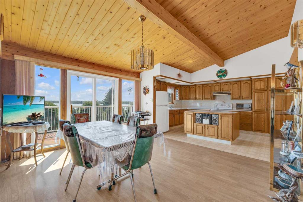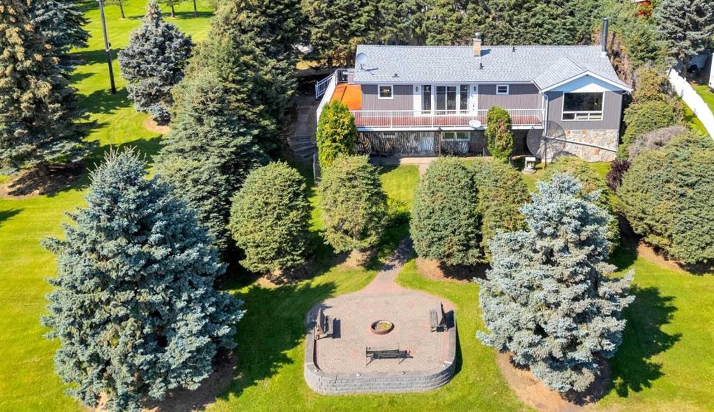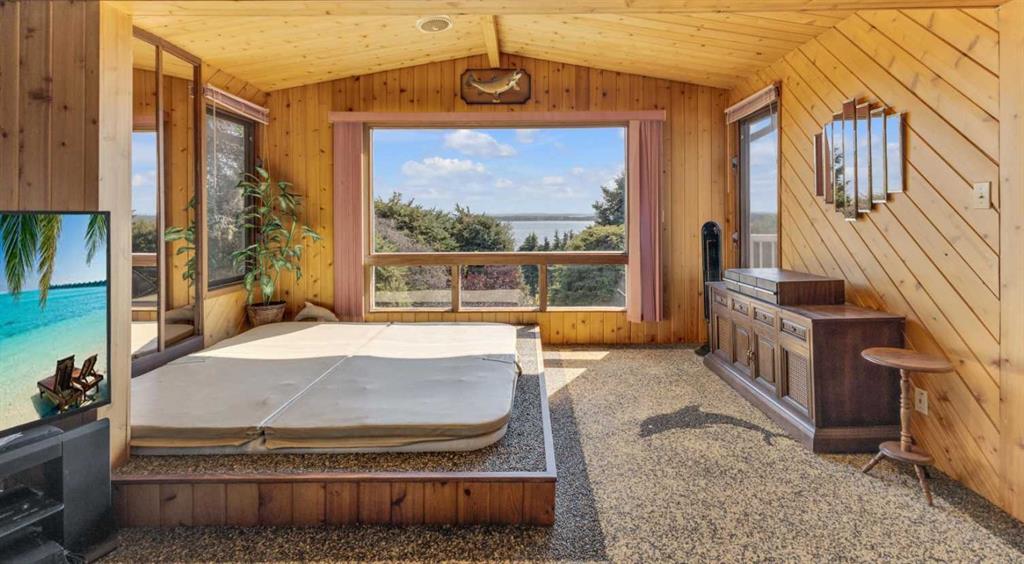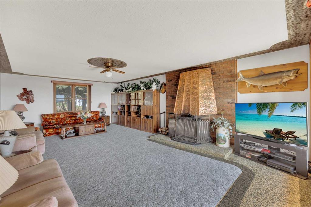 Rich in history, this grandeur lakeside acreage is amoung the last of its kind! The waterfront views offer breathtaking sunsets and morning sunrises you cannot wait to wake up to. Wide open skies above the custom designed fire pit area elevate your star gaze while mature landscaping and farm land surrounds you in privacy. Spanning across 250 feet of shoreline access, let your dreams sore! Step onto the wrap around deck and into the main level where the kitchen and dining room take full advantage of southeast facing lake views. Cozy up in the east wing where the hot tub overlooks the lake and the fireplace connects the spacious living room. Two bedrooms and 5pc bathroom complete the main floor. Downstairs, the character of this 1960s farm home shines. With room to develop as you like, the walk out basement would make for a great games room, wet bar area or hobby space. Currently used for generous storage, it also features a bathroom, laundry and bedroom. Step outside and nestle into the covered patio area. Listen to the sounds of birds sing and gentle crash of waves along the docks. Thoughtful landscaping highlights the historic roots where Hiland Spruce Estates originated; boasting perfect blends of sun and shade. The NE corner of homesteading acres even features an adorable school house, rustic trapper’s cabin and well built 24’ x 14’ shed. The large 32’ x 46’ shop is a mechanic’s dream; heated with full size furnace, insulated, concrete pad, windows and 220 power. An expansive machinery shop with more than enough room to park all the vehicles, equipment and toys; features 30 amp RV power and 220v as well! The heightened addition also offers excellent dry storage. Home updates over the years include septic field, water well, shingles and vinyl siding, plumbing, electrical, furnace and remodeled design to its time of the early 90s. Over 27 acres boasting lake front views with flexibility to enjoy as your very own lakeside retreat or a rare investment portfolio addition – spectacular opportunity awaits!
