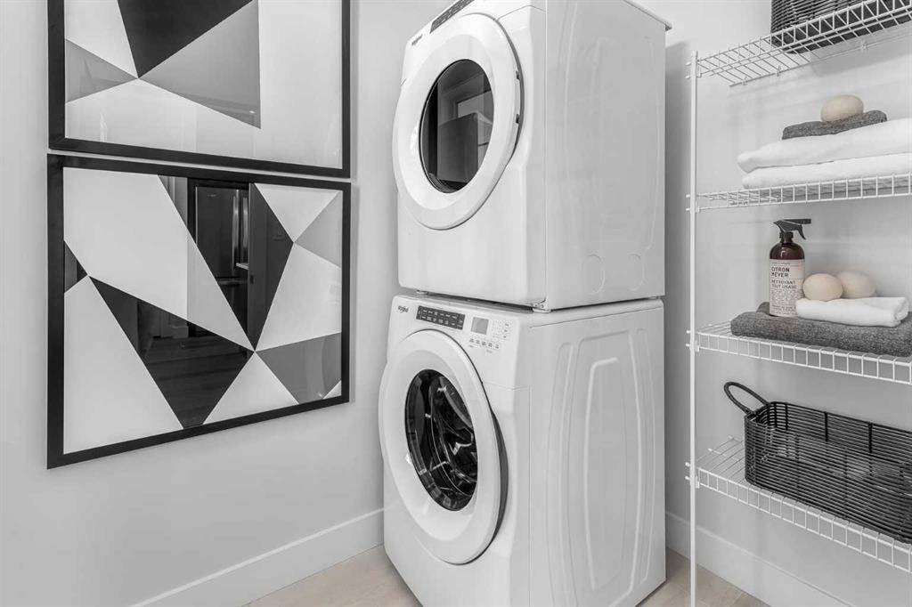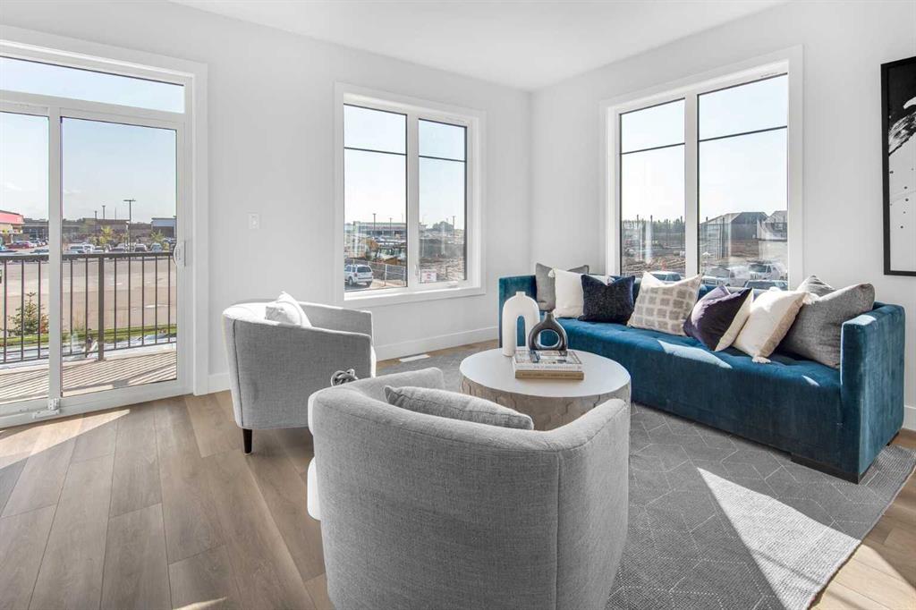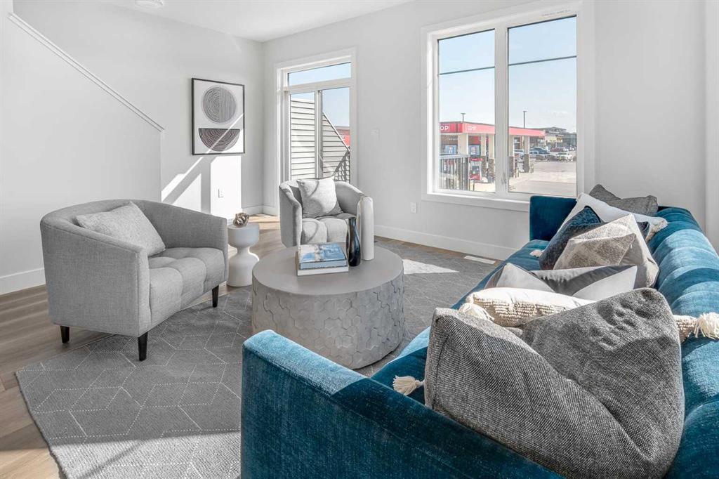 The stunning ‘Holiday’ model by Brookfield Residential is now available in the heart of Rockland Park! This brand-new townhome is thoughtfully designed and extensively upgraded, offering 3 bedrooms, 2.5 bathrooms, a ground-floor den, and a private double attached garage. The open-concept main living area features a timeless kitchen with full-height cabinetry, quartz countertops, a built-in hood fan and microwave, and a stainless-steel appliance package. The extended island provides additional seating, making it a natural gathering place. The kitchen flows seamlessly into the dining and living areas, which are filled with natural light thanks to a wall of windows. A private balcony off the living room offers the perfect spot to enjoy the summer sun. A full laundry room with extra storage and a 2-piece powder room complete this level. Upstairs, the spacious ~11’ x 12’ primary suite includes a walk-in closet and a private ensuite. Two additional bedrooms and a full bathroom complete the upper floor. On the lower level, a versatile den off the entryway provides the perfect space for a home office or flex area, while the private double attached garage keeps your vehicles and valuables safe year-round. This home has been upgraded throughout, including central A/C rough-in, BBQ gas line, pendant lighting over the island, 42" upper cabinets, and a full interior selections package. The property is protected by both a full builder warranty and Alberta New Home Warranty, offering peace of mind in one of Calgary’s most sought-after new communities, with an unbelievable homeowner’s association, Rockland Park. If you’re looking for a stylish, low-maintenance townhome with exceptional design and craftsmanship—this is the one!