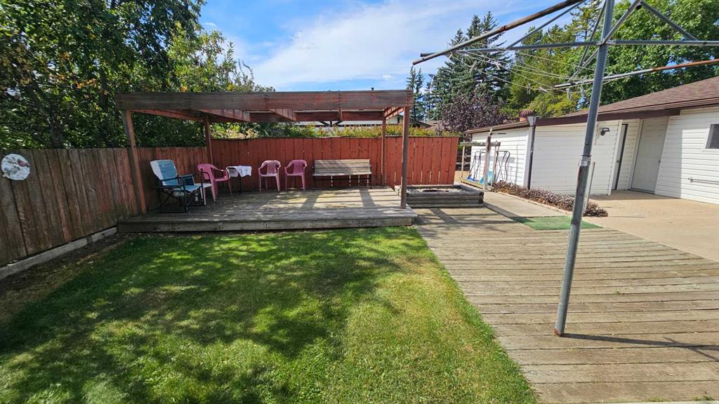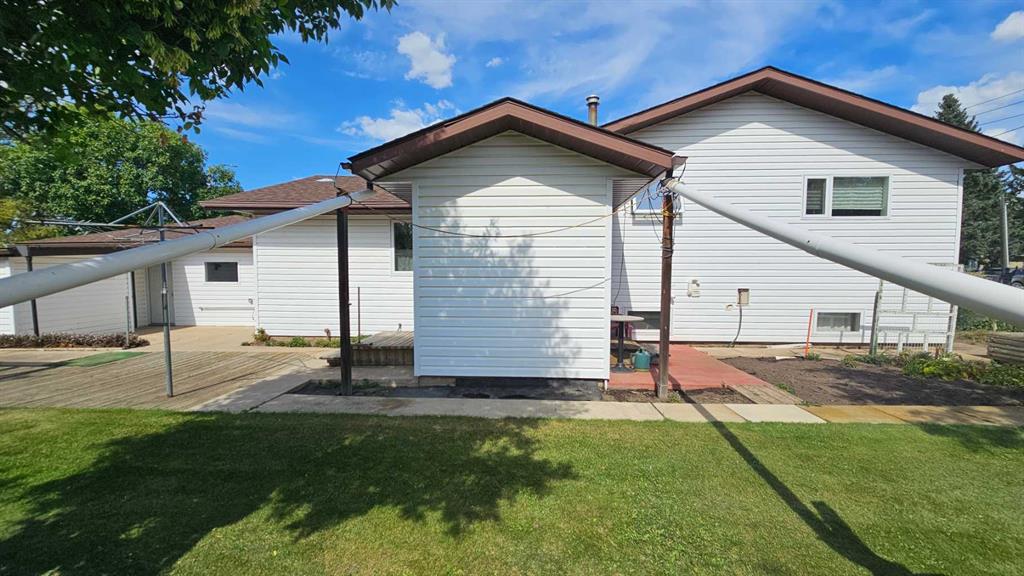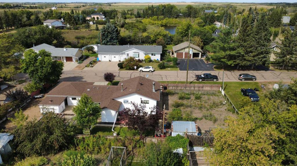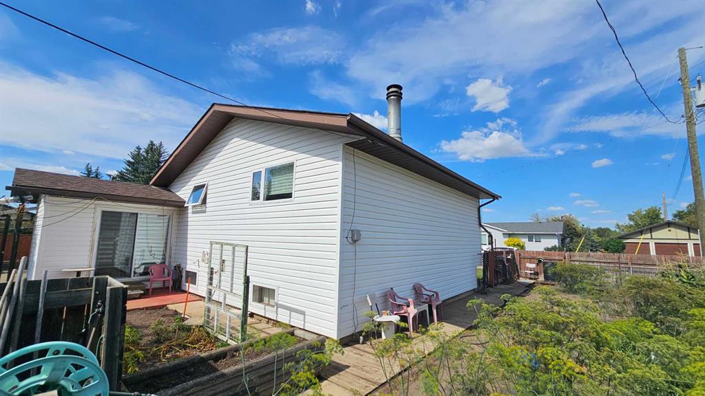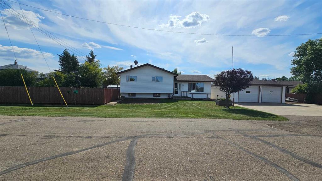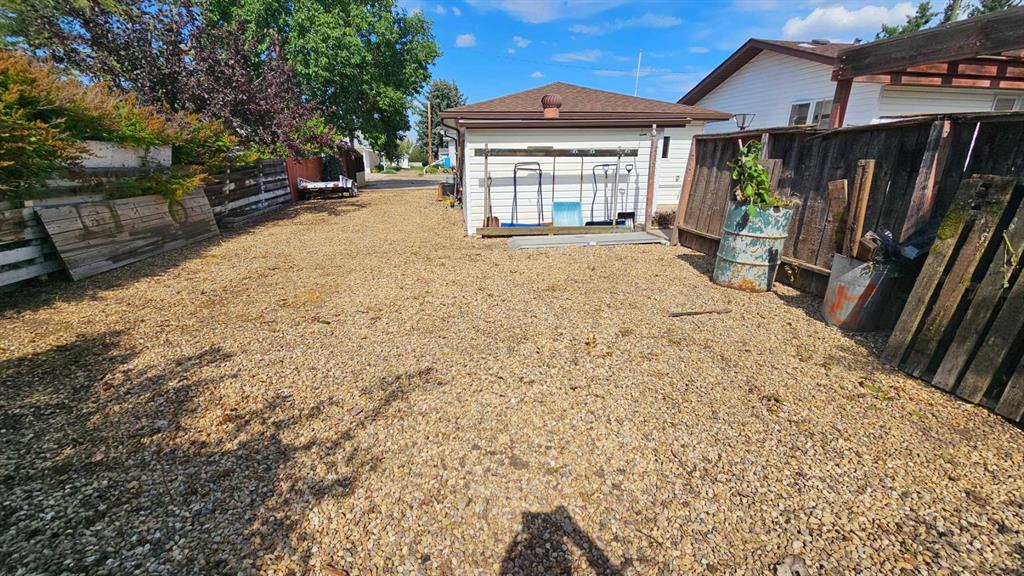 Location, location, located in the north part of Castor which is very quite, with many trees all around the area, this beautiful 4 level split home has been carefully nurtured and spoiled over the years by the owners. Having 1190 sq ft , this 1968 home comes with a double detached garage with cement driveway, cement walkways around the home and three wooden decks, one out front, one by the back door and one under the exterior sitting area in the back under the pergola and the shade of many trees. There is an RV parking spot that is graveled and has small amp plug ins close by. The yard which is fenced on three sides, shows pride of ownership and has an amazing garden that has produced loads of produce over the years. The main floor has a large sunny living room and spacious kitchen with a spot for the dining room table. The rear entrance is a bonus as it handles all the weather before you get to the main part of the house. On the upper floor are the three bedrooms ( one has the washer and dryer in it now) and main renovated bathroom, one level below is the large family room to entertain in, with a brick faced wood fireplace in case of power outages in the winter time and a three piece bathroom which has a spot for the laundry , then down one more level are the storage rooms, cold room and workshop area. The vinyl windows, shingles, siding , HE furnace(2013), the brand new hot water tank(2025) and the main bathroom shower installation(2025) show some of the upgrades. With 3 bedrooms, two bathrooms, ample storage, huge and beautiful yard, ample parking and storage space, this property has all the necessary attributes for the next family to enjoy.