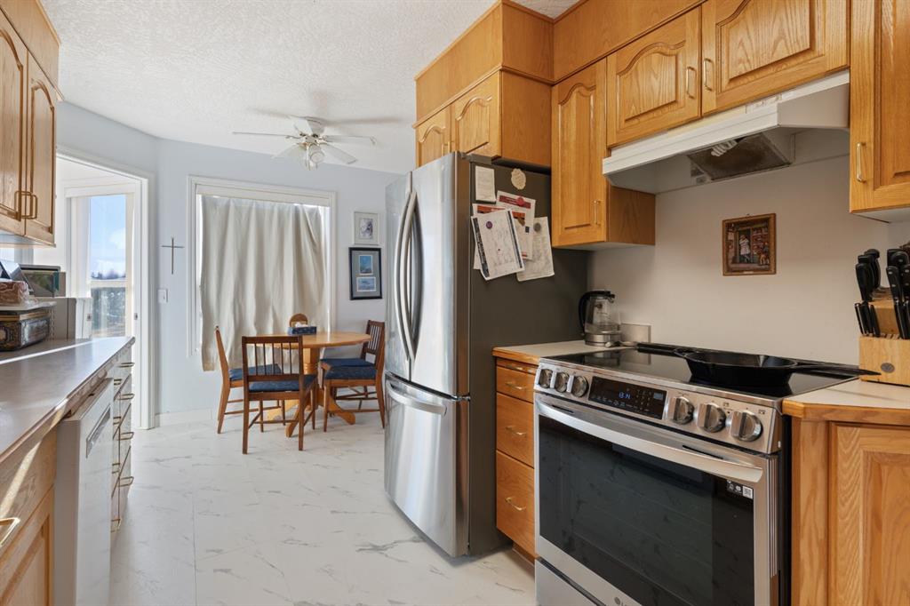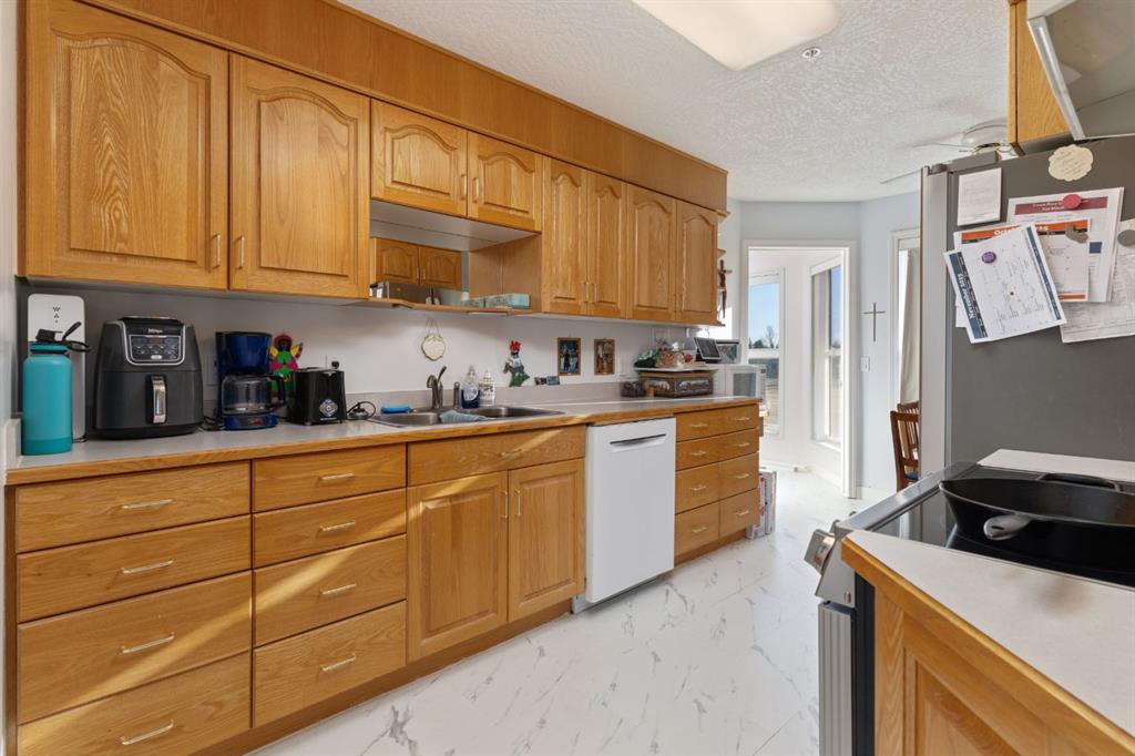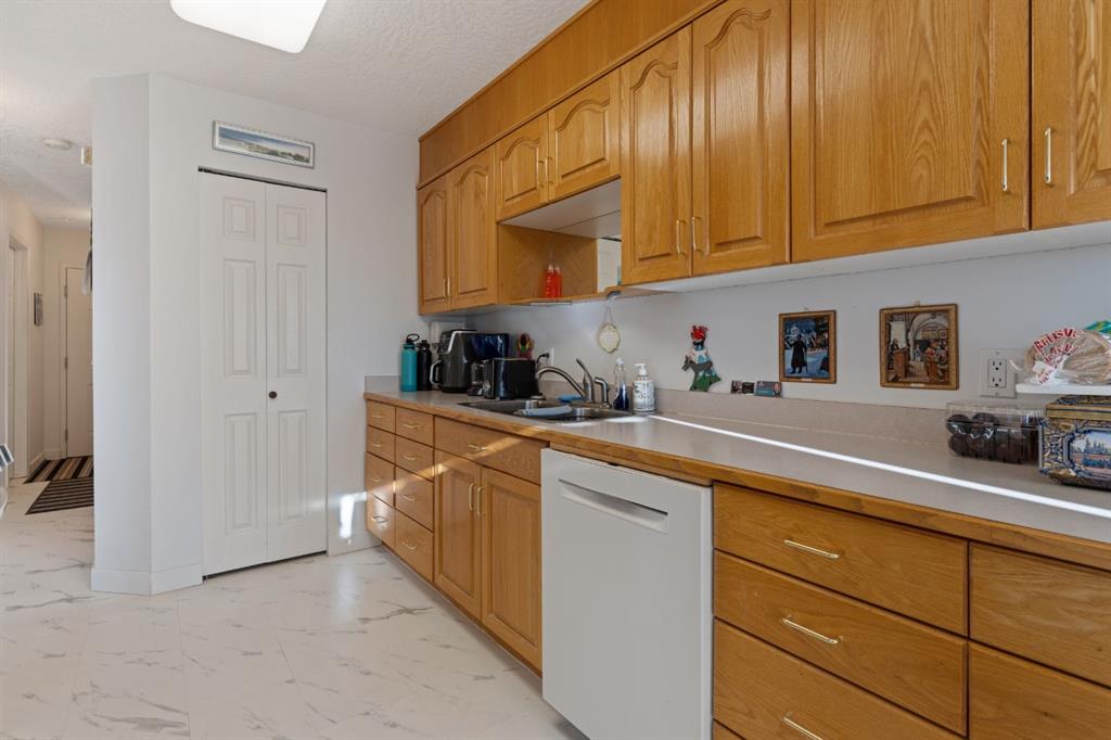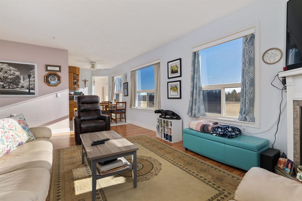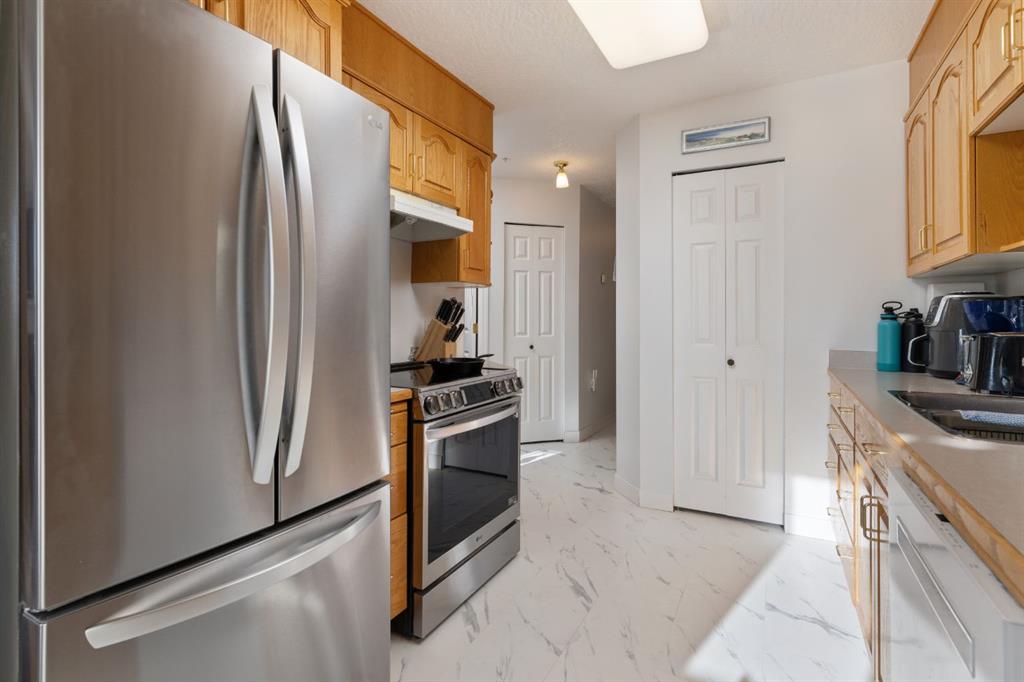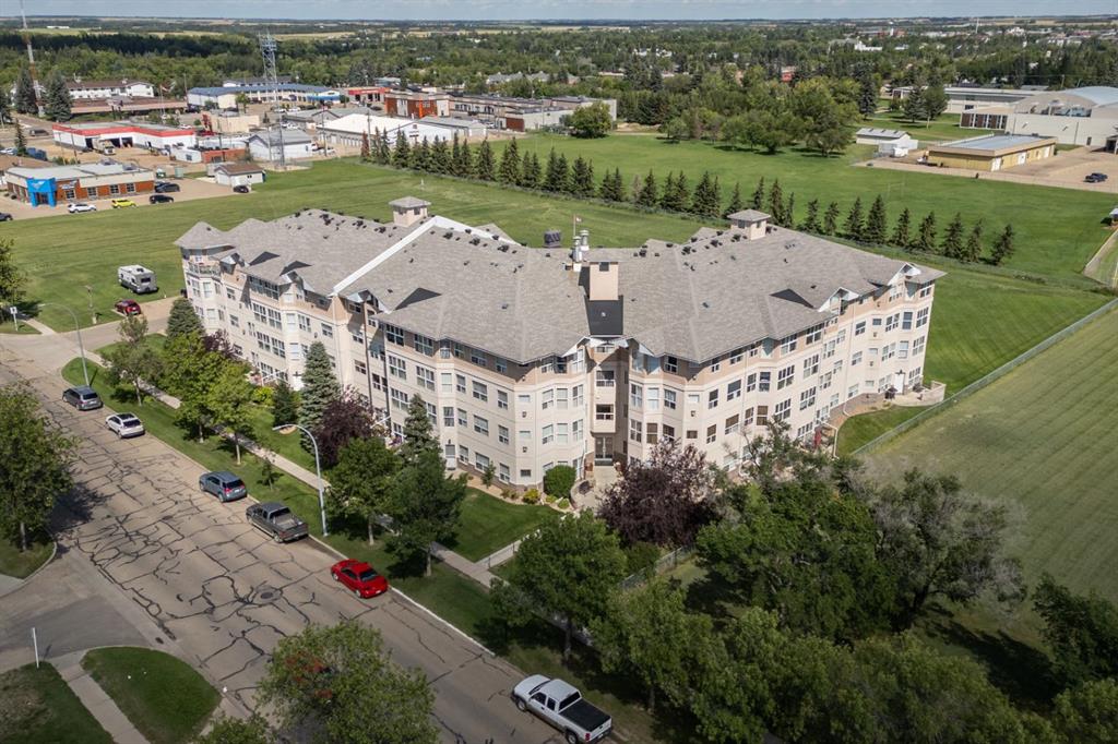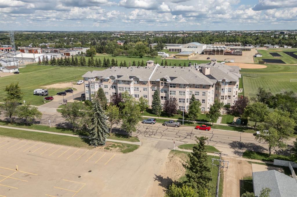 Looking for a bright and spacious condo with a great layout? Welcome to Crown Place! This 2 bedroom, 2 bathroom home has 1246 sq ft of living space, plus sunshine galore thanks to its south AND west exposure. You’ll love the natural light that floods into both sunrooms, the living area, and the bedrooms. On those cooler evenings, the cozy gas fireplace makes the perfect spot to unwind. The primary bedroom is huge, with two sets of double closets and a 3-piece ensuite. The second bedroom also has its own ensuite, which doubles as the main bathroom, making this a fantastic setup for roommates, guests, or just a little extra privacy. In-suite laundry is a great feature with bonus storage space, for those seasonal extras. One of the best features? The wall of south-facing windows with a 3rd floor view of the high school soccer field. It’s just green grass & trees as far as you can see, a rare find that feels private and peaceful! No need for art on the walls as the natural art changes with the seasons! Crown Place isn’t just about the condo unit though. The building itself has a friendly community vibe with a large lobby where theres always someone to chat with over coffee, plus a games room, kitchenette, puzzle/book room, and an exercise room. With shopping, restaurants, and medical clinics nearby, everything you need is right at your fingertips. You'll appreciate the assigned powered parking stall and visitor parking here as well!