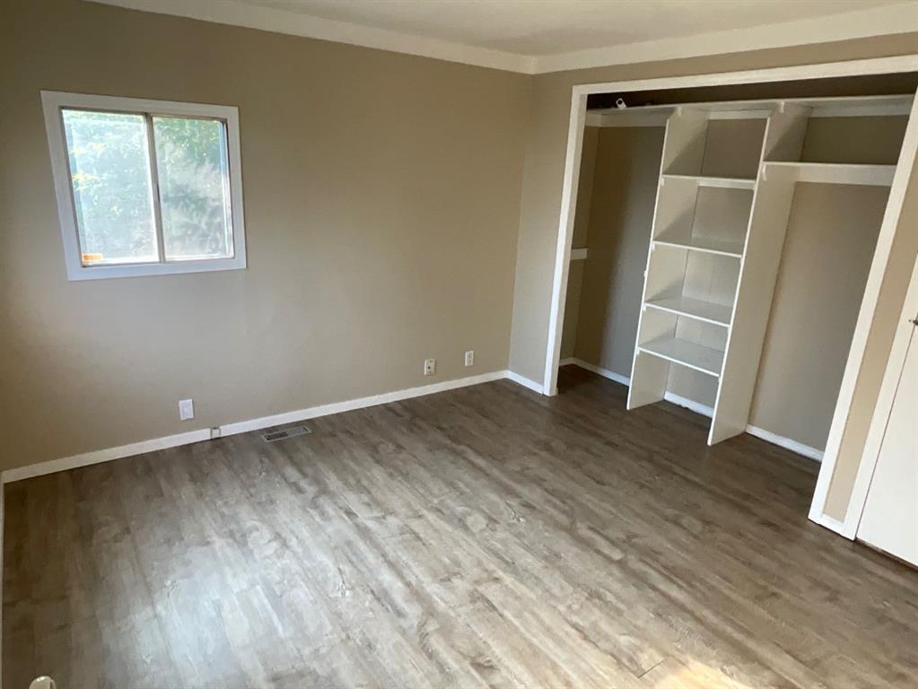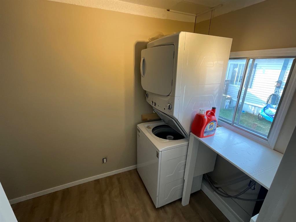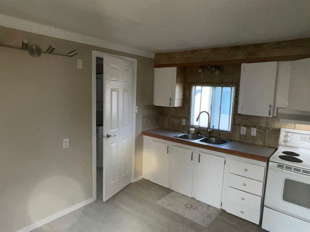 A great place to start - this inviting home offers space, privacy and home ownership for an affordable price! The floor plan features a spacious living room in front, a large master bedroom with double closet at the back separated from the two smaller rooms by a full bath, a central eat-in kitchen with ample cabinetry, and a super convenient laundry/storage room right off the kitchen. Updates to this comfortable home include new plank flooring, some new light fixtures, a crisp white kitchen with custom tile work, and more gorgeous tile work in the bath along with a soaker tub and vanity with granite countertop. The large and private yard is also a bonus, with a massive partially covered deck along the side of the home, shady trees and a beautiful lawn, 6-foot wood fence and 'man cave' storage shed and 2 parking spots. New stackable Washer /Dryer January2025, New Water Heater November 2023. This home offers a lot for a little, see it to appreciate it!