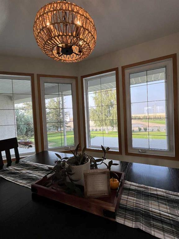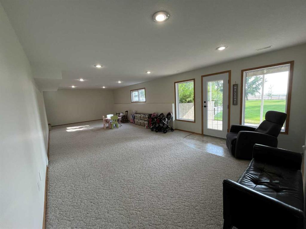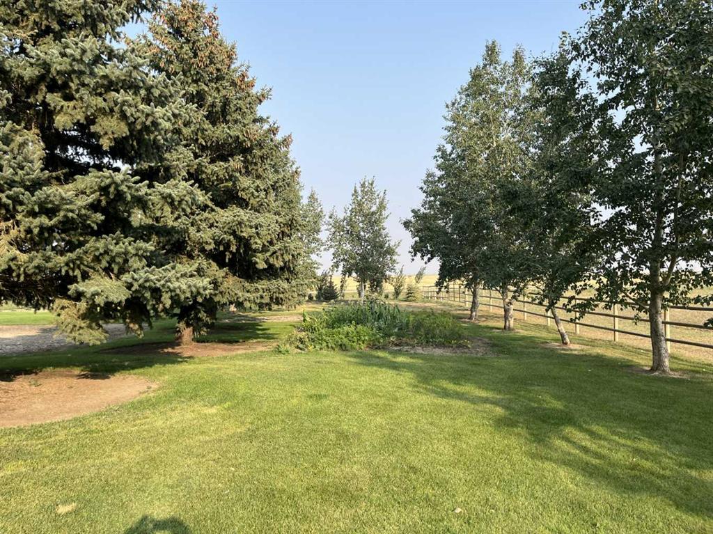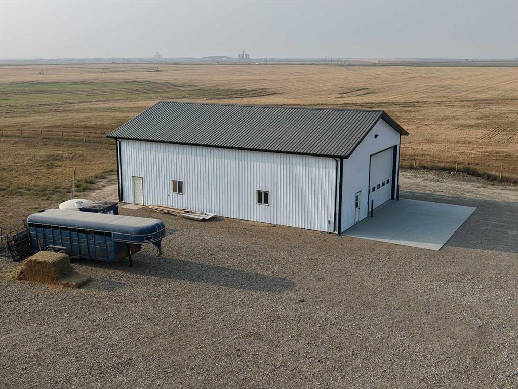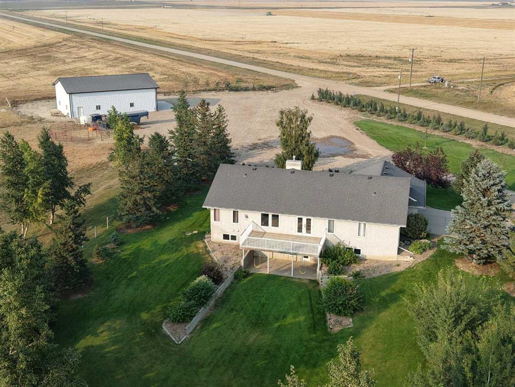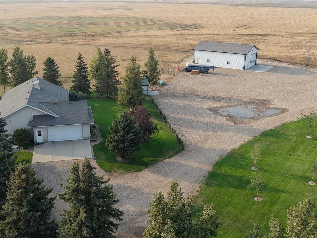 So here is an amazing acreage that has all the bells and whistles, and is truly a "Move In" ready home. Sitting on 7.07 acres, the home is 1633 SQFt, 4 bed, 4 bath, with tons of natural light and open floorplan that includes a large kitchen, island, dining room, and a beautiful deck off the kitchen to enjoy those beautiful sunsets. Living room boasts a fireplace for the fall evenings coming soon, main floor laundry, and another two bedrooms. The basement has a huge rec room complete with a walk-out basement to enjoy ! So many upgrades to talk about with this one. There are large windows downstairs so you don't have that "basement" feel to it, another two large bedrooms, large bathroom, cold storage and another large storage room. Attached 25x25 garage with radiant heat that's a year old, AC, UG sprinklers , 12x16 metal Garden shed with a roll up door and a concrete pad, a treed park-like yard that many dream of. Everything has been so well taken care of, including the newly built 40x60 shop. Concrete floor with a drain, plumbed and ready to go for a bathroom in there if you would want, gas line, set up for an up-top exhaust fan, and 20x14 door. The yard, the home, the views, the shop and the animals... It's all here for you ~