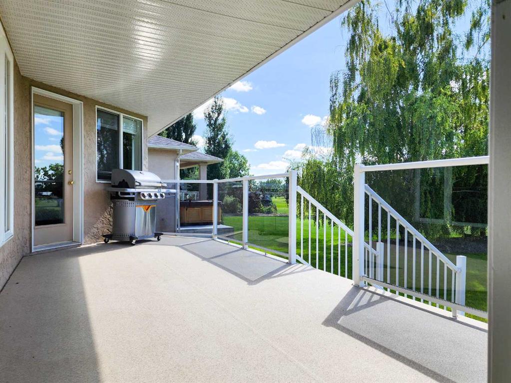 Golf Course Living at Its Finest – Immaculate Custom Home on the 7th Fairway in Claresholm. Welcome to this beautifully appointed custom home, perfectly situated along the 7th fairway of the Claresholm Golf Course. With breathtaking views from nearly every room, this 2-bedroom plus den (or optional 3rd bedroom), 2-bath residence offers modern updates and thoughtful functionality — ideal for retirees, professionals, or families seeking serene golf course living. Lovingly maintained by its original owner, the home was extensively renovated just five years ago and features a refined, open-concept layout with high-end finishes throughout. Step through the tiled foyer and into the airy main living space, where vaulted ceilings and oversized picture windows flood the home with natural light and stunning fairway views. The living room is anchored by a dramatic three-sided glass fireplace, framed by custom built-in shelving and decorative ledges — perfect for plants, art, or curated collections. The chef’s kitchen is the heart of the home, featuring floor-to-ceiling custom cabinetry, quartz countertops, a stylish tile backsplash, and a large center island with storage — ideal for entertaining. A generous pantry offers excellent storage, while a patio door lead directly to a spacious, maintenance-free deck — perfect for al fresco dining and sunset cocktails. The main floor also includes a versatile front den or third bedroom, a beautifully updated 4-piece bathroom, and a spacious secondary bedroom. The luxurious primary suite is a true retreat, offering private deck access and uninterrupted views of the golf course. The spa-inspired ensuite boasts a walk-in tiled shower with glass blocks which allows loads of natural light , double quartz vanity with high end cabinetry. Additional highlights include an expansive DuraDeck deck with tinted glass panels and aluminum railings, offering unobstructed views of the golf course. Inside, you'll find engineered hardwood and tile flooring throughout the main level, along with a convenient main floor laundry room located just off the kitchen. The 21' x 24' double attached garage includes a man door for easy backyard access. A spacious unfinished basement provides endless potential for future development. The low-maintenance yard and exterior ensure carefree living year-round. This is your opportunity to own a meticulously cared-for home in one of Claresholm’s most desirable golf course communities — where elegance, comfort, and lifestyle come together.