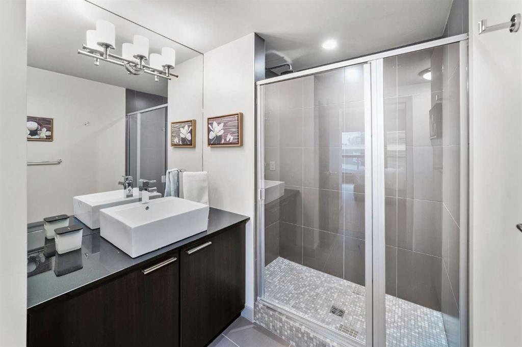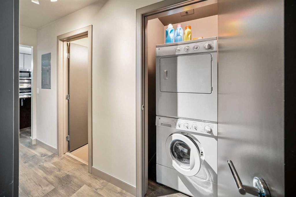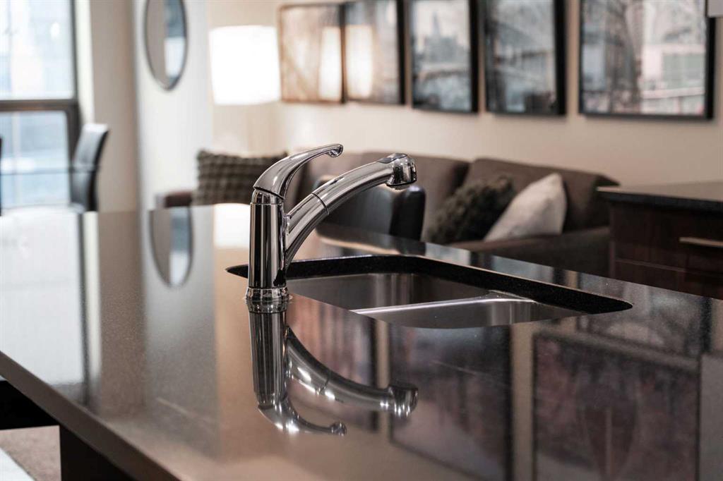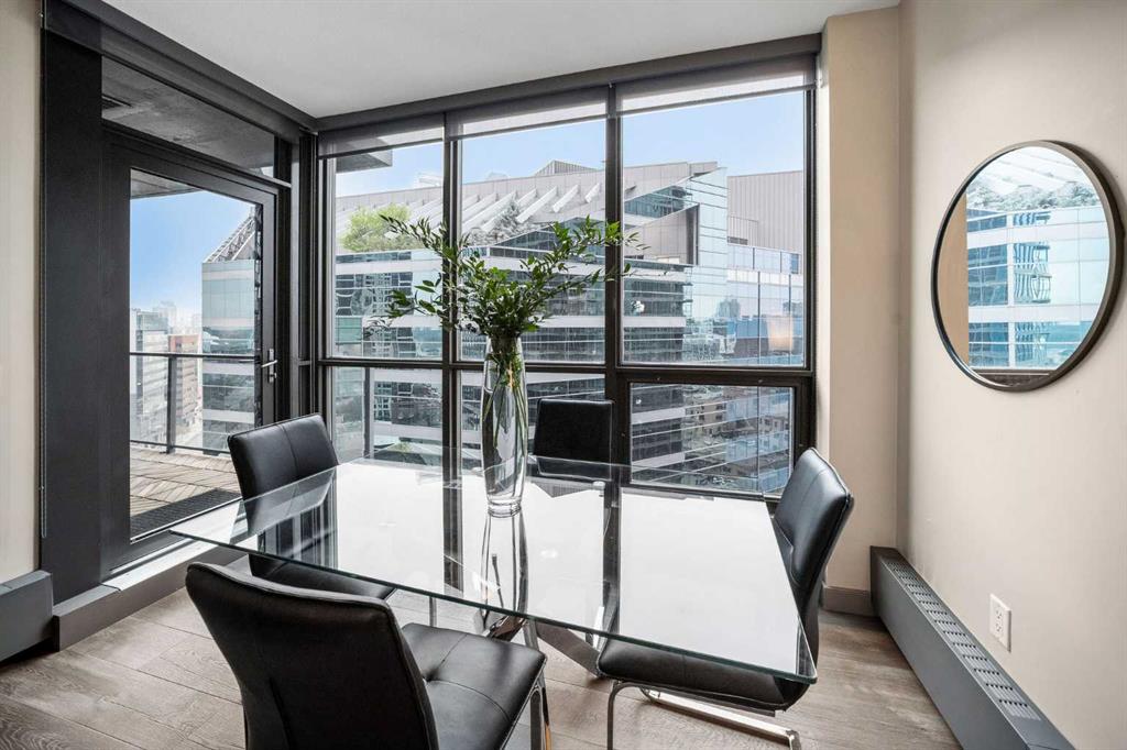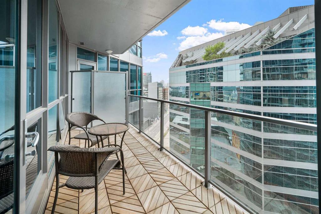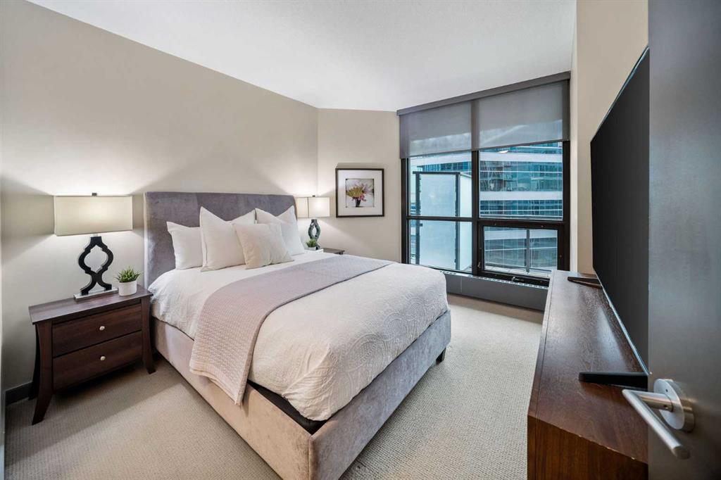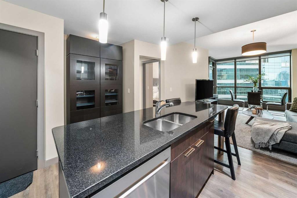 SLEEK 2 BED, 2 BATH, TURNKEY CONDO IN THE HEART OF CALGARY! Imagine living above Sunterra Market with fresh groceries, ready-to-go meals, and your morning coffee just an elevator ride away. This is the Beltline, Calgary’s most vibrant inner-city community where everything happens. Walk to the Saddledome for concerts or Flames games, experience the buzz of Stampede Park, shop and dine along 17th Avenue, or head out to the river pathways for a change of pace. Living the life in the Beltline means your days are connected, your evenings are lively, and your weekends are filled with endless options. At Keynote 1 you are not just buying a condo, you are putting yourself in the center of Calgary’s energy where work, play, and lifestyle all come together. This 15th floor residence offers nearly 900 sqft of chic and functional living with two bedrooms and two full bathrooms. Floor-to-ceiling windows flood the open-concept space and the dining area flows seamlessly onto your spacious balcony finished with interlocking wood tiles that add warmth and style to your private outdoor retreat. Inside, the kitchen is designed to impress with granite countertops, stainless steel appliances, and a custom-style shelving unit that extends your pantry or provides a showcase for glassware, plus a convenient breakfast bar perfect for pre-game cocktails with friends or a post-concert Skip order. Recently updated luxury vinyl plank flooring enhances the modern feel, while in-suite laundry deliver convenience. Unlike most condos, this property comes with not one but two storage lockers, a rare and valuable feature for condo living, along with a titled, secure, heated underground parking stall. BONUS: All the furniture, cookware/glassware, small appliances, cutlery, TV, dining room set can stay. Keynote residents enjoy premium amenities including two fitness facilities, one dedicated to weights and the other to cardio, a stylish owner’s lounge with table games and gathering spaces, and a landscaped courtyard with outdoor BBQs, water feature wall, and room to celebrate with family and friends. Hosting guests is effortless with access to two fully furnished suites available at an affordable nightly rate. Whether you are seeking your own urban retreat or a smart investment in Calgary’s most undeniable location, this home delivers lifestyle, convenience, and exceptional value all in one.