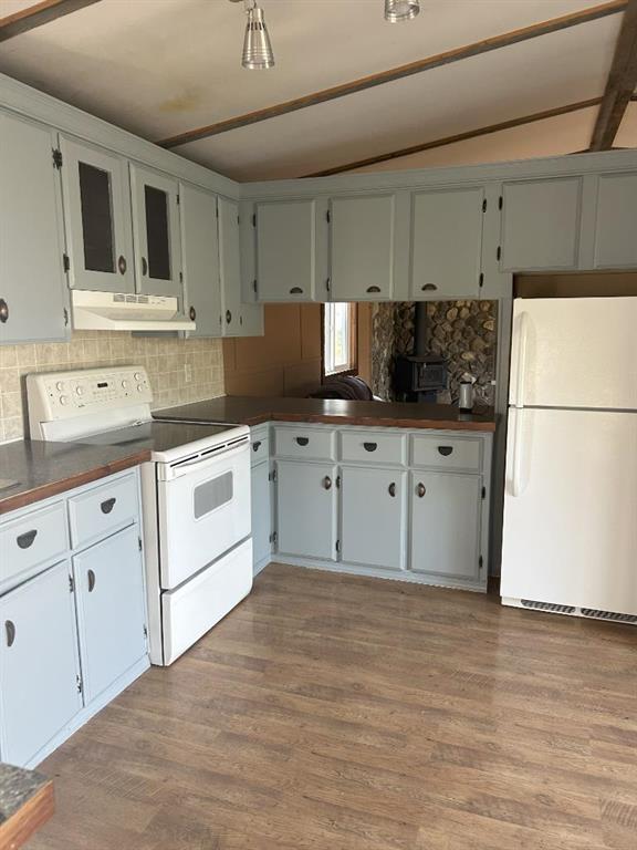 Welcome to the quiet Village of Amisk where you will find this mobile home on its own lot with a 24x30 detached double heated garage! This home features a large primary bedroom along with 2 more good sized rooms with a jack and jill bathroom. Nicely decorated kitchen with pantry, living room has a wood burning fireplace and large windows for natural light. The home is sitting on 6x6 treated blocks and has insulated skirting