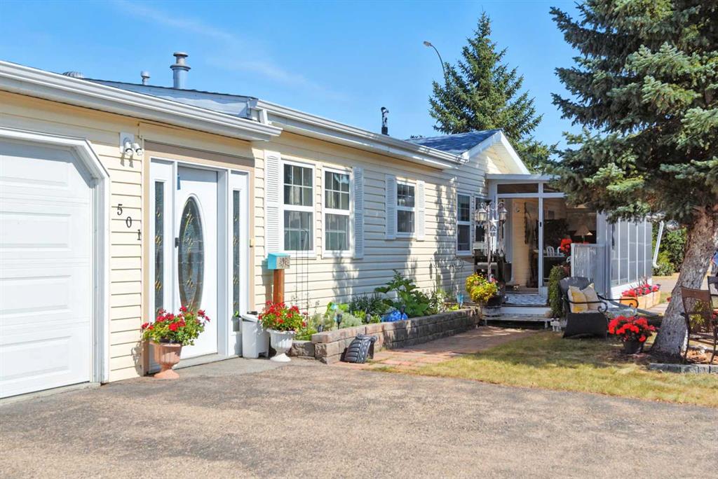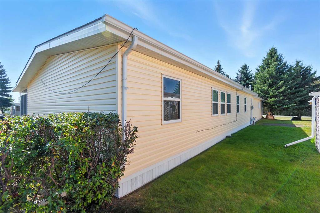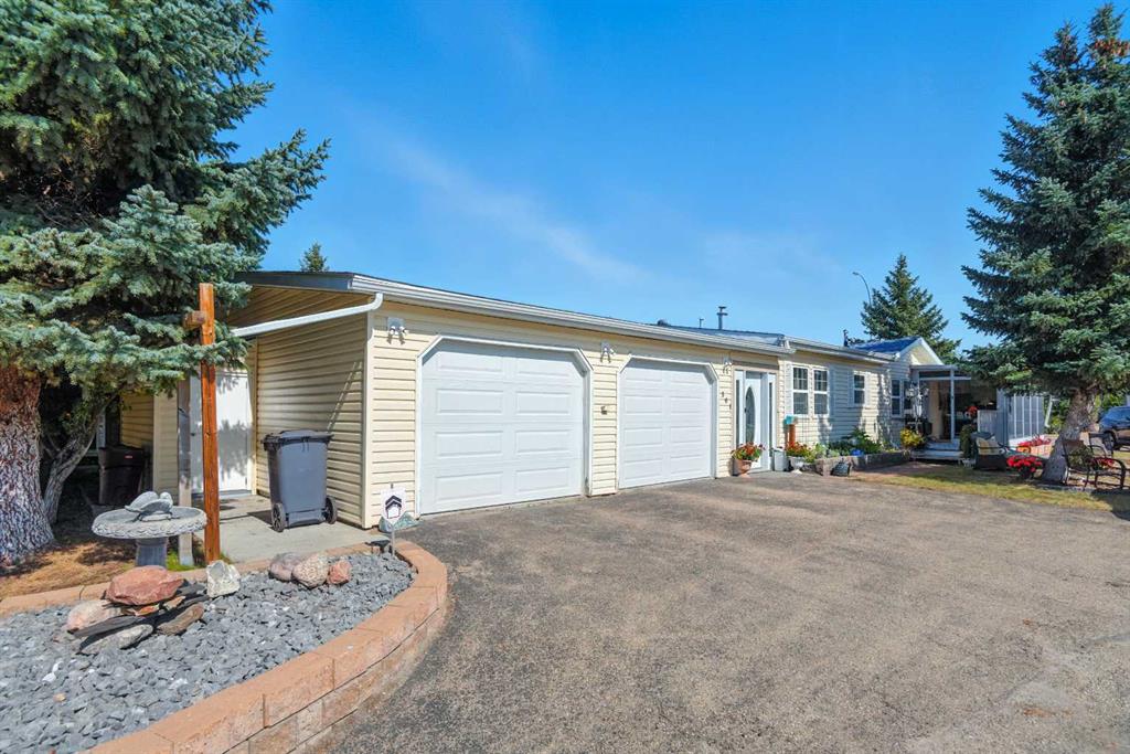 Welcome to the quiet, welcoming neighbourhood of Waskasoo Estates. This inviting modular home offers just under 1,500 sq ft, highlighted by a sunny front sunroom perfect for slow summer evenings or morning coffee. Thoughtful updates over the years include the kitchen, flooring, siding with exterior insulation, windows,light fixtures, baseboards, and more, so you can settle in with confidence. Inside, the living room feels bright and private thanks to specialty windows that let the natural light pour in while keeping your space secluded. The kitchen and dining area flow seamlessly, and a cozy nook at the back makes an ideal reading corner or breakfast spot. With three bedrooms, the spacious primary easily fits a king size bed and features a wonderful ensuite your own little retreat at the end of the day. A large double attached garage offers true two car parking plus extra storage for your gear. Residents also enjoy access to a community hall that families can rent for gatherings and celebrations. Pride of ownership shows throughout this is a peaceful place to call home.