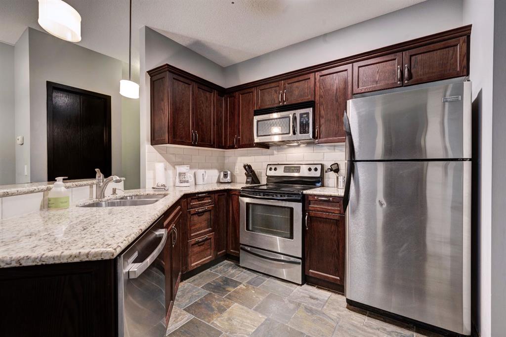 Tourist Zoned One Bedroom Unit in the Grande Rockies Resort! Flexible zoning allows for full time living or short term rentals. Open concept fully furnished unit featuring engineered hardwood flooring, granite countertops, stainless steel appliances and a cozy fireplace accenting the living area. The Grande Rockies Resort is a stylish and sophisticated building with plenty of amenities including a welcoming lobby, Grande Restaurant & Bar, a fitness area plus indoor/outdoor hot tub, indoor pool and waterslide. The building is complete with heated underground parking. Convenient location walking distance of many of Canmore's attractions including shopping and dining plus numerous walking and biking trails.