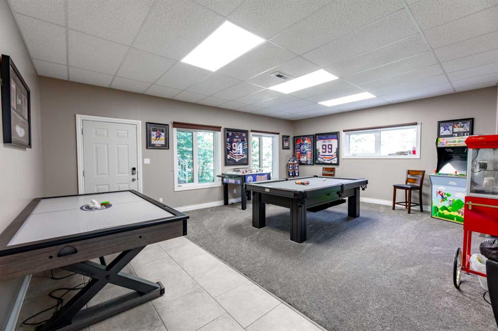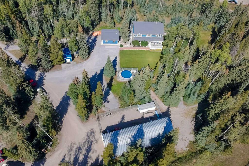 This tremendous acreage property offers nearly 8 acres of land complete with a double detached garage, 25’x85’ quonset shop, and a beautifully finished 2 storey residence. The fully developed home offers 6 bedrooms and 4 and a half bathrooms. On the main level, your guests will be greeted by the towering vaulted ceiling at the front entry. However, as the owner, you may choose to come in from the garage through the side door and into the massive boot room. Also on the first floor, the kitchen is an absolute show stopper. Stone counters, a huge prep island, loads of cabinet storage, upgraded appliances, and corner pantry. The kitchen is adjacent to the large dining room and separated from the living room only by the wood fireplace. A very nice layout for entertaining friends and family. In addition, the main floor offers a half bath and laundry in the boot room. The primary bedroom is also on this level and it offers a 5 piece ensuite bath with soaker tub and separate double shower, a spacious walk-in closet, and patio door to the back deck with hot tub & barrel sauna. Unwind and enjoy a spa-like experience at the end of each day! On the upper level, there are 3 bedrooms, one with a full ensuite bath and another with a walk-in closet. Plus, there’s another full bathroom upstairs along with a massive bonus room serving as a perfect home gym and playroom. The walkout basement boasts a great floor plan with a family/media room separate from a spacious games room. There are two more bedrooms downstairs and another full bathroom. The heated detached garage is 28’x28’ and was built close to the house with convenience in mind while the shop is tucked away from the home creating a great set up for a home based business. The shop has radiant heat, a bathroom, and a fenced compound outside. Mechanically, this home has been upgraded with the boiler system being replaced in the house in 2022, and the one in the garage done in 2023. The home is air conditioned and the HRV was replaced in 2019 and hepa filter system added in 2021. And finally, this property features a heated outdoor pool, perfect for those hot summer days! The driveway is gated and the lot is extensively landscaped offering several outbuildings, a concrete firepit area, and composite decking. A rare opportunity to own an acreage property that has so much to offer just minutes from town!