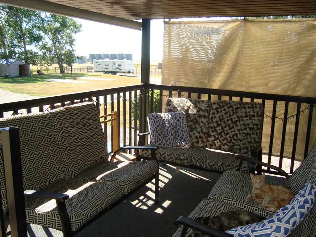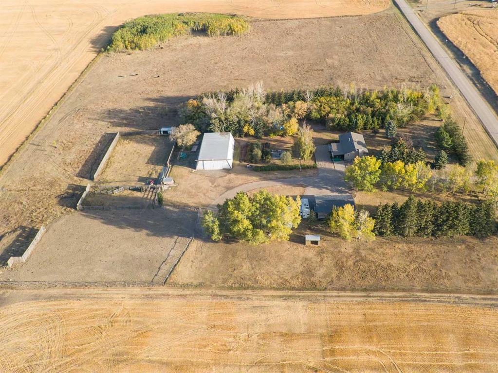 Care and Pride can be detected the moment you drive in the yard. So neat and well manicured, fully landscaped trimmed to enjoy. The home so well maintained and features that continually transform this to modern and handy conveniences. Exterior Maintenance up down and all around. From the large added Sunroom, all newer appliances, Total of 4 bedrooms plus hobbie room and 3 bathrooms, plus cold room, water filtration system and RO water in kitchen. Outside the oversized triple heated garage also with recent upgrades from new doors and newer furnace, exterior upgrades as well. 2 wells on the acreage , tidy pump house and a second shed over by the corrals for your tack. Not done yet bring your R.V. and park it out of the elements with the rest of your storage needs in the metal 48' x 72' Quonset. Neat clean corrals and fencing giving the acreage easy hosting for some livestock or your family pets and friends. Lots of trees for mature wind breaks and animal shelter. Call your favorite Realtor to view today.