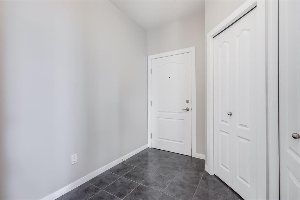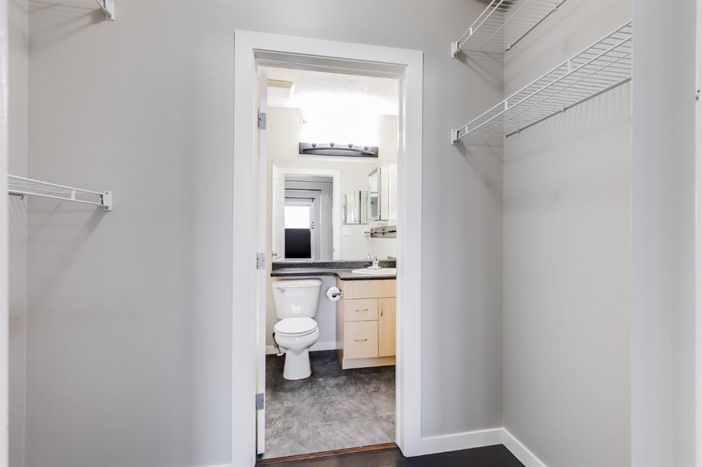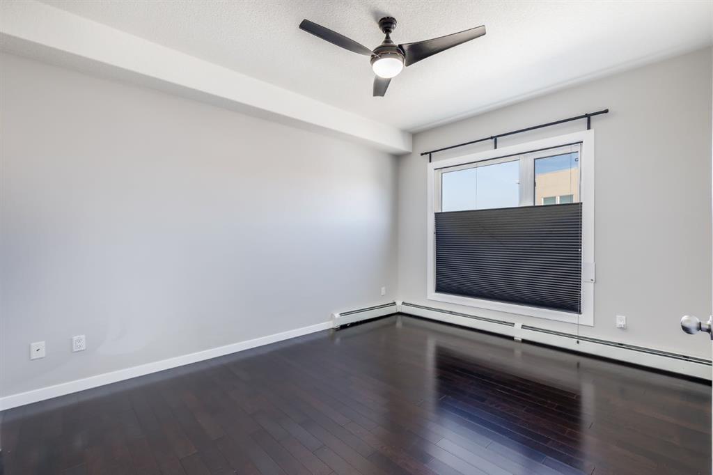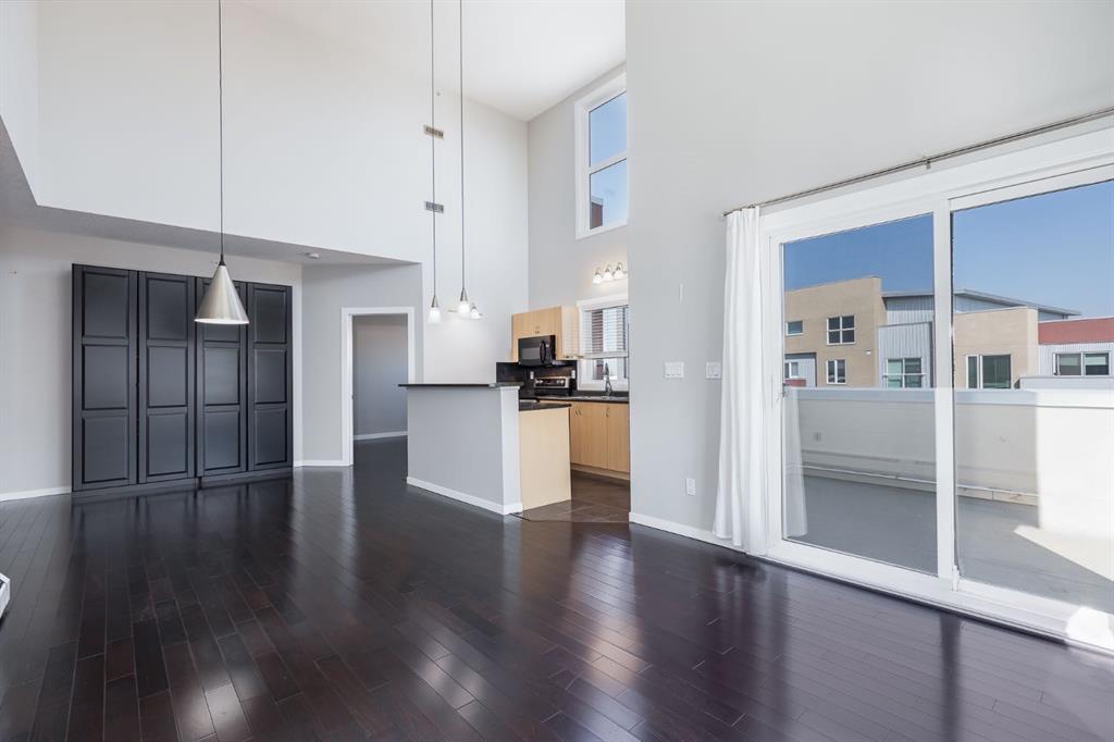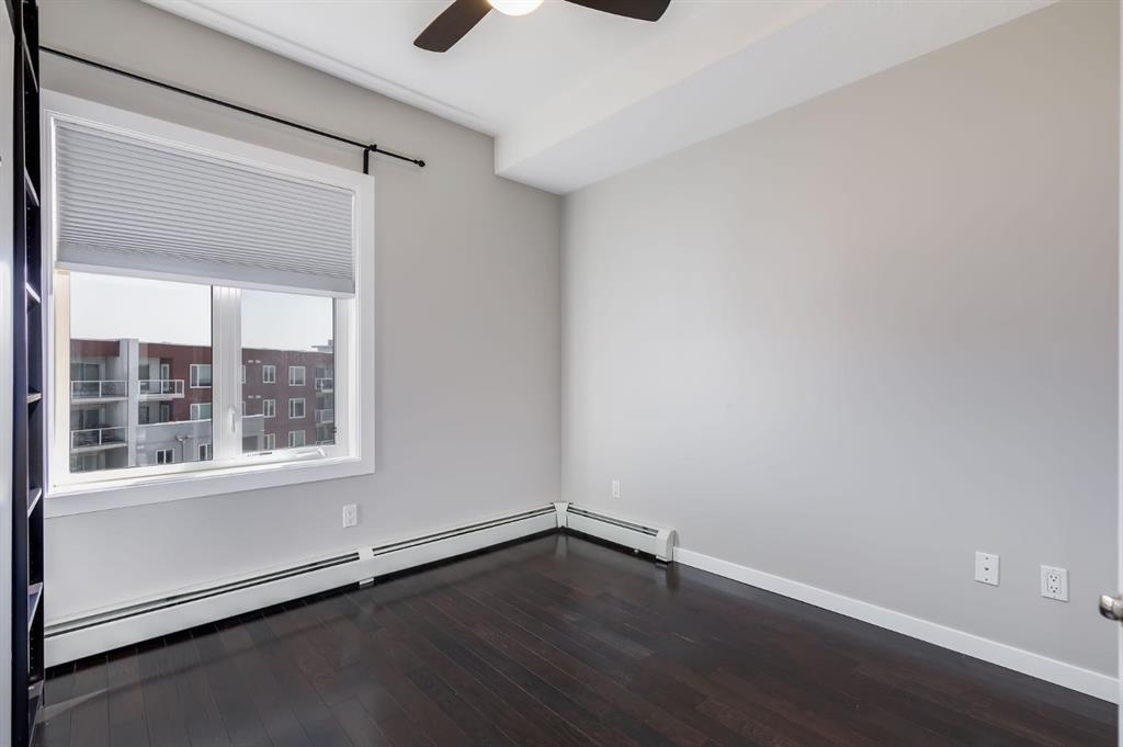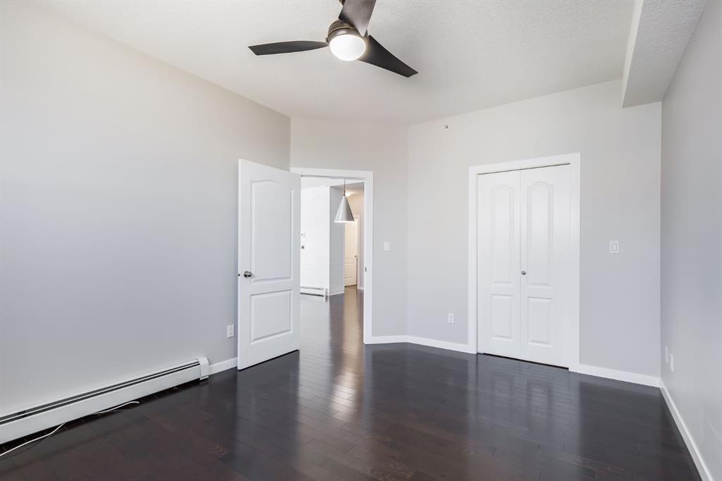 NEW PRICE NOV 3rd ** RARE OPPORTUNITY to own this Gorgeous Top Floor, Corner Unit with Soaring Cathedral Ceilings, Large Private Deck, and has an Underground Parking Stall. ** This Fantastic 2 Bedroom, 2 Bathroom Condo has 960 sqft of Amazing Living Space and is Ready for a QUICK POSSESSION. When you enter this Condo, you will immediately notice the Private Foyer that has a Large Storage Room off the entry. The HARDWOOD FLOORS welcome you to the Main area that has the EXPANSIVE 18' HIGH CATHEDRAL CEILING that allows lots of Natural Light from the Extra Windows. The Living Room has a great Shiplap Wall and Opens to the Oversized Deck that is private and has great space for your Patio Furniture. The Kitchen has a Large Island and Newer Stainless Steel Appliances, and opens to the Dining Area that has a Built in Wall Unit for extra storage. The Primary Bedroom is 14'1" x 11'3" and has a Walk through Closet to the 4 pc Ensuite. Bedroom 2 is 10'3" x 12'1", is located on the opposite end of the Condo and includes a Murphy Bed for your Guests with the 4 pc Main Bathroom steps away. There is also a Laundry Room. The Condo includes an Underground Parking Stall. This Great Complex is located beside Genesis Place which is perfect for Lifestyle Living if you are active and want swim, skate, work out in the Gym, or partake in the many classes provided. It is also close to Transportation, and Dining. Condo fees include all your utilities except electricity. Pets are allowed with Board Approval.
