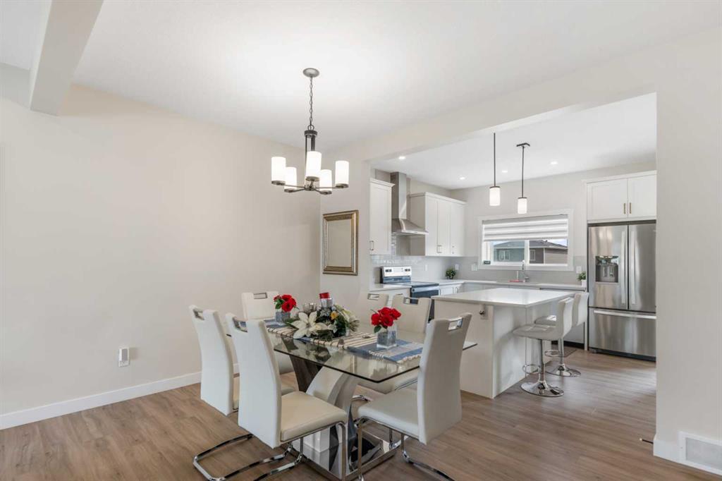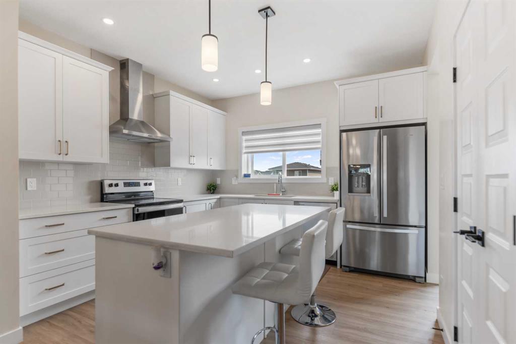 Airbnb Income Property – Fully Furnished Option Available! This 2024-built detached home in Bayview, Airdrie is already producing steady short-term rental income, making it an ideal turnkey investment opportunity or a first time Homebuyer.Offering 1,480 sq. ft. of modern living space with 3 bedrooms and 2.5 baths, this nearly new home combines elegant finishes, a functional layout, and excellent cash flow potential. The seller is willing to include all furnishings, allowing investors to step directly into a fully operational income-producing property from day one. Inside, the open-concept main floor features 9 ft knockdown ceilings, recessed lighting, and luxury vinyl plank flooring. The gourmet kitchen is equipped with quartz countertops, a central island with seating and premium stainless steel appliances including a built-in microwave and range hood. The spacious living and dining areas flow seamlessly to the backyard, perfect for entertaining. Upstairs, the primary suite offers a large window, walk-in closet, and 4-piece ensuite with a double vanity and walk-in shower. Two additional bedrooms, a 3-piece bath with soaking tub, and a convenient upper-floor laundry room complete the level. The sunshine basement offers excellent future potential with rough-in for a bathroom and layout for two additional bedrooms. Added features include a Smart Home Package with thermostat, video doorbell, and smart locks, plus a double car concrete pad ready for a future detached garage. Located in family-friendly Bayview, this home is just 10 minutes from CrossIron Mall and 15 minutes from Calgary International Airport, with schools, parks, and playgrounds nearby. A rare opportunity for both investors and homeowners seeking value, comfort, and long-term potential.