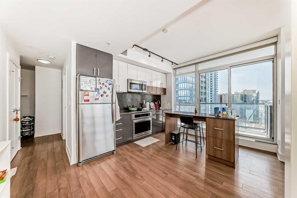 A true treasure in Calgary’s vibrant East Village! This pristine corner condo showcases sweeping, unobstructed views of the iconic Calgary Tower and downtown skyline—perfect for anyone who loves natural light and striking cityscapes. Featuring 2 generously sized bedrooms, a modern 4-piece bathroom, and a titled underground parking stall, this home combines stylish comfort with everyday convenience. Inside, you’ll be greeted by luxury vinyl plank flooring, sleek soft-close cabinetry, and quartz countertops, paired with stainless steel appliances. The open-concept design and floor-to-ceiling windows create an airy, sunlit living space that’s perfect for entertaining or simply unwinding. Residents enjoy access to premium amenities, including a fully equipped gym, yoga studio, rooftop lounge, party room, and more. Just steps from transit, shops, restaurants, and the scenic Bow River pathways, this condo offers unmatched value in one of the city’s most dynamic neighborhoods. Don’t miss out on the chance to call this exceptional property your new home!