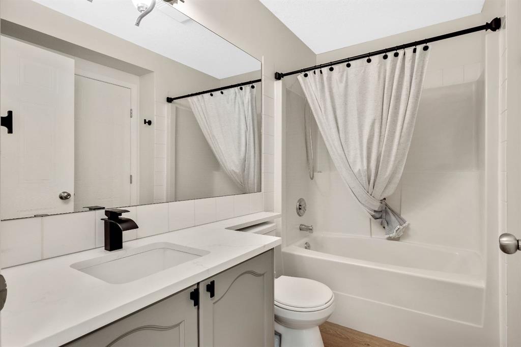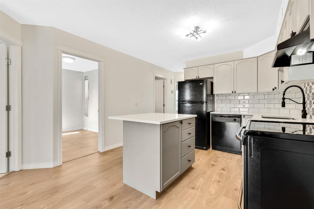 Step into this bright and welcoming condo featuring 2 spacious bedrooms and a versatile den—ideal for a home office or guest space with a beautifully updated full bathroom. Enjoy the modern kitchen with brand-new quartz countertops, refinished cupboards with soft close, and a stylish new backsplash. Fresh paint throughout the home complements the new vinyl plank flooring and carpet, giving the space a clean, contemporary feel. The living room has a corner gas fireplace and patio doors leading you out to the balcony with a new wood decking. Updates also include hot water tank, washer and dryer (2 years old), sinks, updated light fixtures in main areas and decking. This unit includes 2 parking spots, 1 right in front of the unit and 1 just to end east of the building. This move-in ready unit is perfect for first-time homebuyers or as a smart investment opportunity. Don't miss your chance to own this beautifully refreshed gem! Walking distance to schools, the hospital, arena and pool! Quick access to shopping and the highway should you commute to Calgary.