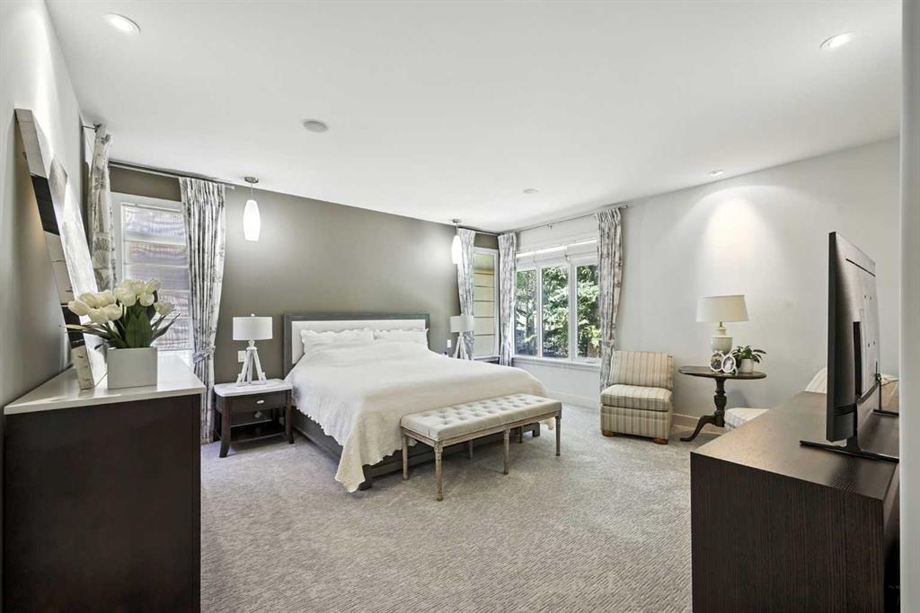 Gated community, bungalow with elevator, beautifully mountain viewed, sit on a large 10,000+ sqft lot in Springbank Hill! Close by to public and private schools, parks, playgrounds, shopping, C train andwestside rec centre. Living space of over 4,350 sqft, 2 decks, 2 private patios. Chef style kitchen with maple cabinets, under cabinet counter lighting, top of the line SUB-ZERO, WOLF and ASKO appliances, marble backsplash, high end granite countertops. Dining room with built in maplewood detailing, and living room featuring full height sandstone fireplace with stunning mountain views. Master bedroom come with luxury ensuite boasts a 5 pc ensuite, soaker tub, custom steam shower, and infloor heating. Additional good sized bedroom or study with access to private backyard. Another 3 pieces bathroom and laundry room complete the main floor. Lower walk out level come with radiant in floor heating, two spacious bedrooms, family area with fireplace plus wet bar. Oversized (650sqft) double garage is heated and completed with epoxy floors. Additional upgrades and features include: built-in speakers throughout, cedar soffits, extensive professionally done landscaping with irrigation, hydronic in-floor heating, custom built-ins, solidcore doors, aluminum clad windows,kinetico water filtration system, radon gas removal system.