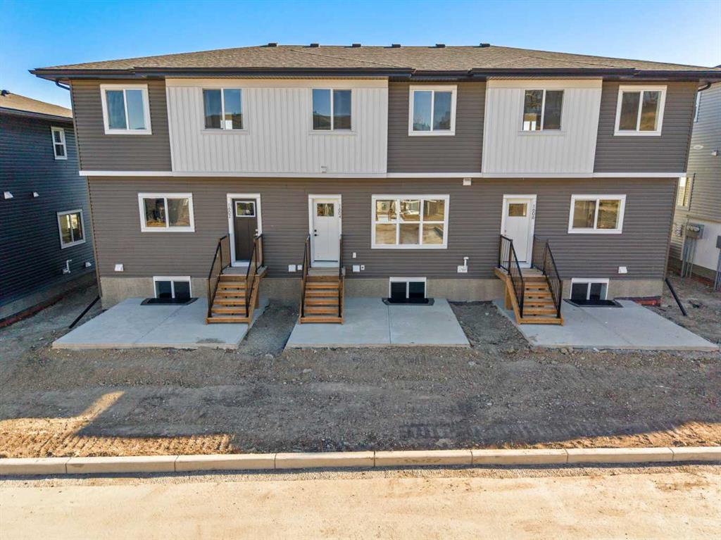 *VISIT THE RENOVA SHOWHOME 525 River Heights Drive TO TOUR THE DESIGN BY APPOINTMENT ONLY* Welcome to the newly built #1604, 525 River Heights Drive. This townhome features a west-facing backyard that offers the feel of a single-family yard while still providing the convenience of lawn maintenance and upkeep through condo living. Inside, the main floor is bright and open, with a modern layout designed for both style and function. The contemporary kitchen is equipped with quartz countertops, matte black hardware, Whirlpool stainless steel appliances, soft-close cabinetry, and a central island with seating—ideal for casual meals or entertaining. The kitchen flows seamlessly into the dining and living areas, where large windows and luxury flooring create a welcoming atmosphere. A powder room and a dedicated mudroom off the back entrance add practicality to everyday living. Upstairs, the primary bedroom includes a walk-in closet and a private three-piece ensuite with a walk in shower. Two additional bedrooms provide versatile space for children, guests, or a home office. A four-piece bathroom and a centrally located laundry area complete the upper floor with added convenience. The unfinished basement offers potential for future development, extra storage, or a layout tailored to your needs. Energy-efficient features such as triple-pane windows, a high-efficiency HVAC system, and an HRV unit support year-round comfort. Outdoors, you can relax on your private rear patio or enjoy a quiet morning on the covered front porch. Two parking stalls are included, and with landscaping and snow removal taken care of, this property is truly low maintenance. Situated in the well-established community of Riversong, you are close to schools, parks, walking paths, and the Spray Lake Sawmills Family Sports Centre. Quick access to Highway 22 makes both Calgary and the mountains easy to reach. With quality finishes, a thoughtful design, and a vibrant neighborhood, this home offers comfort and convenience in equal measure. To experience this layout in person, visit the showhome at 525 River Heights Drive for a tour of the design. Please note that photos are taken from the showhome and may not reflect this property, as it is still under construction.