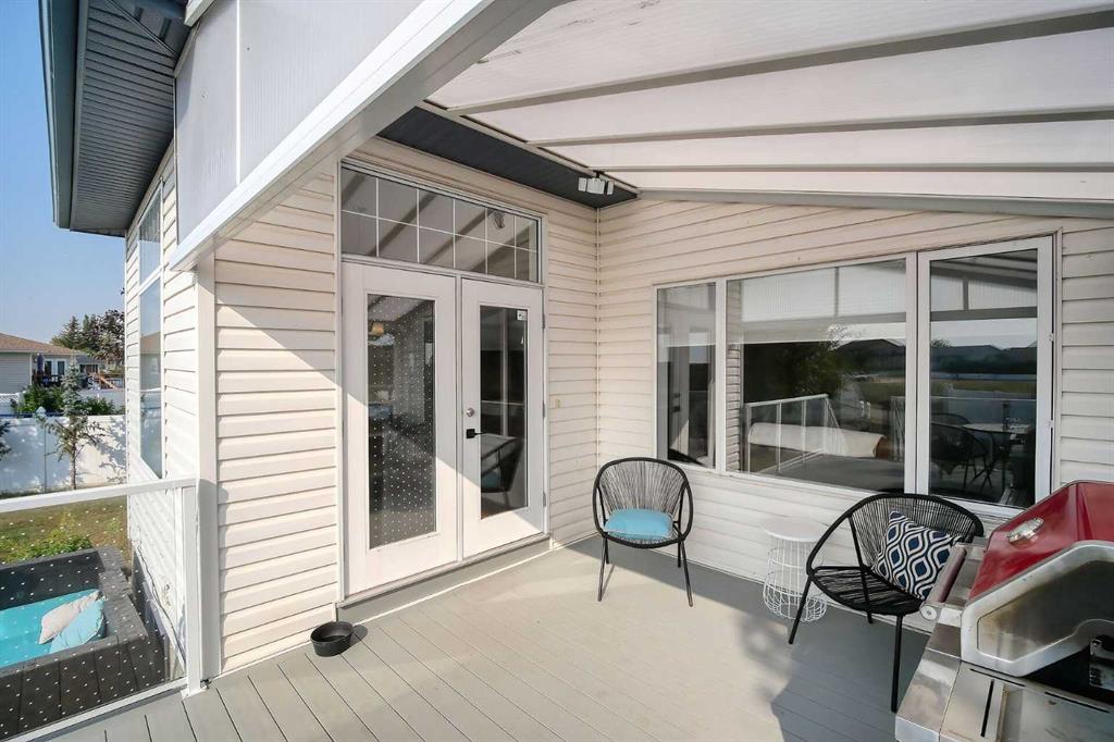 Top-of-the-line home packed with EXTRAS! Step into a grand foyer that opens to soaring ceilings and an impressive open-concept main floor. At the heart of the home is a bright, modern kitchen with PREMIUM appliances: Double Wolf Wall Ovens, an Induction Cooktop, UNDER COUNTER built-in microwave, Miele dishwasher, and a Sub-Zero Refrigerator. Thick Granite counters span the space, including a large breakfast bar with sink and garburator, plus an additional sink and garburator by the windows. Custom cabinetry offers abundant storage throughout. The spacious dining area is wrapped in windows, showcasing sweeping prairie views—perfect for entertaining. A cozy gas fireplace anchors the living room, while remote-control blinds add convenience. From the dining room, step out to a covered deck with glass railing for seamless indoor-outdoor living. Rounding out the main floor are a stylish powder room, a well-planned laundry, and a practical mudroom.Up the first landing, you’ll find a bright bonus room with soaring ceilings and oversized windows—ideal for movie nights or a kids’ play zone. On the next level are two generously sized bedrooms with large closets. The primary suite is a true retreat with prairie views, a spacious walk-in closet and a four-piece ensuite featuring custom lighting—even in the shower, low flow toilet and heated floor. The fully finished basement offers in-floor heating, a spacious rec room with a cozy gas fireplace and a flexible area currently used as a fourth bedroom.This level also includes a full four-piece bathroom. The oversized double garage is fully finished with epoxy floors, drywall, insulation, and in-floor heat. Outside, the massive 10,000 sq. ft. yard is fully fenced with low-maintenance vinyl, RV parking, and sweeping farm views; there may even be enough room for an additional garage. Additional features include hardwood and premium carpet throughout, central air conditioning, underground sprinklers, RO systems, a water softener, LED lighting (everywhere), built-in vacuum system and even a European plug for specialty appliances. This Layne Home is solidly built, well maintained and truly move-in ready.