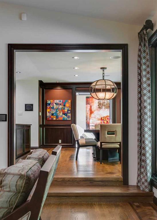 Welcome to the epitome of luxury living in the prestigious community of Eagle Ridge. This exceptional, high-end bungalow rests gracefully on a sprawling double lot, offering an unmatched level of sophistication and elegance. With meticulous attention to detail and no expense spared, this home is a true work of art. As you approach the residence nestled within the curve of the cul-de-sac, the picturesque, park-like setting immediately sets the tone. Step through the hand-chiseled walnut doors into a grand foyer that hints at the splendor beyond. The main rooms are nothing short of magnificent—expansive in scale and exquisite in finish. Rich hardwood with parquet detailing, ledgestone and ornate metal fireplace surrounds, floor-to-ceiling windows framing the lush gardens, and custom recessed lighting all blend seamlessly with smart home technology and advanced security features. At the heart of this extraordinary home lies the chef-inspired kitchen, a perfect balance of function and flair. Designed for the most discerning culinary enthusiast, it features a walk-in cooler, gas cooktop, double ovens, and commercial-grade appliances. Whether hosting an elegant soirée or preparing an intimate dinner, this kitchen delivers both performance and beauty. A variety of inviting spaces allow for relaxation or entertainment: a sun-drenched family room, a sumptuous den complete with hotel-style bar and brass foot rail, a theatre room with 108” screen, and a home gym with shower and sauna. The sleeping quarters are equally impressive. Each of the five generous bedrooms offers the ultimate in comfort and privacy. The primary suite is a sanctuary, featuring a sunken lounge area, cozy fireplace, walk-in closet, and spa-inspired ensuite. Every detail contributes to a sense of calm sophistication. Outside, the meticulously manicured grounds create a private outdoor haven. Stroll along enchanting garden pathways or simply enjoy the serenity of the landscaped oasis that surrounds you—a perfect backdrop for entertaining or quiet reflection. Future Development Potential - This extraordinary property sits on two full lots, offering exceptional flexibility for the future. While the existing home is an architectural gem and not a teardown, the unique double-lot configuration provides the rare opportunity to divide the land should one choose to explore redevelopment potential down the road. It’s the best of both worlds: a timeless estate today, and an investment in tomorrow. Located in the exclusive enclave of Eagle Ridge, surrounded by other distinguished residences, this property stands as a symbol of achievement and refined taste. With its extraordinary features, unparalleled craftsmanship, and prestigious setting, it represents a once-in-a-lifetime opportunity to own one of Calgary’s most exceptional homes.