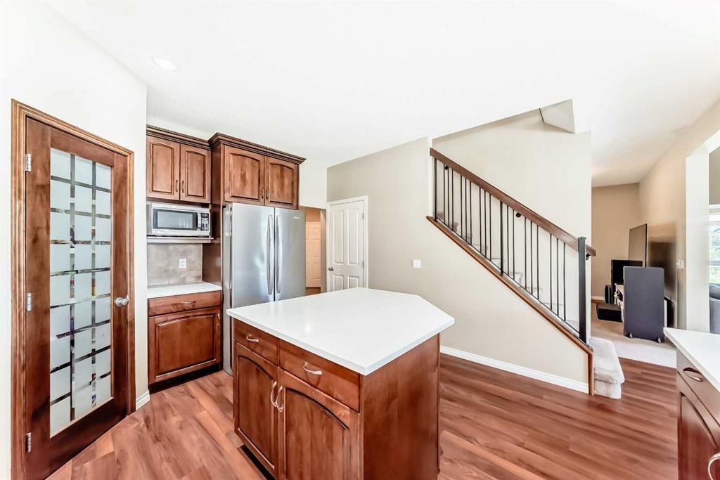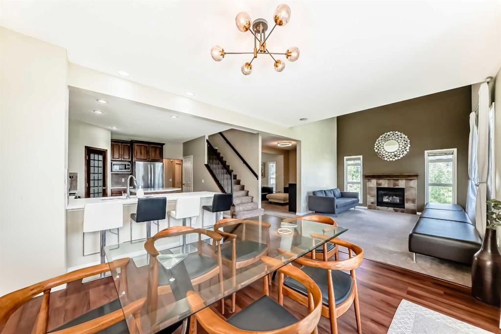 This charming two-story home with a fully developed walkout basement blends tranquility, beauty, and convenience in one exceptional package. Perfectly situated on a quiet corner lot with no rear neighbours, it offers uninterrupted pond views and a serene atmosphere you’ll love coming home to. This double garage has a heater that provides year-round comfort, and recent updates include new roof shingles (Nov 2023) for peace of mind. Inside, the main floor welcomes you with a formal living and dining room—perfect for gatherings—alongside a convenient laundry room and 2-piece bath. The spacious kitchen features quartz countertops (2021), generous storage, and a bright breakfast nook overlooking the pond. Luxury vinyl plank flooring (2021) runs throughout much of the main level, adding both style and durability. Step out onto the deck to savour your morning coffee or relax in the evening. The open-to-below family room, anchored by a cozy fireplace, exudes warmth and character. Upstairs, a versatile loft overlooks the family room, complementing three bedrooms, including a primary suite with a walk-in closet, spa-inspired 4-piece ensuite with a soaker tub, and newer carpet (2021). A 3-piece main bath completes this level. The fully finished walkout basement is designed for entertaining, offering a large rec room (pool table included), wet bar, 3-piece bath, and a fourth bedroom—plus direct access to the backyard. All of this within walking distance to Chestermere Lake, an elementary school, and a junior high. Just 20 minutes to downtown Calgary, you can enjoy city access without sacrificing peace and privacy. Don’t miss the 3-D Tour to experience the beauty and views for yourself!