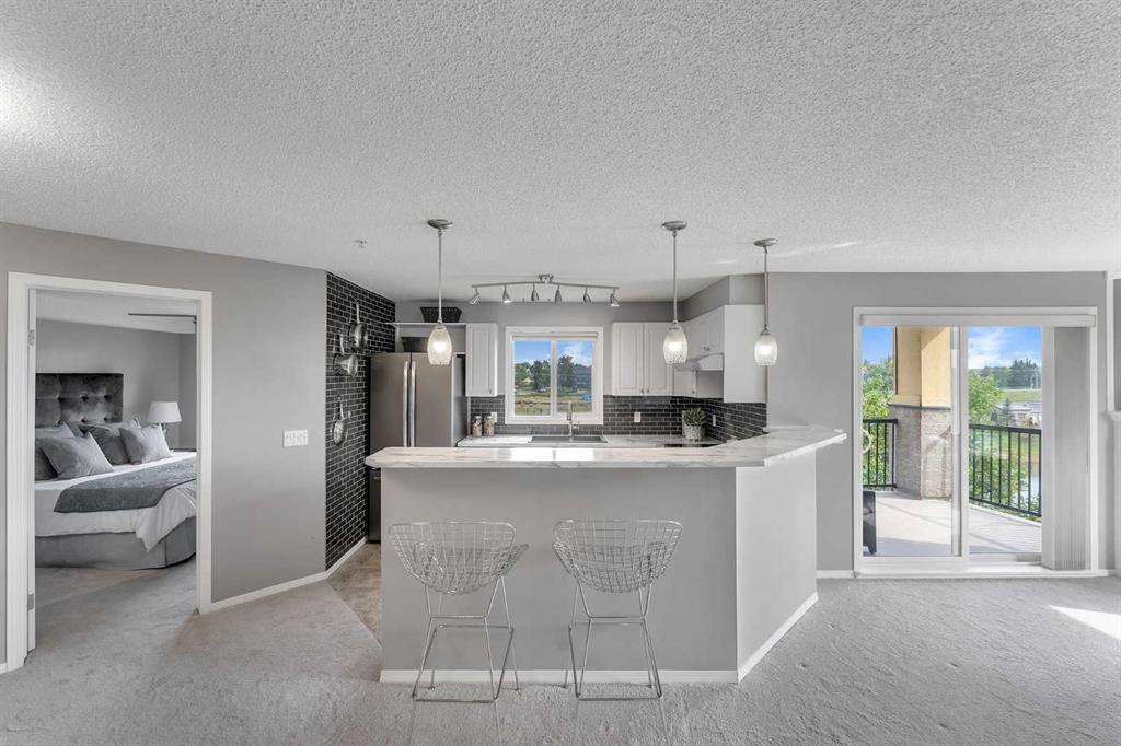 Picture coming home to this bright, open concept condo, the perfect retreat after a long day. You will notice the large entry way upon entering and the abundance of light pouring in. This condo has a large open concept kitchen, perfect for cooking at home and lots of space for dining and entertaining guests. You also have 2 large bedrooms and 2 bathrooms on opposite sites of the home, thoughtfully positioned on opposite sides of the unit for optimal privacy. This condo truly has it all! Brand NEW CARPET throughout, FRESH PAINT, bright open concept living space, TITLED UNDERGROUND PARKING and a large CORNER BALCONY over looking the pond. Located in the downtown area of Airdrie, you'll love the convenience of being just steps away from coffee shops, grocery stores, gyms, schools, restaurants, and more. Don’t miss your chance to own this turnkey home in a prime location.