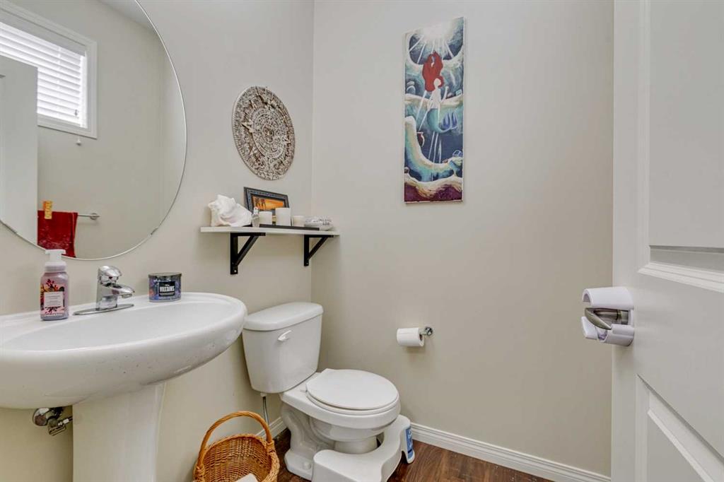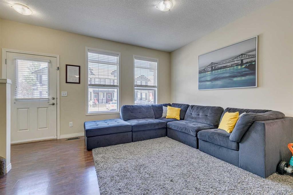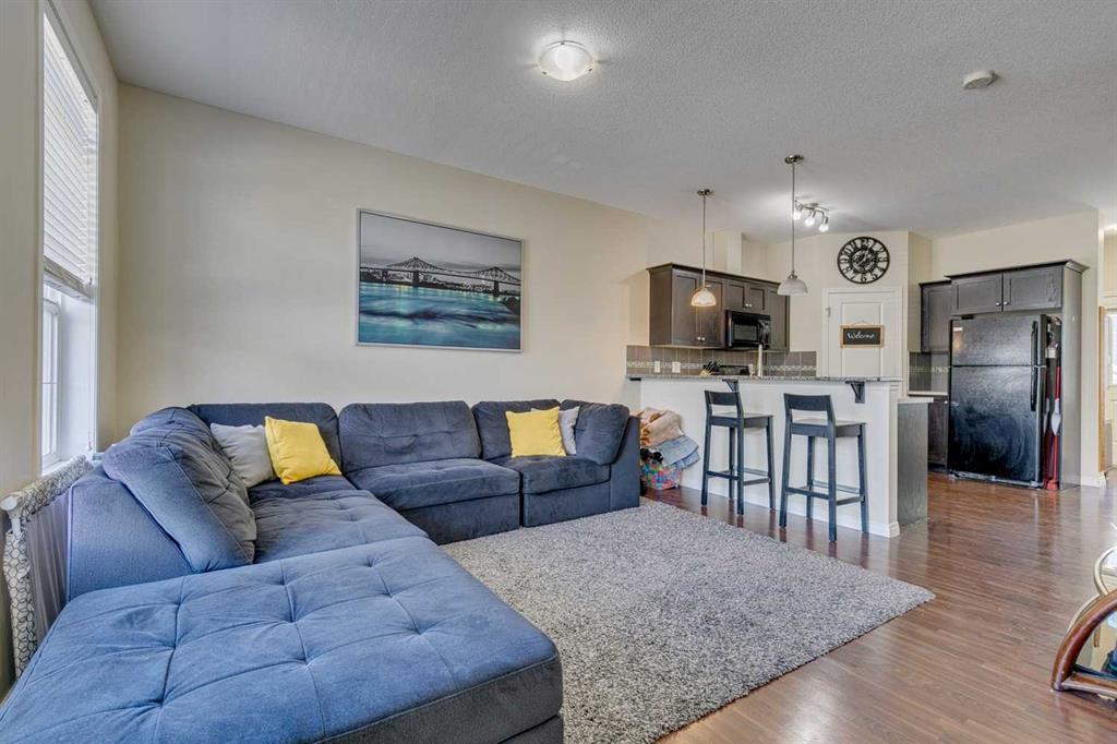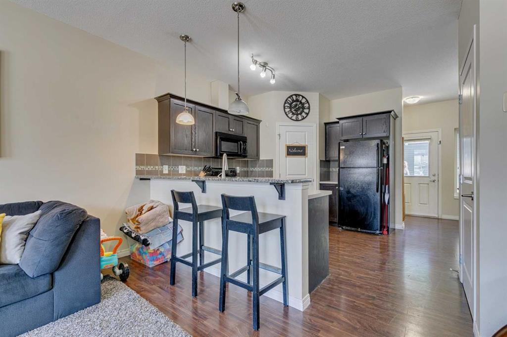 WOW! FULLY DEVELOPED BASMENT AND LOW condo fees! Welcome to this charming and well-kept townhome in the heart of Williamstown—a peaceful, family-friendly community surrounded by parks, schools, and pathways. This two-story home features three bedrooms and 1.5 bathrooms, offering the perfect balance of comfort and functionality. The main floor greets you with a bright and spacious living area, accented by large windows and durable laminate flooring. The kitchen is thoughtfully designed with dark cabinetry, a corner pantry, and an eat-up peninsula, seamlessly connecting to the dining room and 2-piece powder room. Upstairs, you’ll find three generous bedrooms and a full bathroom with convenient cheater access from the primary suite, which also includes a walk-in closet. The fully developed basement adds even more living space, complete with a large recreation room, plenty of storage, a laundry area, and rough-in plumbing for a future bathroom. Step outside to enjoy your private back deck and common yard space—perfect for relaxing or entertaining. This pet-friendly complex (with board approval for 2 pets) is ideal for first-time buyers, downsizers, or investors alike. You also have 2 parking stalls, one assigned and one common. Don’t miss this opportunity to own a lovely home in one of Airdrie’s most desirable neighborhoods.