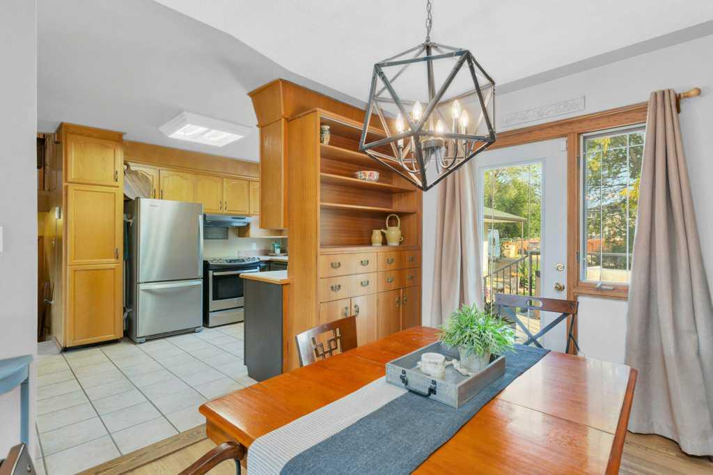 Nestled just steps away from schools, the arena, and historic downtown Lacombe, this inviting home offers the perfect combination of mid-century charm and thoughtful, modern updates. From the moment you arrive, you’ll appreciate the curb appeal and care that’s gone into maintaining this property over the years. Inside, you’ll be greeted by the warmth of REFINISHED ORIGINAL HARDWOOD FLOORS and classic MAHOGANY doors and trim, which showcase the character of this 1961 home. Built-in shelving and drawers in the dining area add personality and extra storage while keeping that mid-century feel. The kitchen is light and bright with plenty of cabinets, a dedicated pantry cupboard, and a window over the sink that frames views of the mature, private yard. HEATED TILE FLOORS in the kitchen and lower entry make this space feel extra cozy during Alberta’s cooler months! This home is spacious, offering 5 BEDROOMS and 2 BATHROOMS, making it ideal for growing families. Three bedrooms are found on the upper level along with a full bath (easily updated to include a shower if desired), while the lower levels provide two additional bedrooms, a second full bathroom with a TILE SHOWER, and a generously sized family room — perfect for movie nights, kids’ play space, or a home gym. Over the years, LIGHTING, ELECTRICAL, AND MECHANICAL SYSTEMS have been upgraded, along with NEWER WINDOWS & DOORS, ROOF, DECK & RAILING, EAVES (2024), NEWER APPLIANCES (approx. 5 yrs) NEW INSULATION and even a NEW SEWER LINE with BACKFLOW VALVE, so you can enjoy a home that’s been cared for from top to bottom. Step outside and take in the impressive 75’ x 160’ LOT! There’s room to park an RV or boat, space for kids and pets to play, and even room to garden or add outdoor features if you wish. The oversized 32’ x 26’ DETACHED GARAGE is only 15 years old and offers a 10’ DOOR for trucks or toys, plus a gas line for future heat. Thoughtful design means the garage overhang keeps rain and snow off the walkway between the garage and the house, making winter days a little easier. The home also has a LONG DRIVEWAY and CARPORT along the side — great for multiple vehicles. The current owners considered converting the carport area into a sitting room or sunroom, giving the next owners a chance to create a beautiful transition space between indoors and outdoors. The yard is PARTIALLY FENCED with a tall privacy fence on the one side, and the garage is perfectly positioned — creating a private backyard retreat. Enjoy warm summer evenings around the FIREPIT, or entertain friends on the LARGE DECK just off the dining room. This is a home that truly offers the best of both worlds — vintage charm, modern comfort, and a location that’s hard to beat. Surrounded by other character homes on a quiet, friendly street and just a short stroll to Lacombe’s downtown shops, cafes, schools, and recreation, you’ll love being part of this welcoming community. All that’s left to do is move in and enjoy!