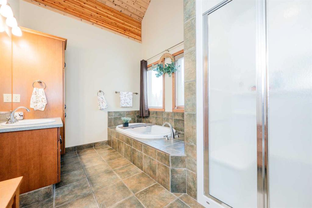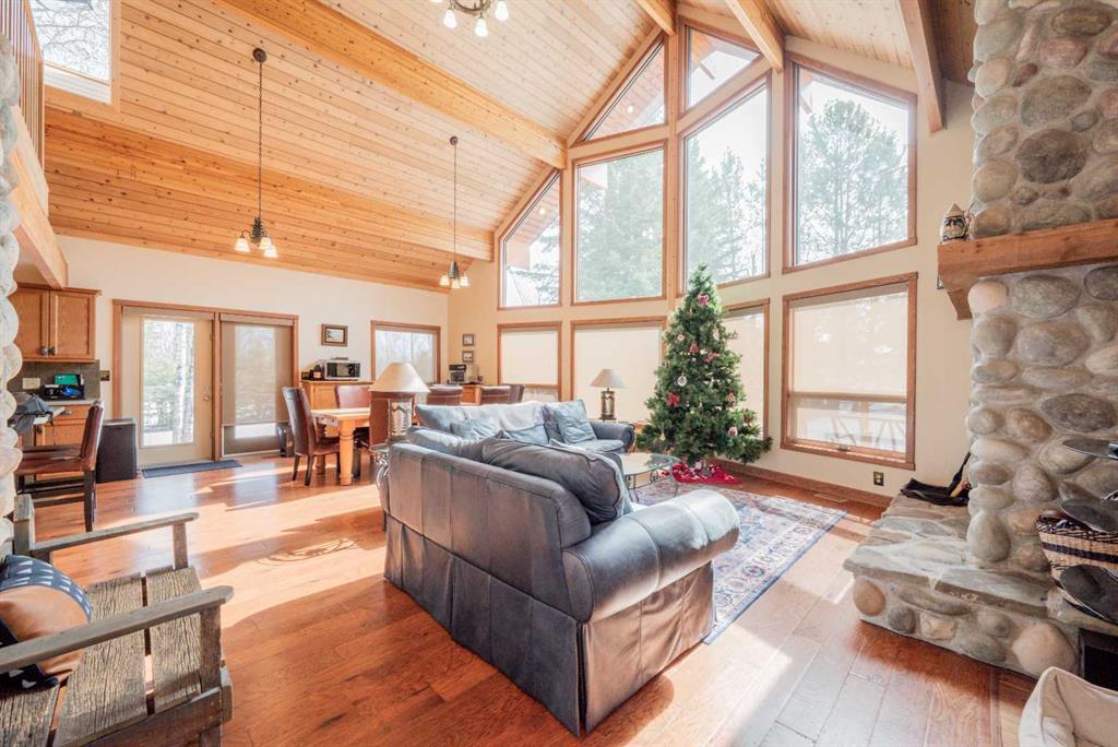 You will be amazed when you drive up the driveway!!!! This Beautiful Linwood Custom Cedar Home is located on a deeded lot in the Narrows subdivision. It has access to Sturgeon Lake, the Greenview Golf Course & unlimited green zone recreation. Work from home, commute, retire, or just use weekends & holidays. The full-time residential community is well maintained with its own boat launch & there is a school bus for your children. You can drive your golf cart to the course or visit a neighbour, use your snow machine to go ice fishing, or just sit around the campfire with family & friends. The Fairmont building plan was engineered by Linwood; all the framing material was shipped from the Lower Vancouver Mainland, journeymen carpenters were used, quality craftsmanship & materials were used throughout the entire building. The Prow front vaulted ceiling & large windows that allow in lots of natural light. The main floor has a Large Entrance, Open beam living room with a rock face fireplace. The open plan kitchen is part of the living space and is a focal point for family gatherings. The home sits on one lot with a detached In-floor heated double car garage that boasts a tiled back room storage area, and a large loft above for sewing and crafts. The property is fully landscaped with mature spruce & pine trees. There is an exposed aggregate retaining wall, stamped concrete walks, and a large cedar deck. Features: Linwood Ultra materials package 1 ½ in. x 14 ¾ in. roof joists at 24 in. center Tongue & groove plywood flooring & roofing Fir glue-lam beams in all rooms 1 x 6 cedar lap liner 50 year FG shingles Dual pane solar gain, low (E) argon windows ¾ in. tongue & groove cedar siding Tempered glass deck railing Air conditioned, dual electrical panels for a backup generator, heated concrete basement with backup electrical baseboard heaters, RSF Opal wood fireplace, Five Star gas stove, Asko dishwasher, French door refrigerator, Laundry Center, Custom Lighting inside & outside, Window shades, Wood Shed. Book your showing today!!!