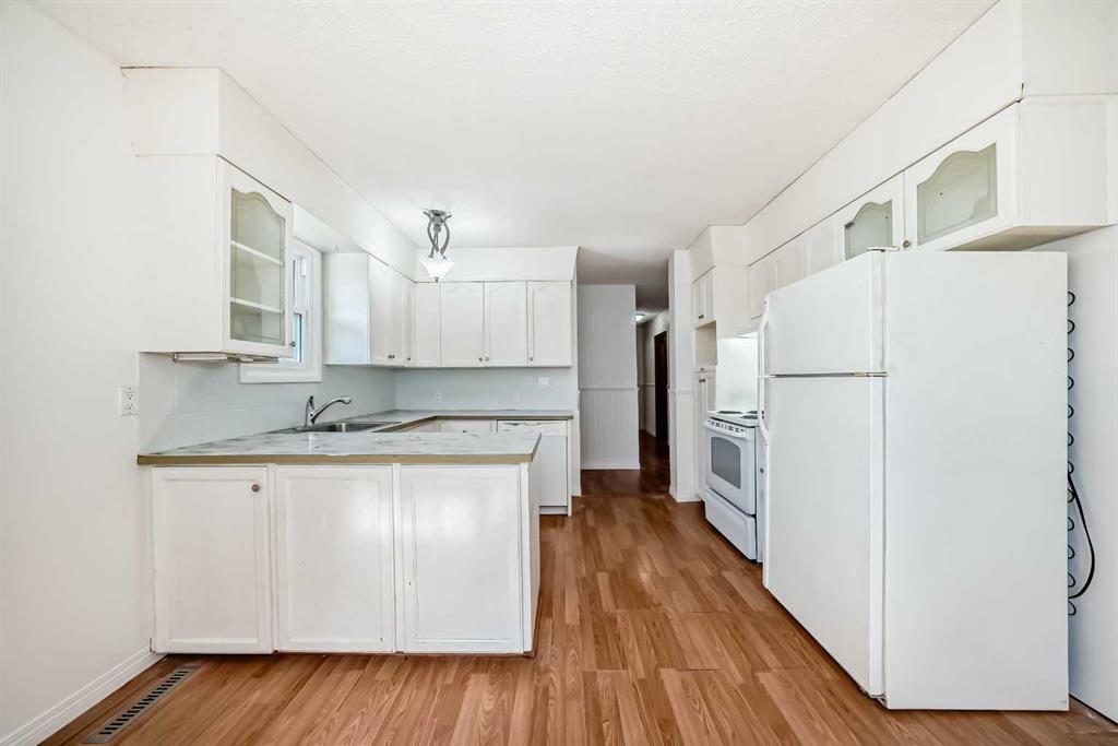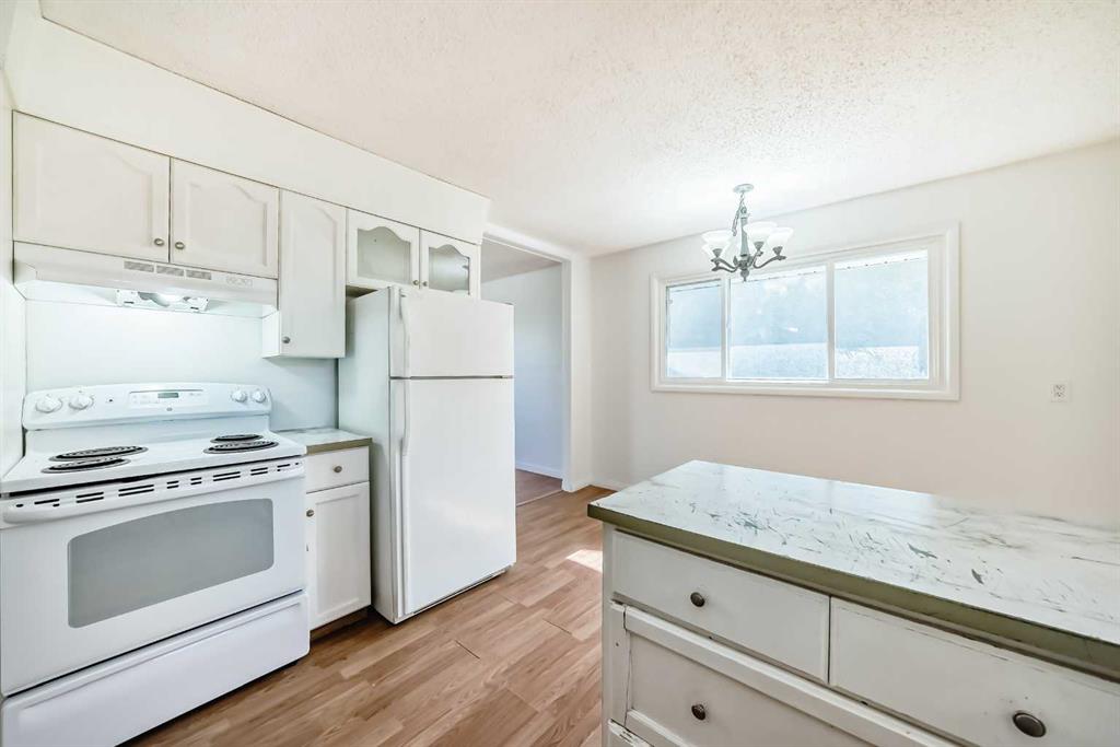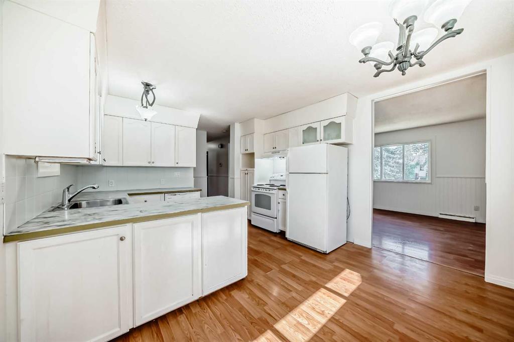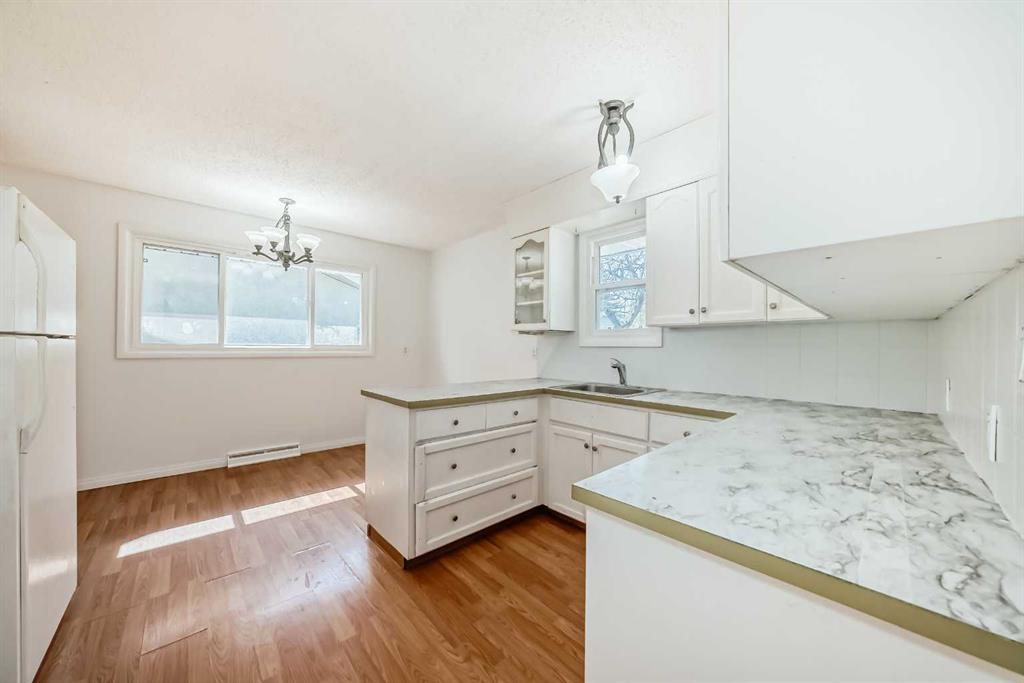 This affordable bungalow is ideally situated close to all amenities, just minutes from the restaurants of 17th Avenue, Sobeys, and the C-Train. With easy access to Stoney Trail, Memorial Drive, and the number one highway, the location is both convenient and desirable. Nestled on a quiet tree-lined street, this home is a must to see. The main floor features a bright living and dining room combination that flows into a spacious kitchen with plenty of cabinets, generous counter space, and an L-shaped island that adds even more functionality. Laminate flooring runs throughout the main level, which has been freshly painted. The four-piece bathroom has seen some updates, and the original three-bedroom layout has been converted to two bedrooms, creating a large master bedroom with space for a sitting area. Solid pine doors add a warm touch to the upper level. The lower level is partially developed with an additional bedroom and a recreation room. An energy-efficient furnace, and the shingles were replaced within the last five years. A separate back entrance offers the potential for a future illegal suite. The backyard is fully landscaped and fenced, with space for RV parking and a covered outdoor kitchen, perfect for entertaining. A single detached garage with an electric garage door opener. Don't miss this great investment opportunity.