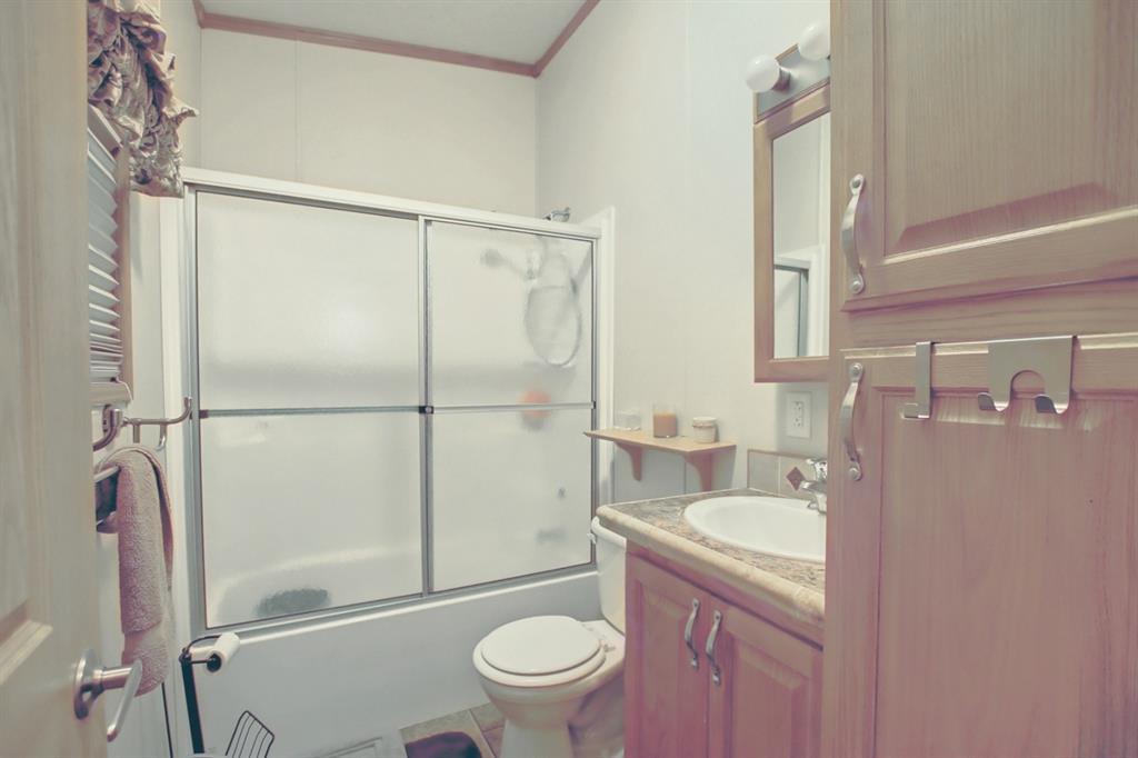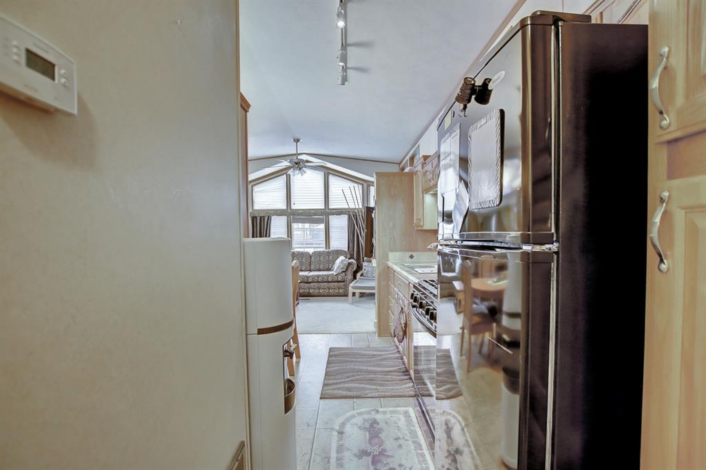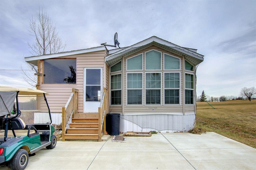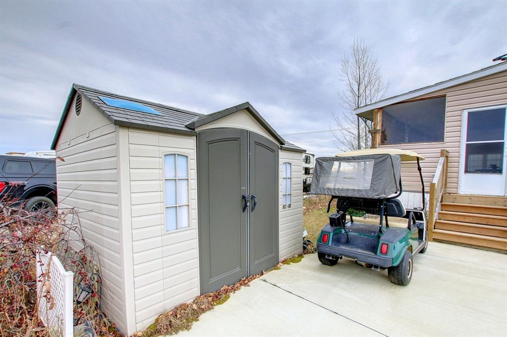Home away from Home Year round living at Pine Lake with w/indoor pool, hottub, fitness room, pro-shop, lakefront lounge/patio and pro-shop. 18 hole golf course out the back door plus all the fishing & water-sports. Condo fees are low, which include lawn and snow care, sewer, water, garbage , and access to the resort amenities ,activities. & water sports. This 2 bathroom 1 bath park model has an open concept. The kitchen features gas stove, built-in china cabinet, pantry, lots of cupboards and a spacious dining room. Living room features lots of natural light, ceiling fan & patio doors leading to a covered deck protected from wind, rain & snow with natural gas BBQing, plenty of space for entertaining your quests during those long summer evenings. Storage shed, fire pit, concrete parking pad and full landscaped. This well kept property also includes a golf cart!!