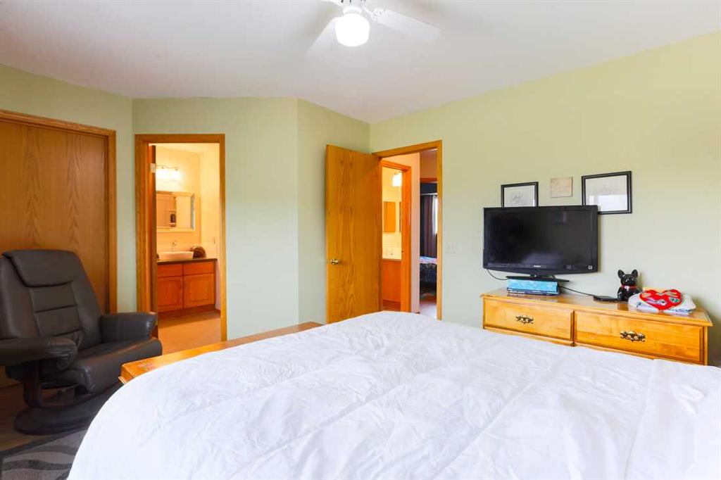 Looking for a beautiful family home in a quiet neighborhood? This one checks all the boxes! This spacious 2 Storey is situated on a massive lot in the growing town of Crossfield (30 minute commute to Calgary 15 to Airdrie). There are no neighbors behind as this home backs onto veterans park, which is great for Disc Golf in the summer and tobogganing in the winter. It's also close to the ball diamonds and a 5 minute walk to the towns Schools. The home also boasts a beautiful interior with Vaulted ceilings, hardwood floors and big windows for great natural light. Entering the home you'll see the spacious sitting room with Vaulted ceilings. It also transitions into the formal dining room making this a great space for entertaining. Next you'll enter the kitchen with newer SS appliances and an eating area the faces the park. The main floor also features a large second living room with a cozy fire place. A really great space to relax with the family at the end of the day. There is also a 2 pc bathroom and laundry room on the main floor. Upstairs you will find the 3 bedrooms. The primary bedroom is complete with a walk-in closet and 3pc ensuite bath. The other 2 bedrooms are good sized and great for kids rooms or a home office. The basement is quite spacious with it's own 3pc bathroom and can be tweaked to fit your needs. Right now it is set up as the perfect guest sweet, but it could easily be transformed into another living room/play area, theatre or office. The large utility room also adds lots of great extra storage. The home also features a heated double garage and the size of the lot with alley access lends itself to the possibility of a second garage or right now is set up for RV parking. Book your showing today.