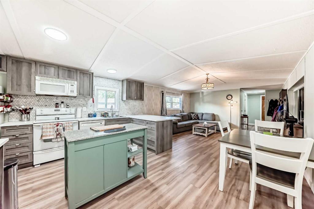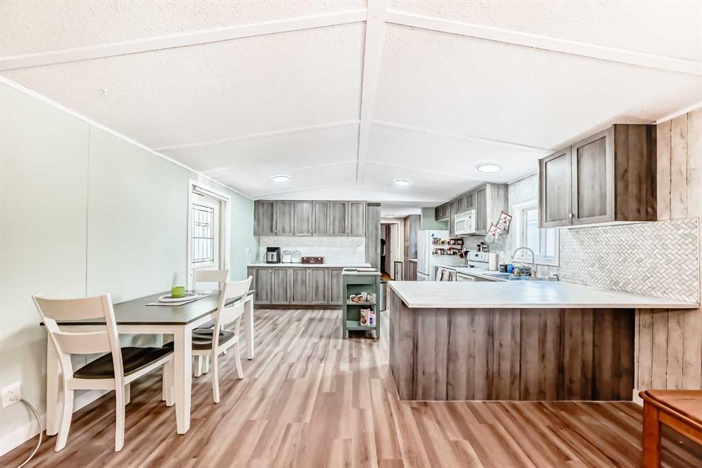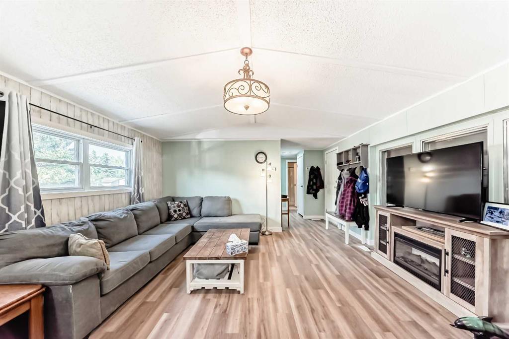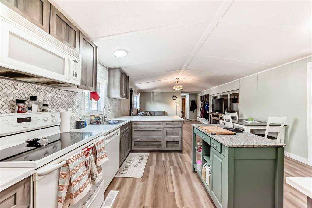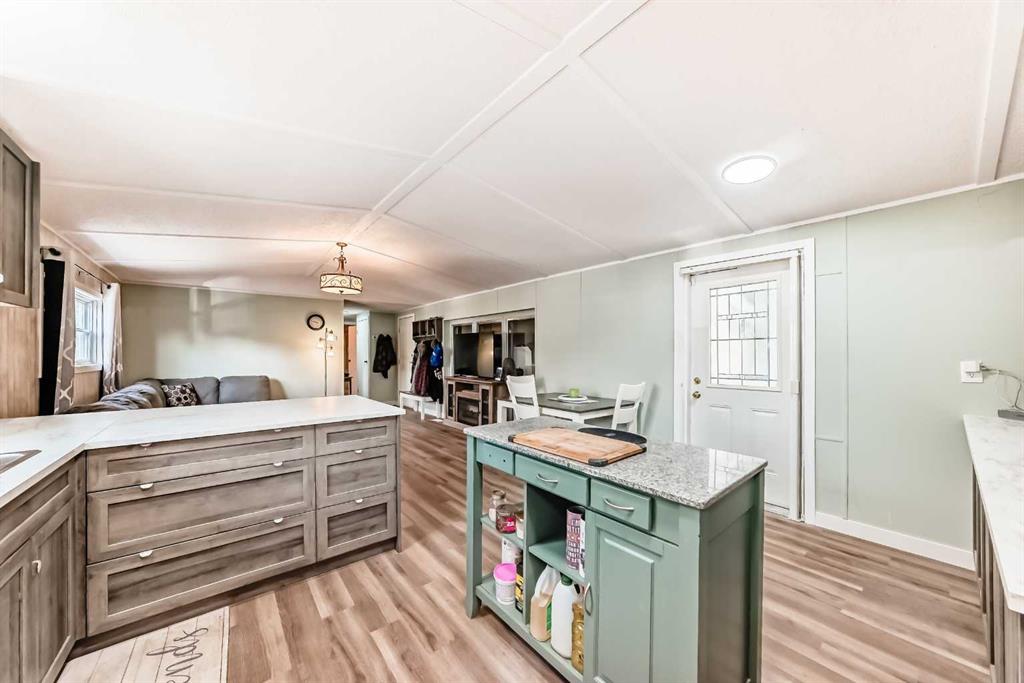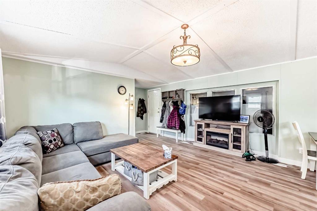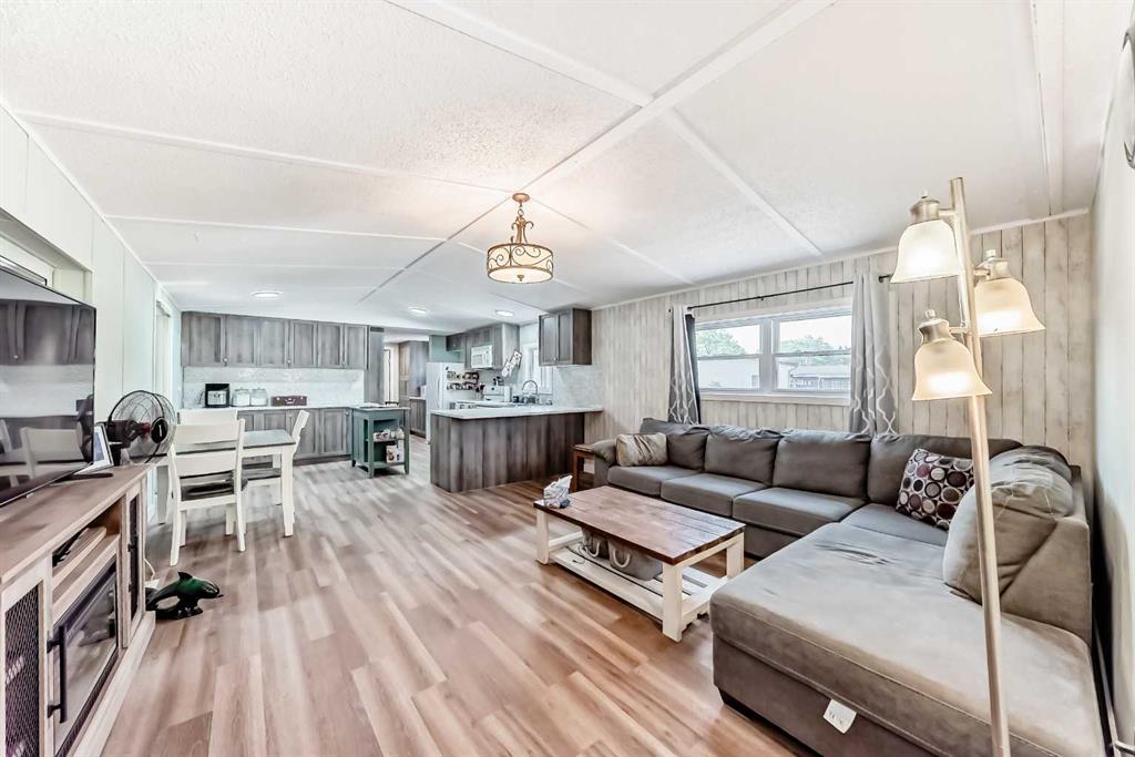 If you're looking for WOW factor at an affordable price, this home is it. Located in one of the most desirable adult (16+) mobile home communities in Calgary, this 3 bed/2 bath home with heated addition has been updated; most of the interior upgrades have been done in the last 5 years. When you enter the home, you'll note the open living space that's perfect for family gatherings or entertaining. Always short of storage space in your kitchen? This well planned kitchen has cupboard space to spare. There is a large primary bedroom at one end of the home with a 4 piece ensuite bath. At the other end of the home are two more bedrooms and another 4 piece bath. The heated addition makes a great flex xpace for storage or workshop. Outside you'll appreciate the built in storage shed and a 2nd storage shed at the back of the home. This home has been well maintained over the years with big ticket items such as new vinyl plank flooring, vinyl windows in the past 5 years, hot water tank (2025), furnace (2024) and freshly painted celiling. Lot fee is $820/month which includes landscaping, snow removal, waste and recycling services. Pet restrictions are 2 pets per home, dogs must be less than 15 inches tall at the shoulder. Parkridge Estates has an active community association ($25/year) with many regular events for residents such as weekly pub night, coffee meetings and jam sessions.