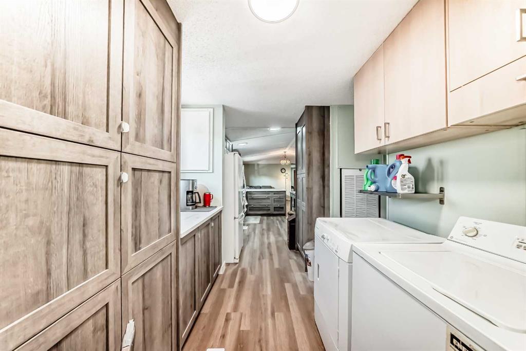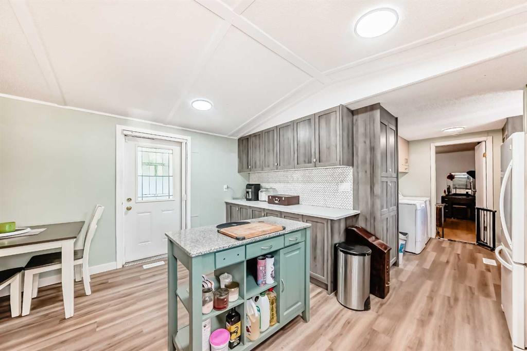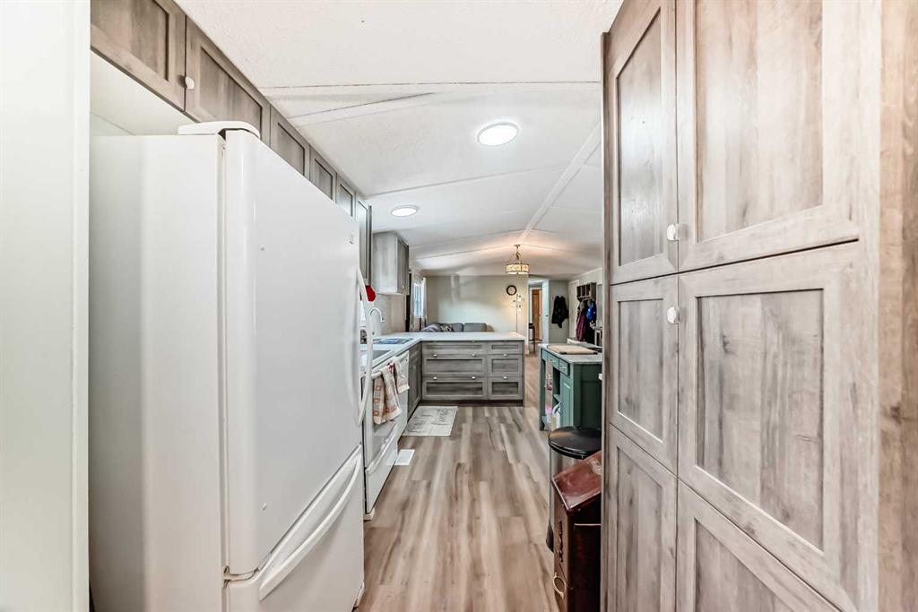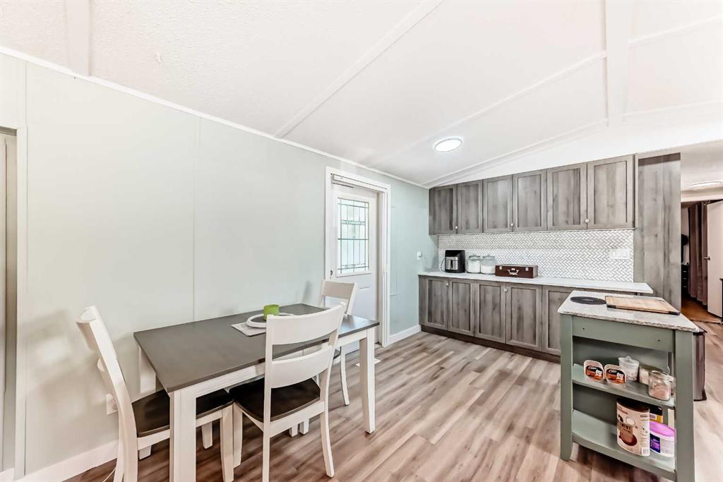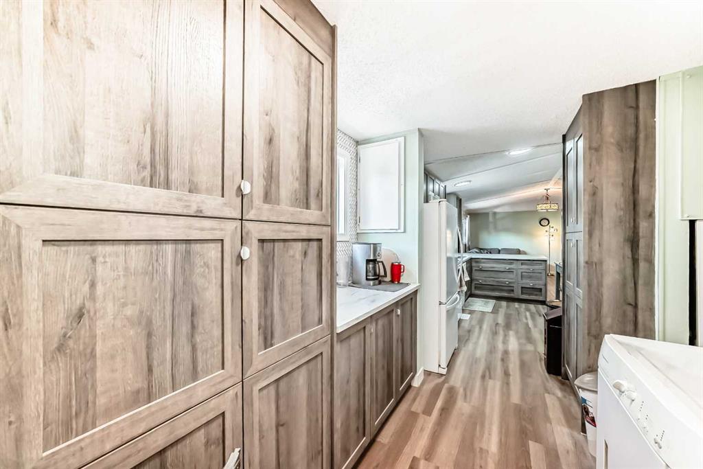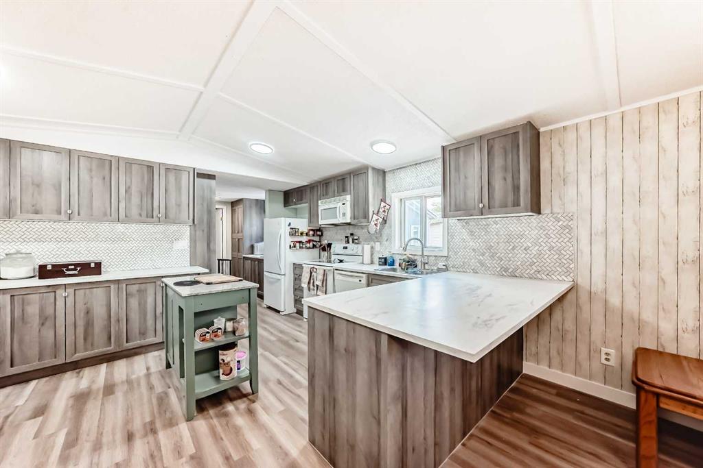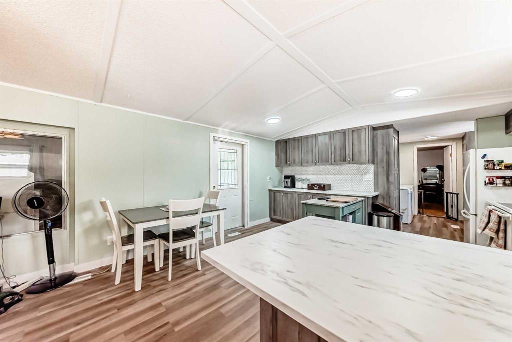 If you're looking for WOW factor at an affordable price, this home is it. Located in one of the most desirable adult (16+) mobile home communities in Calgary, this 3 bed/2 bath home with heated addition has been updated; most of the interior upgrades have been done in the last 5 years. When you enter the home, you'll note the open living space that's perfect for family gatherings or entertaining. Always short of storage space in your kitchen? This well planned kitchen has cupboard space to spare. There is a large primary bedroom at one end of the home with a 4 piece ensuite bath. At the other end of the home are two more bedrooms and another 4 piece bath. The heated addition makes a great flex xpace for storage or workshop. Outside you'll appreciate the built in storage shed and a 2nd storage shed at the back of the home. This home has been well maintained over the years with big ticket items such as new vinyl plank flooring, vinyl windows in the past 5 years, hot water tank (2025), furnace (2024) and freshly painted celiling. Lot fee is $820/month which includes landscaping, snow removal, waste and recycling services. Pet restrictions are 2 pets per home, dogs must be less than 15 inches tall at the shoulder. Parkridge Estates has an active community association ($25/year) with many regular events for residents such as weekly pub night, coffee meetings and jam sessions.