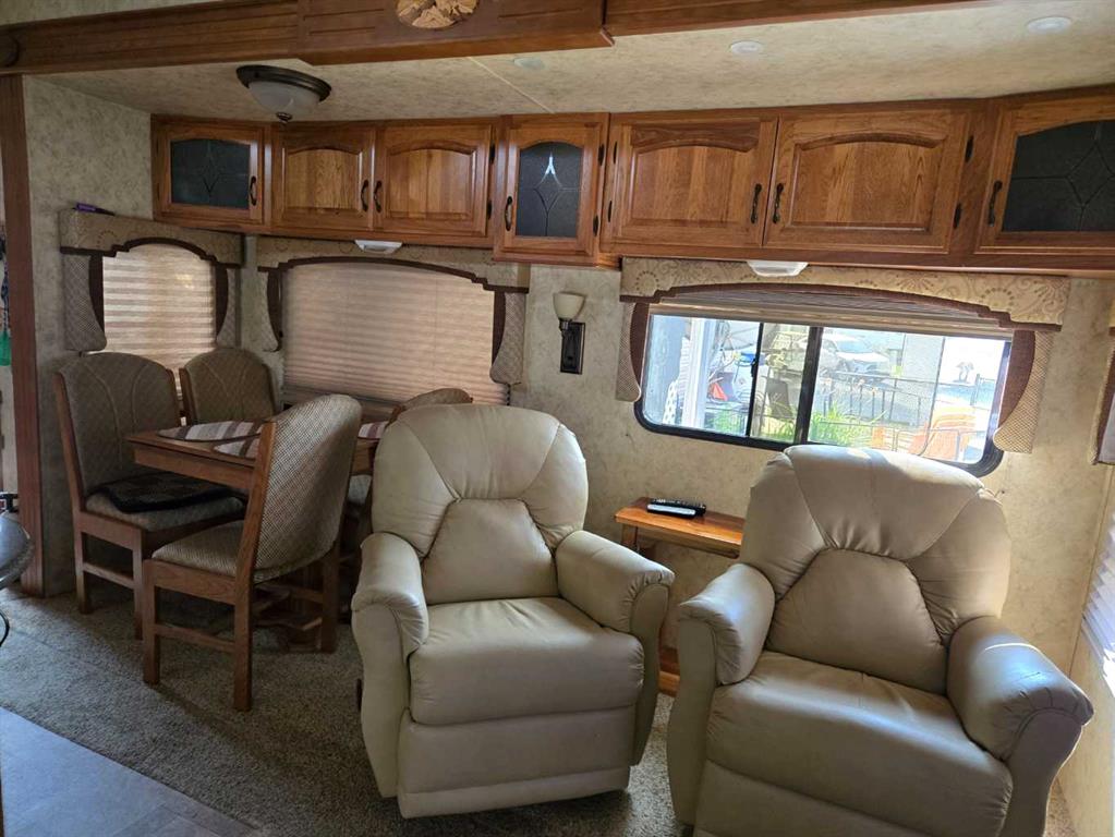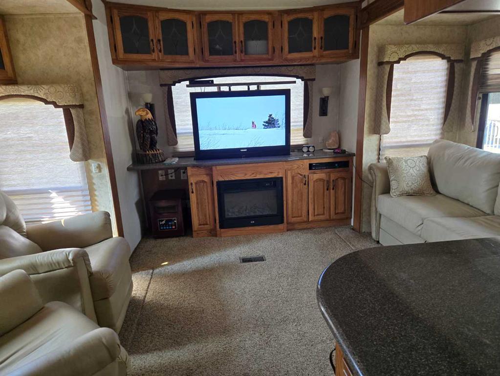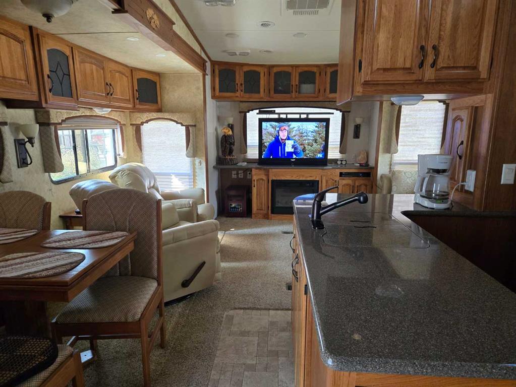 Excellent location in Phase 1 - halfway between the Main Beach and Clubhouse. This 36 foot, 2010 Coachman 5th wheel is ready for you. Comes fully furnished including leather furniture package, 3 TV's, hide-a-bed couch, plus the kitchen has a nice center Island and table with 4 chairs. The master bedroom has a queen bed, large closet and lots of cupboard space. Oversized lot with plenty of parking, deck, unattached awning and shed.